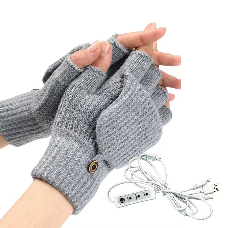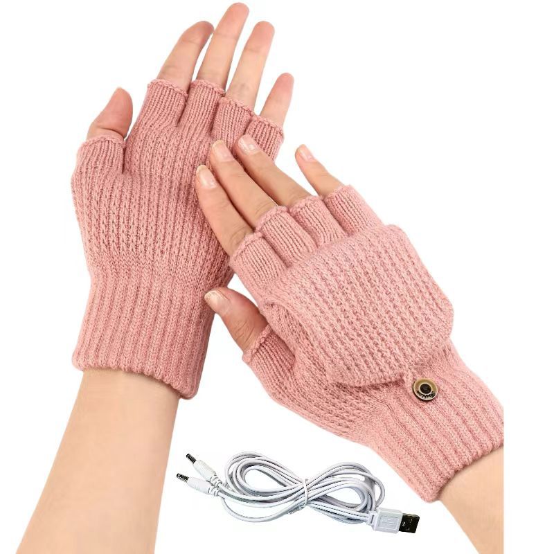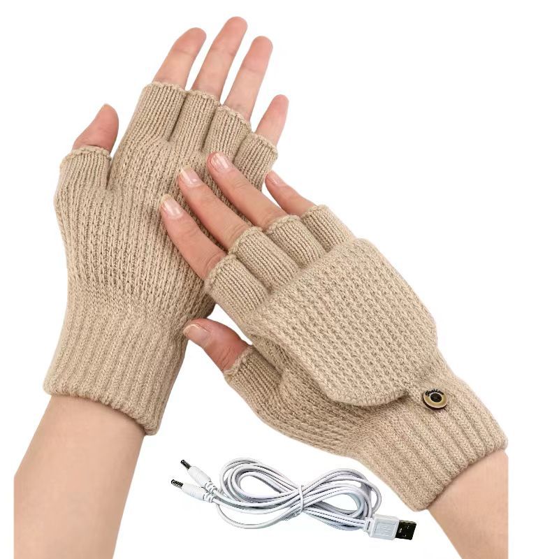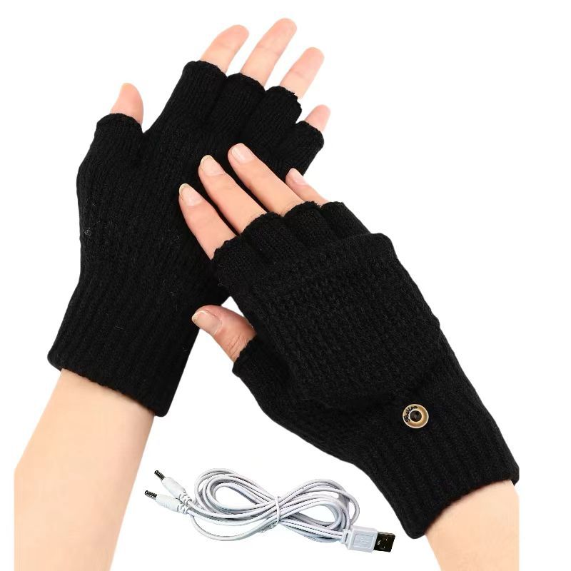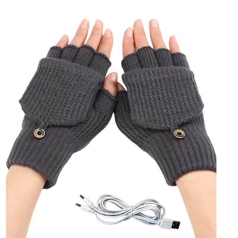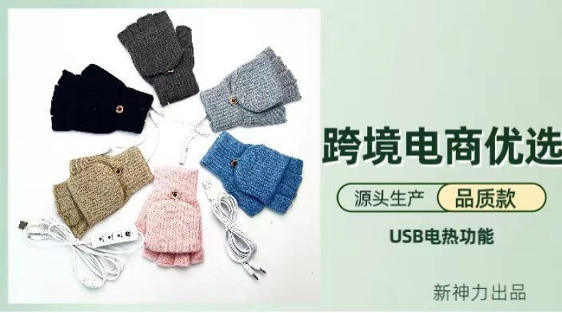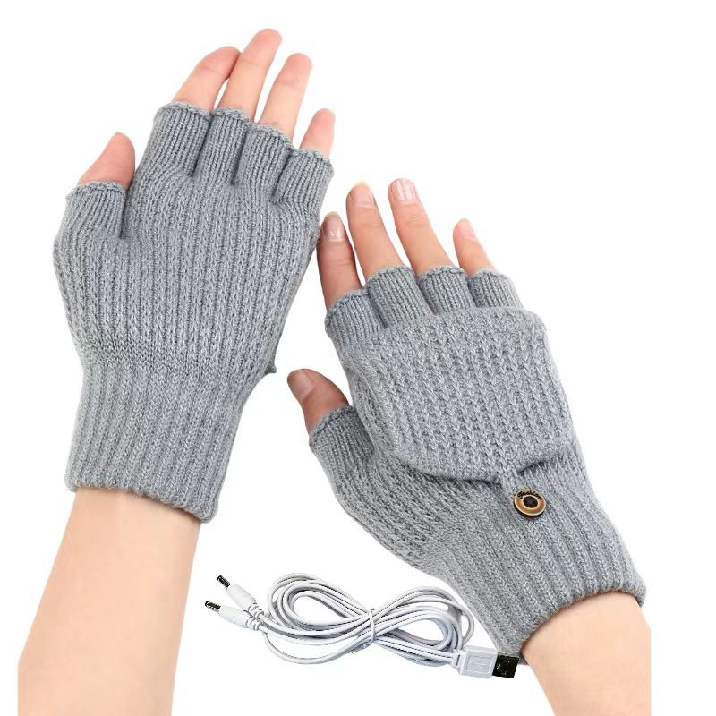USB 전기 스트라이프 플립 울 따뜻한 장갑 국경 새 반 손가락 남성과 여성의 가을 및 겨울 쓰기 오픈 손가락 팔 커버