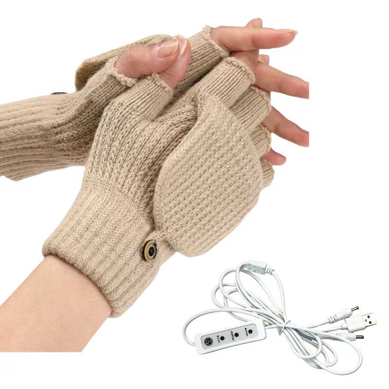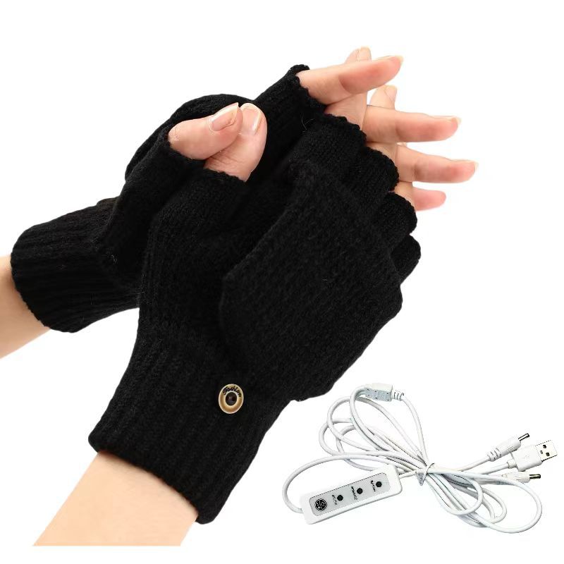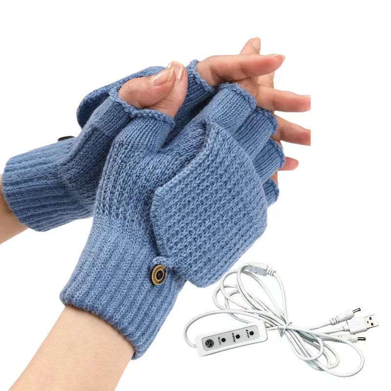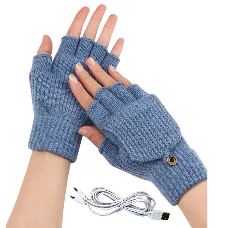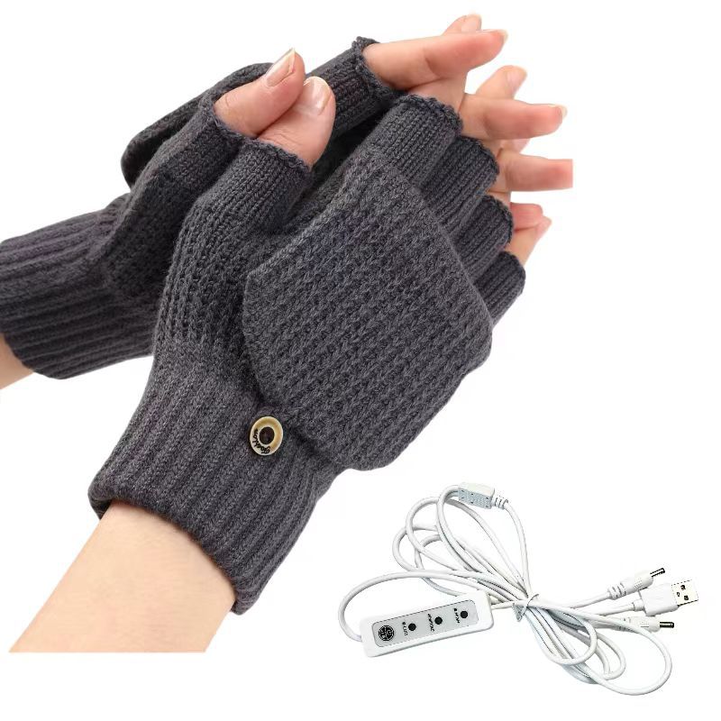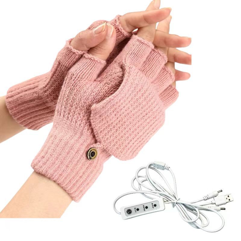 USB 전기 스트라이프 플립 울 따뜻한 장갑 국경 새 반 손가락 남성과 여성의 가을 및 겨울 쓰기 오픈 손가락 팔 커버