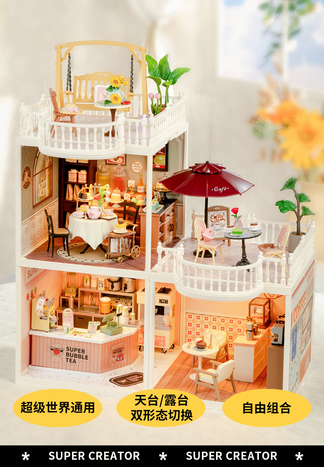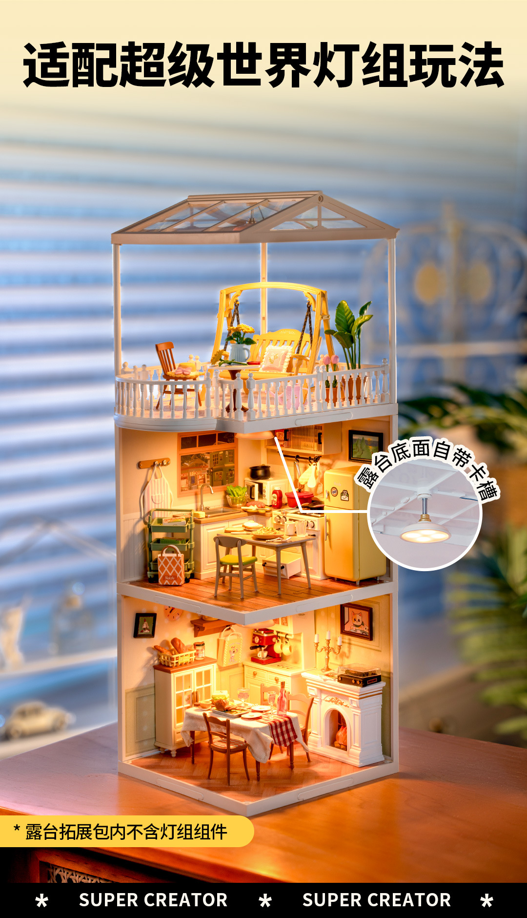 Rolife Ruolai 슈퍼 월드 테라스 확장 패키지 교육 빌딩 블록 조립 장난감 모델 어린이 선물 여성스토어 가기
