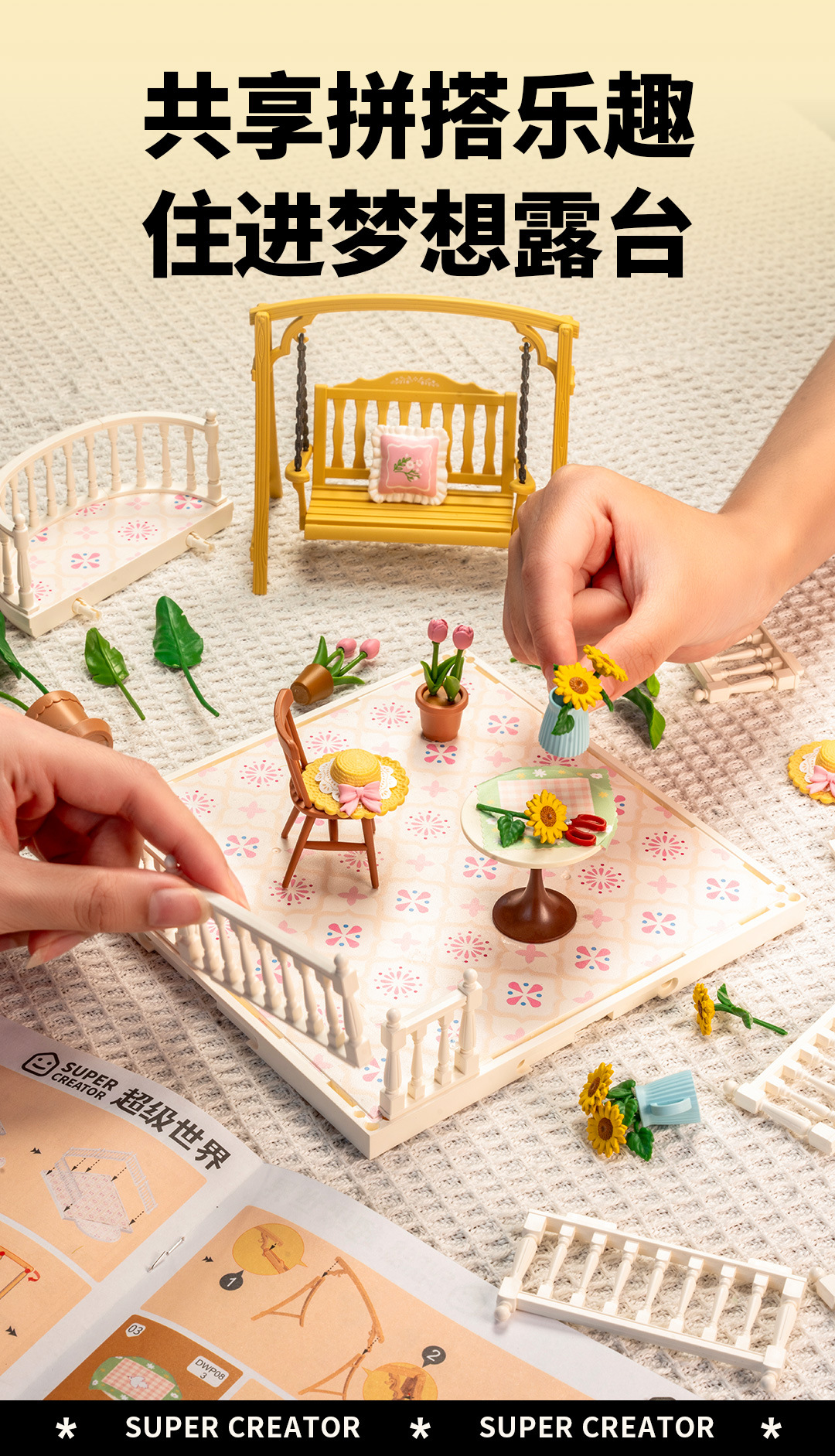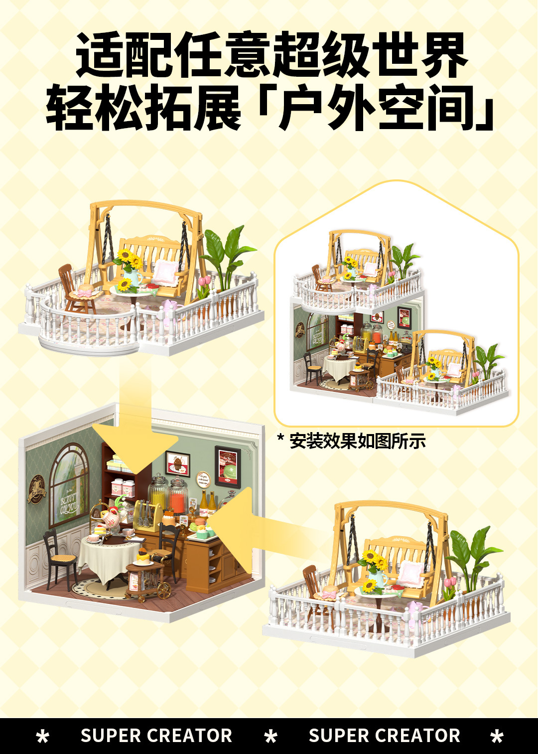 Rolife Ruolai 슈퍼 월드 테라스 확장 패키지 교육 빌딩 블록 조립 장난감 모델 어린이 선물 여성