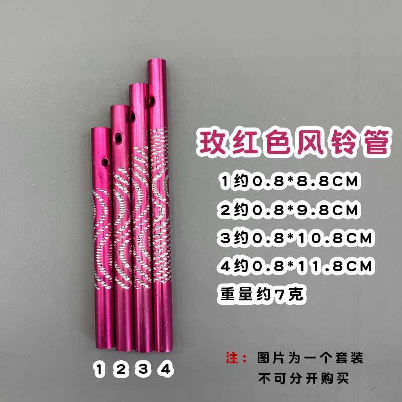 DIY风铃套餐空心氧化铝管4个尺寸见下图,每批次生产颜色可能怕有误差所以没有分开单根销售,需要单独颜色定制可以联系旺旺。