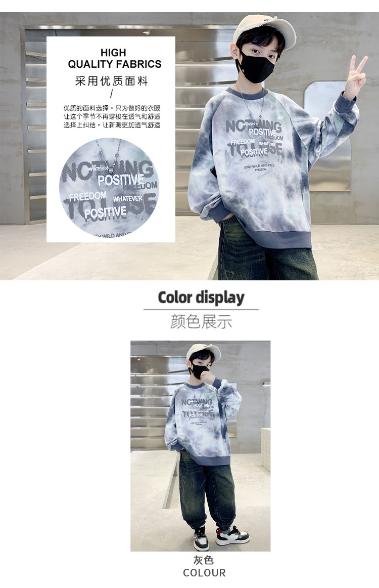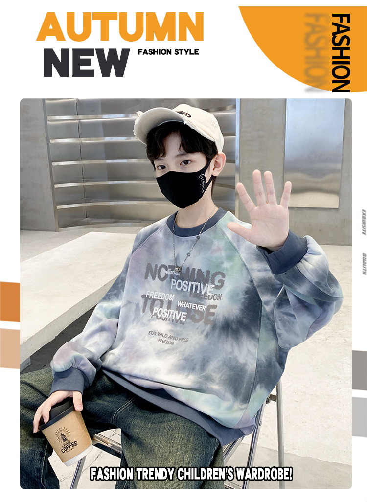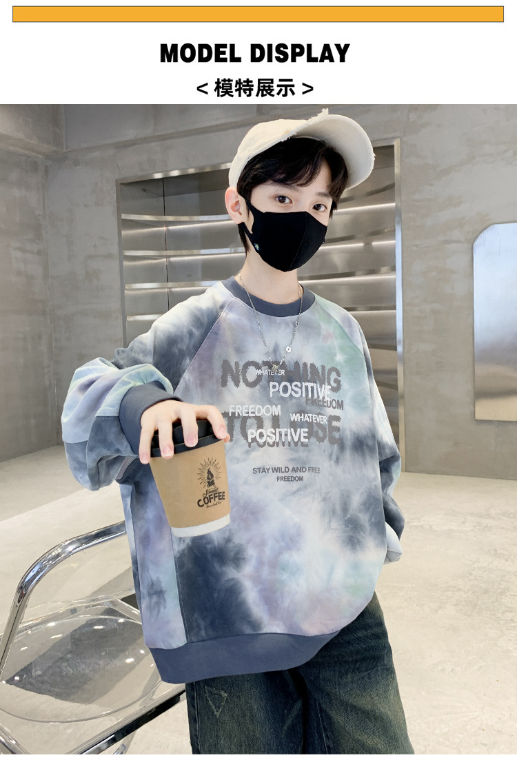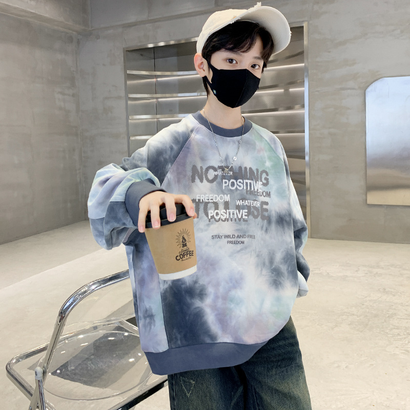 소년 스웨터 가을 2024 새로운 어린이 스포츠 레저베이스 셔츠 큰 어린이 편지 인쇄 긴 소매 티셔츠 7