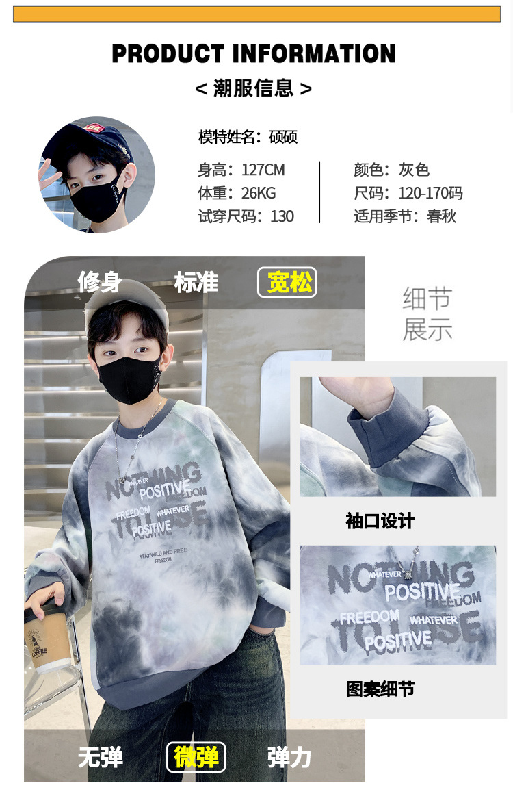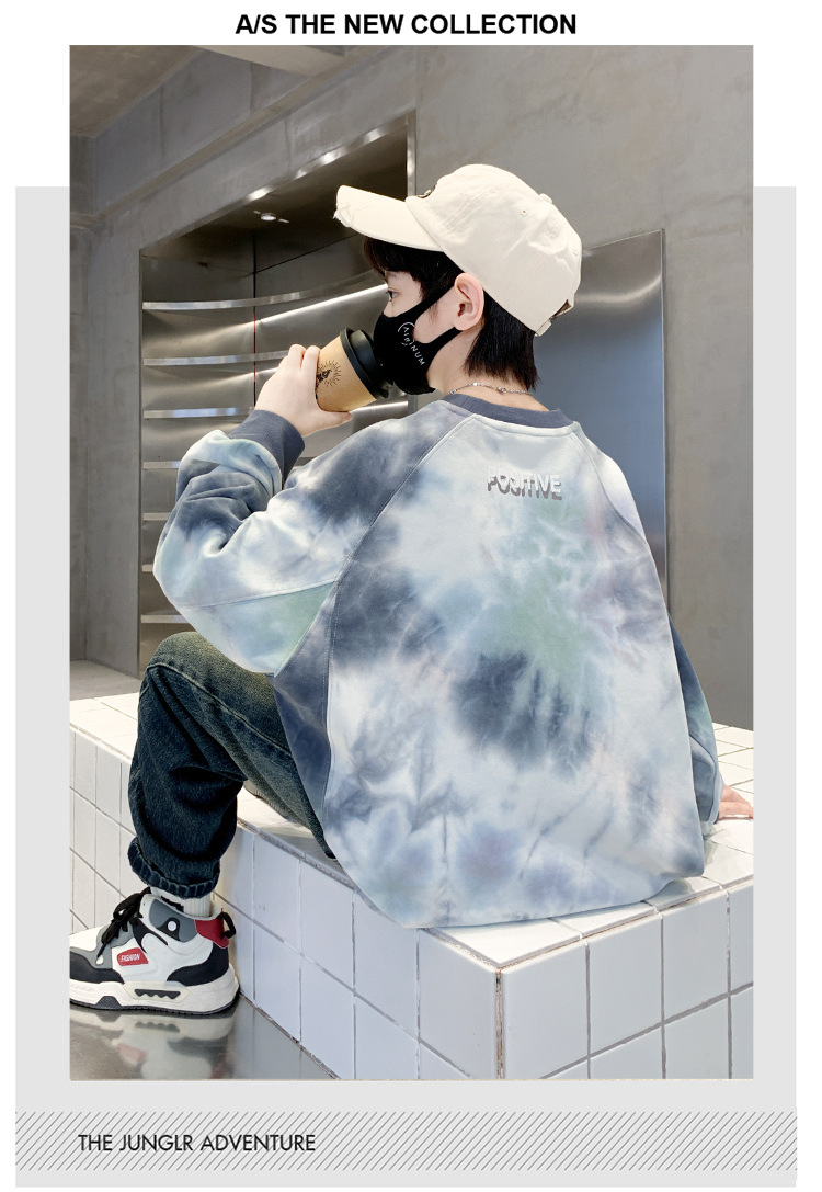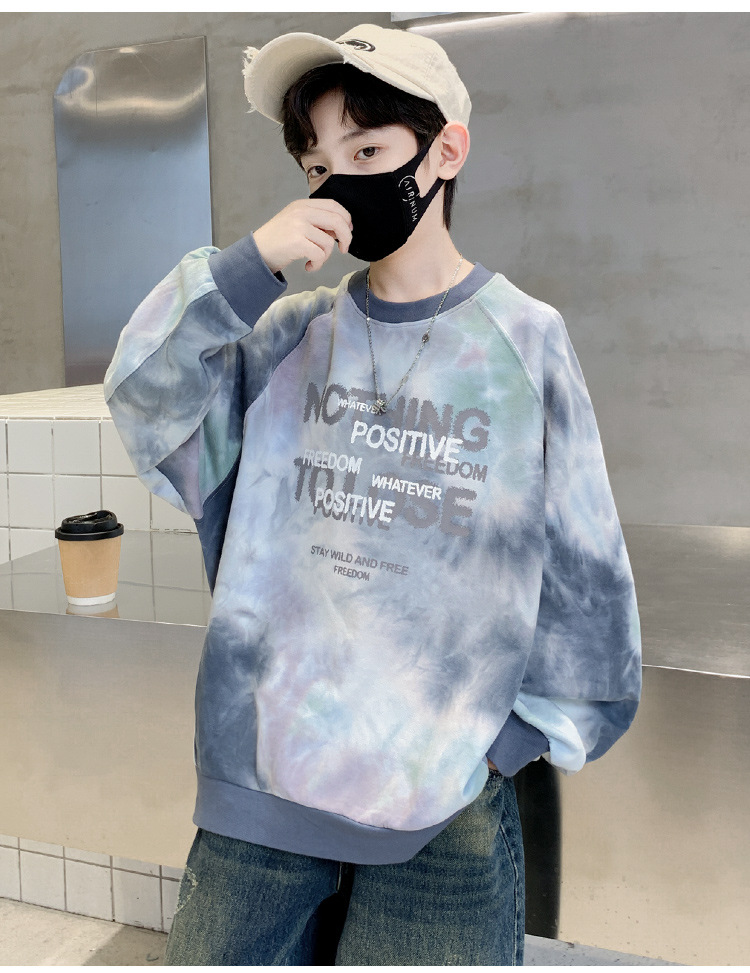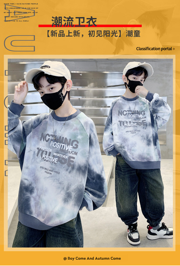 소년 스웨터 가을 2024 새로운 어린이 스포츠 레저베이스 셔츠 큰 어린이 편지 인쇄 긴 소매 티셔츠 7