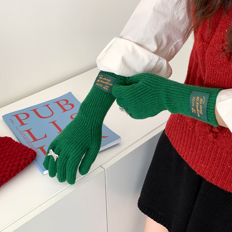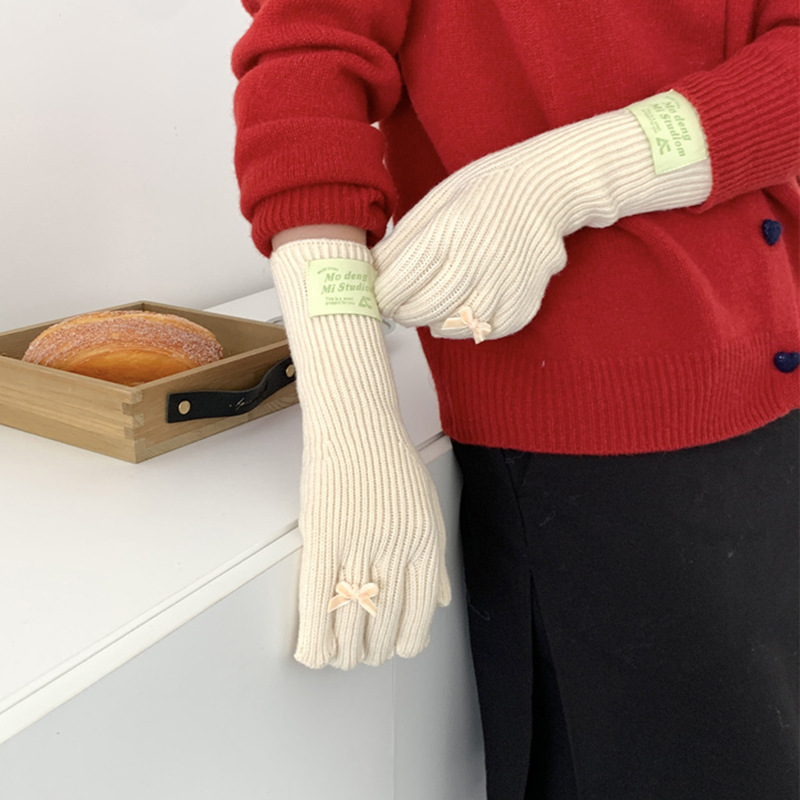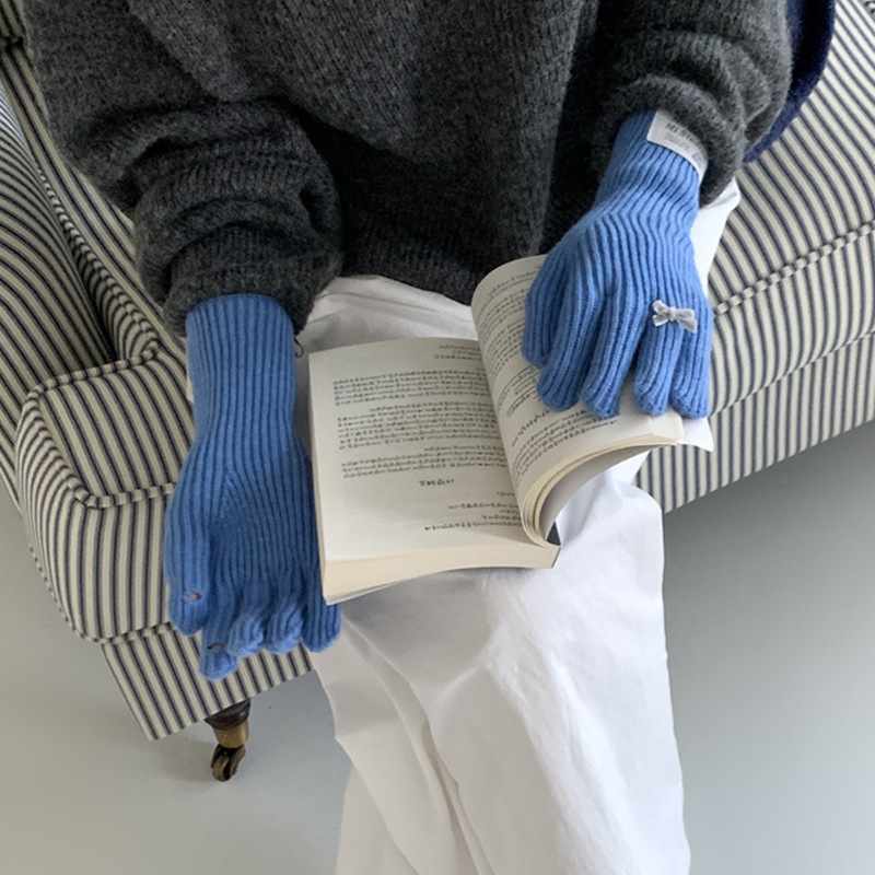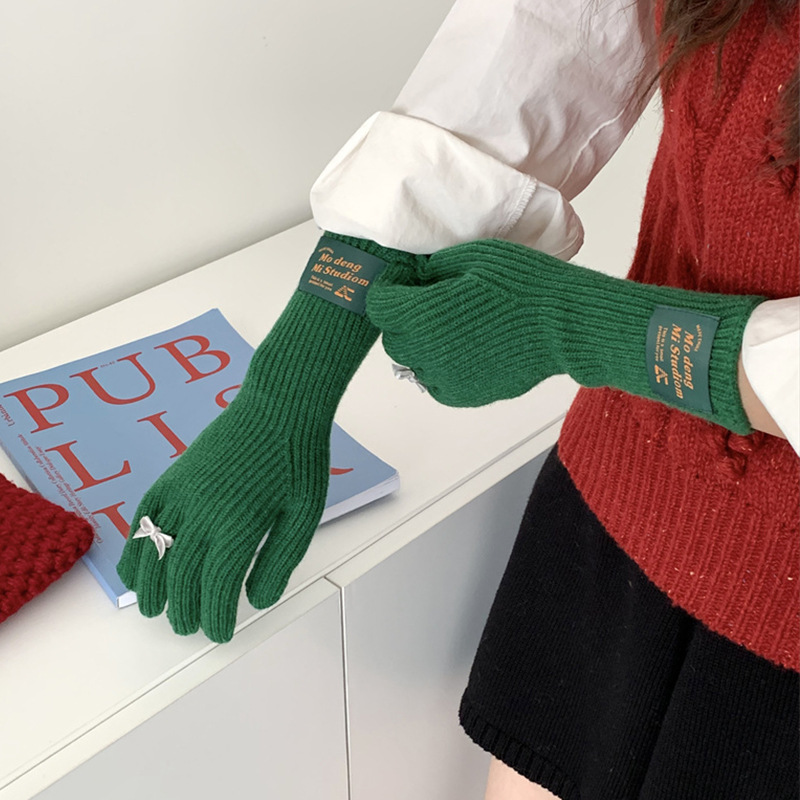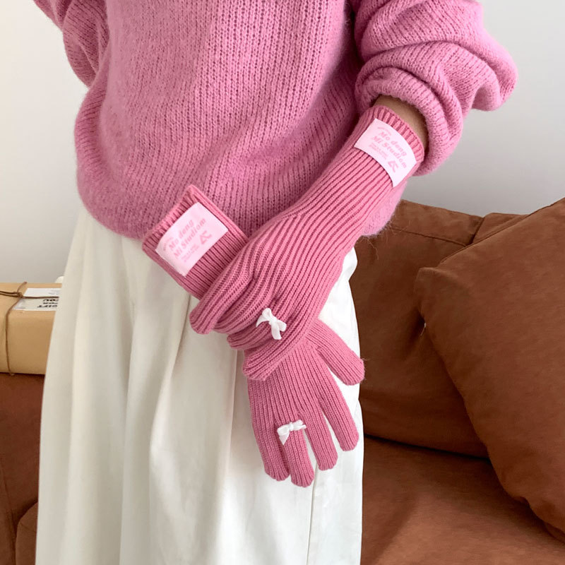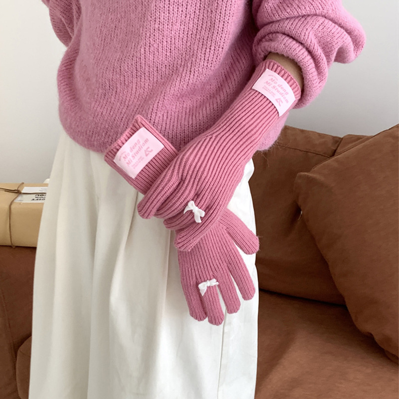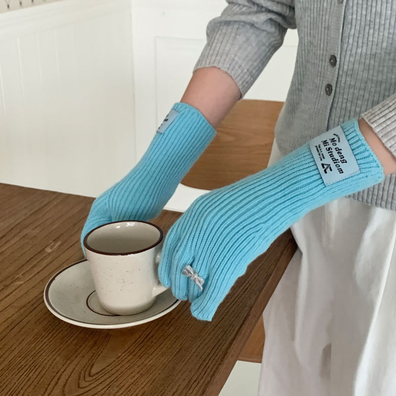 가을과 겨울 새로운 토끼 봉제 따뜻한 니트 장갑 양모 스카프 여성 가을과 겨울 사탕 색 단색 방풍 긴 장갑스토어 가기
