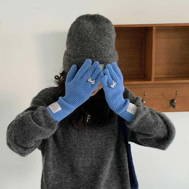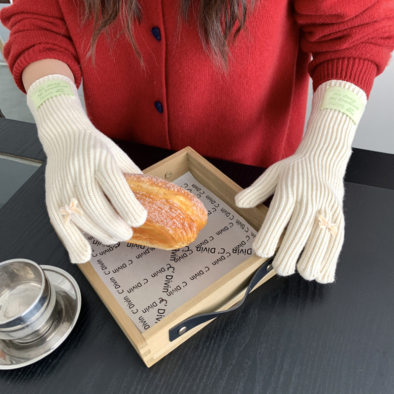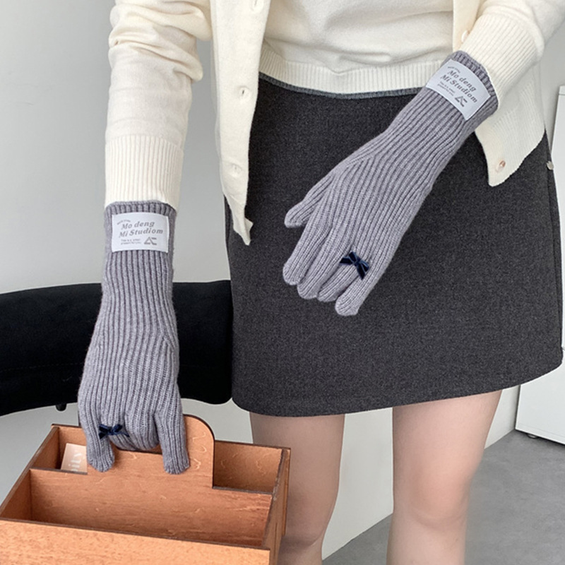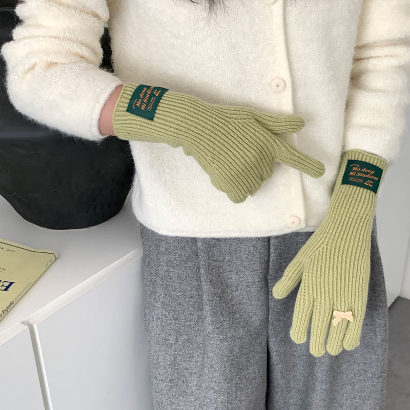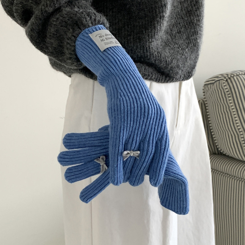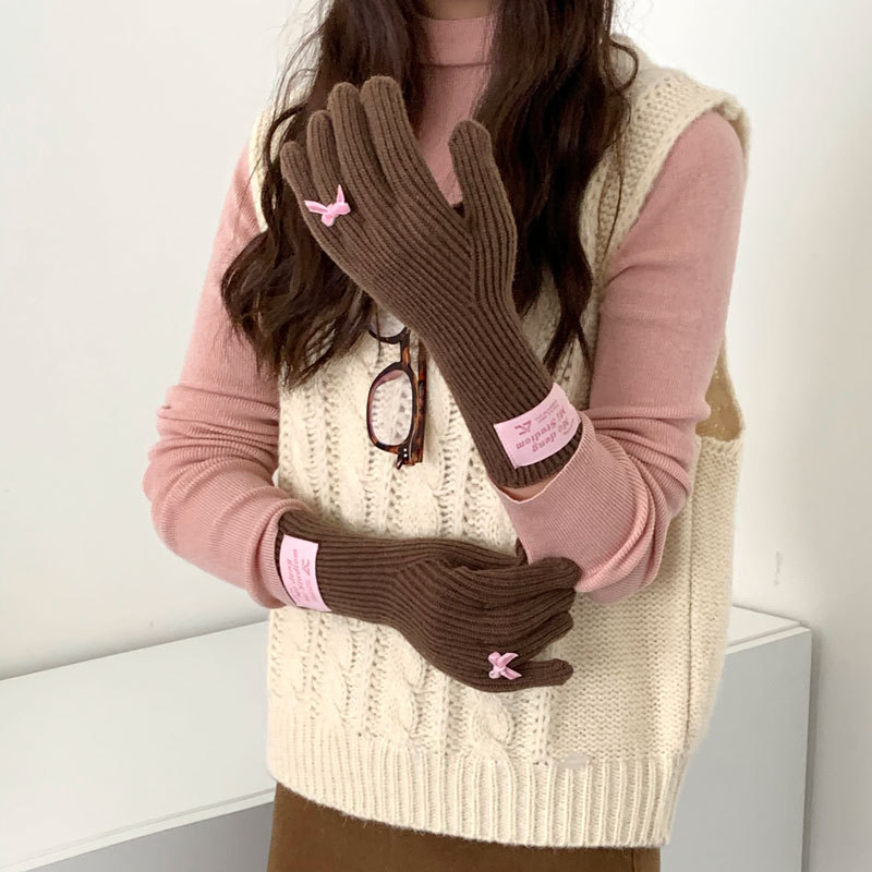 가을과 겨울 새로운 토끼 봉제 따뜻한 니트 장갑 양모 스카프 여성 가을과 겨울 사탕 색 단색 방풍 긴 장갑스토어 가기