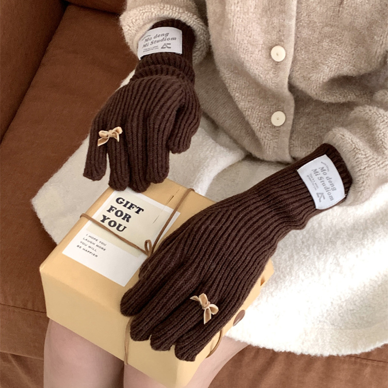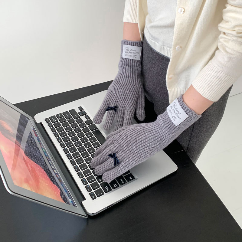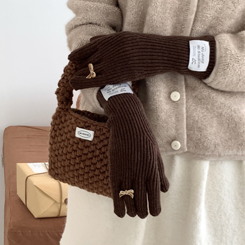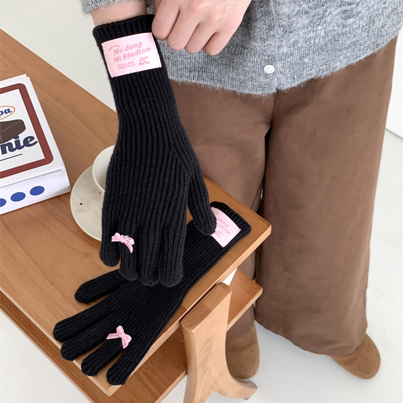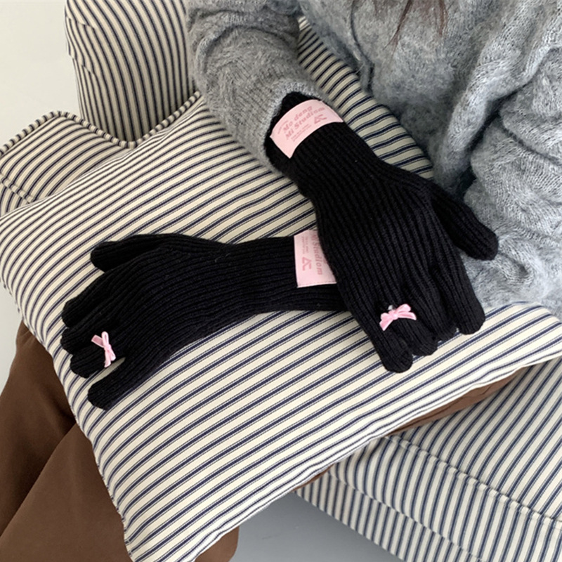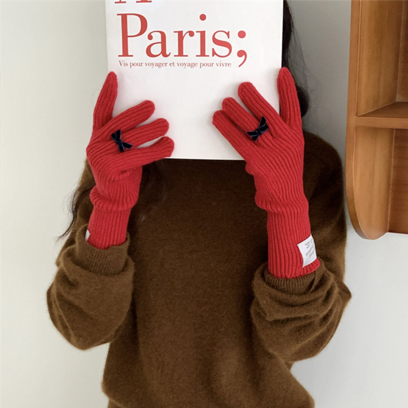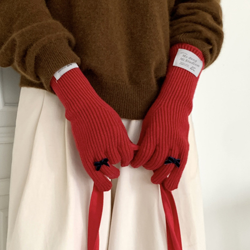 가을과 겨울 새로운 토끼 봉제 따뜻한 니트 장갑 양모 스카프 여성 가을과 겨울 사탕 색 단색 방풍 긴 장갑스토어 가기