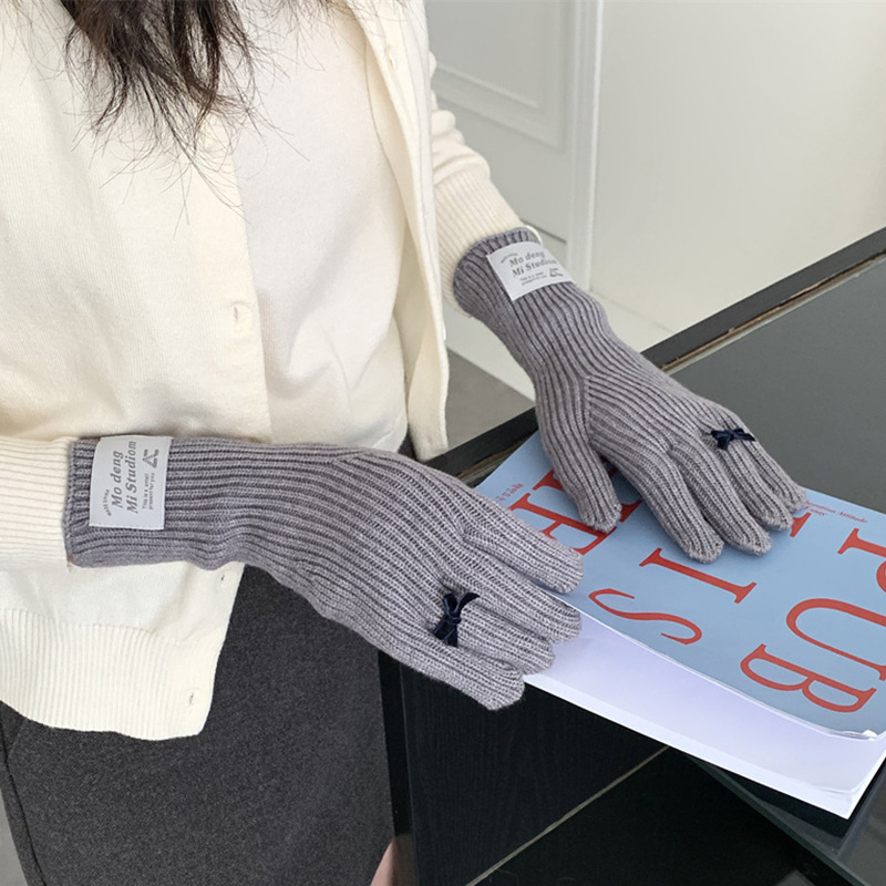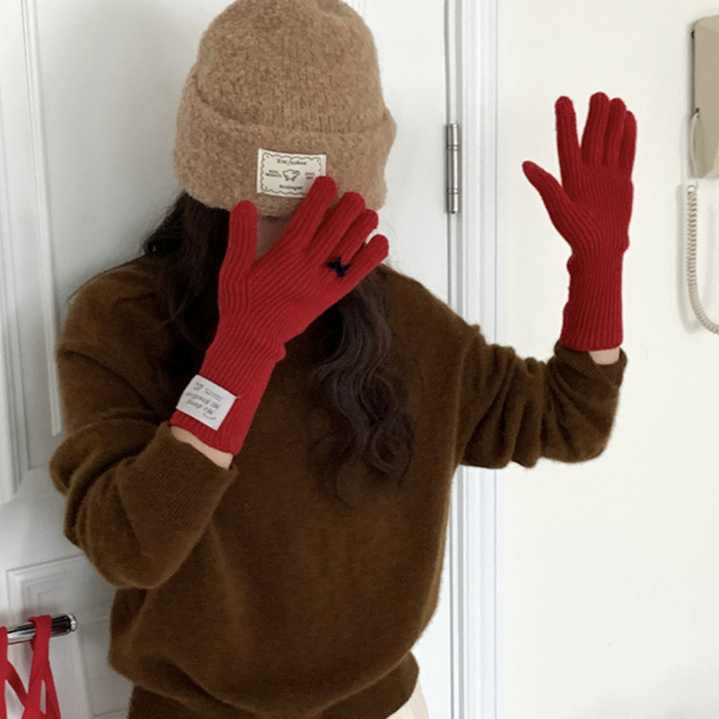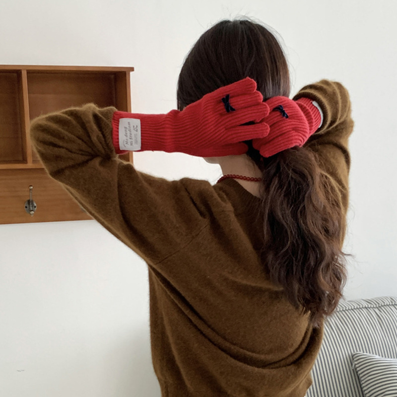 가을과 겨울 새로운 토끼 봉제 따뜻한 니트 장갑 양모 스카프 여성 가을과 겨울 사탕 색 단색 방풍 긴 장갑