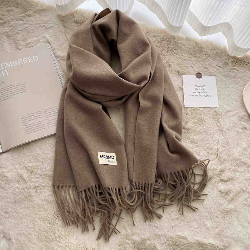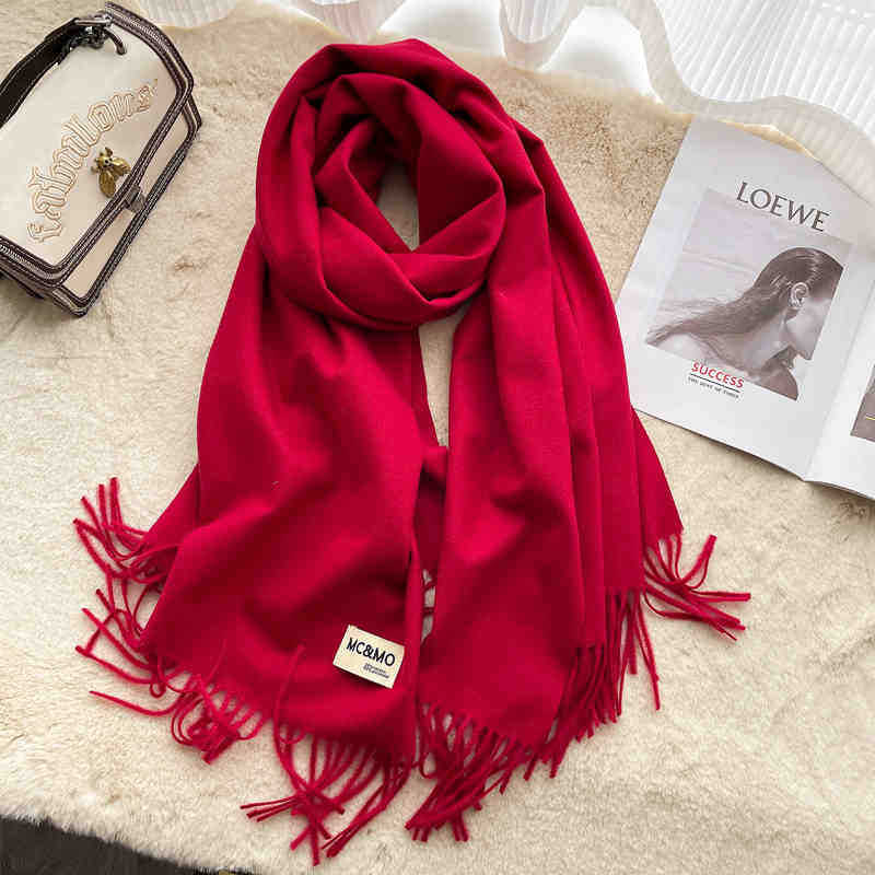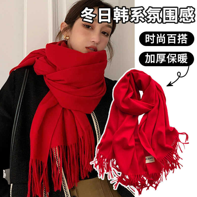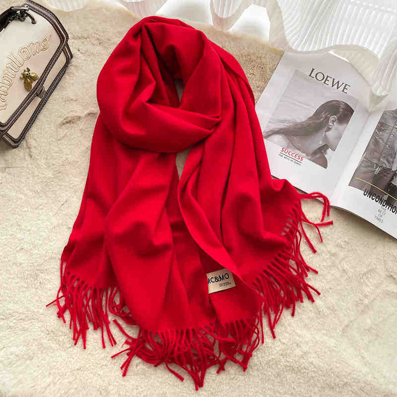 솔리드 컬러 스카프 여자 겨울 2024 새로운 빨간 두꺼운 캐시미어 목도리 외부 따뜻한 올 매치 듀얼 사용 스카프스토어 가기