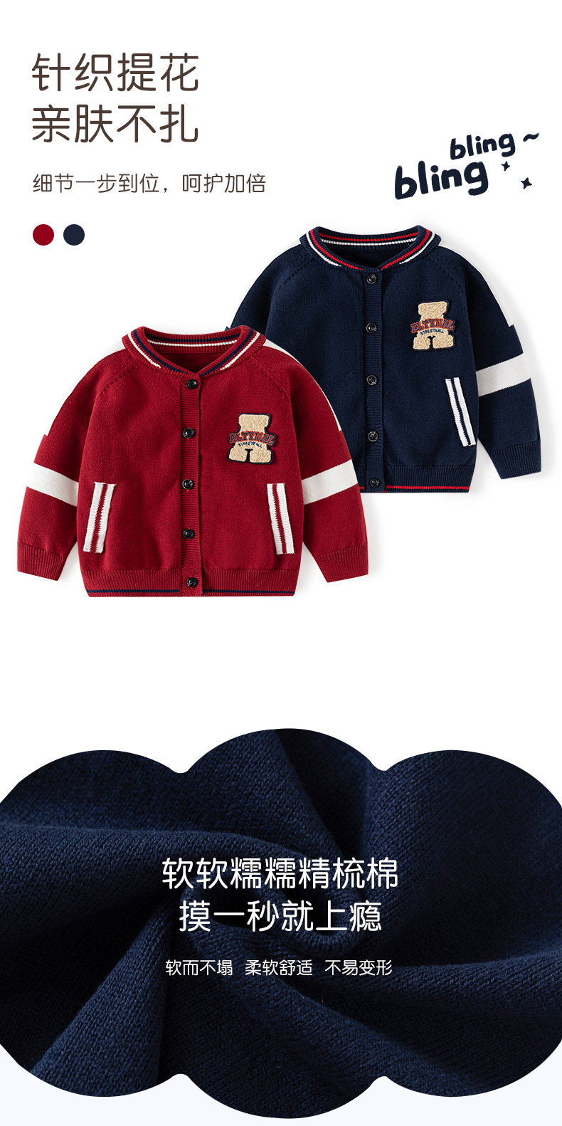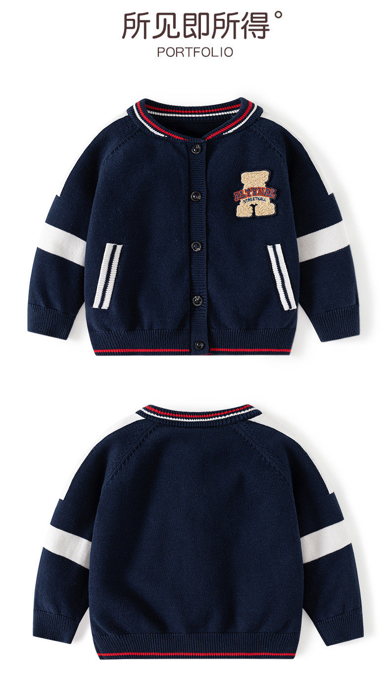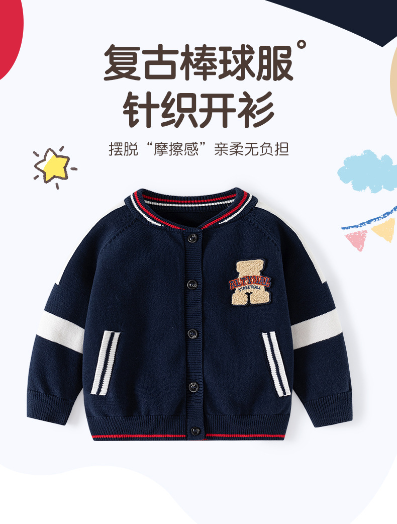 한국 스타일 잘 생긴 니트 어린이 야구 세트 가을과 겨울 아기 스웨터 카디건 트렌디 쿨 클래스 A 베이비 카디건 재킷