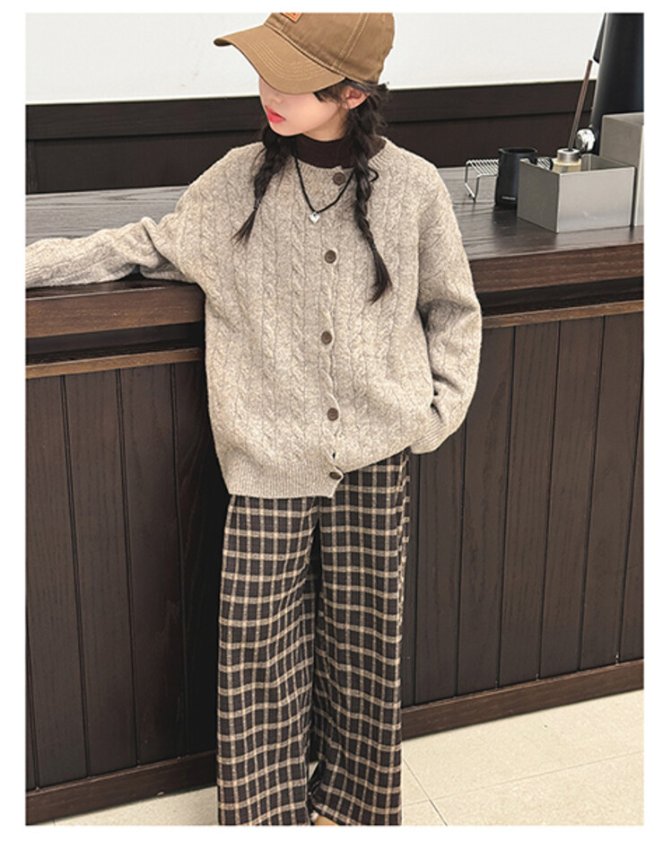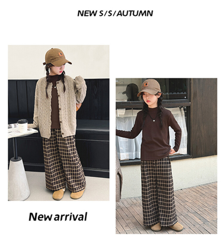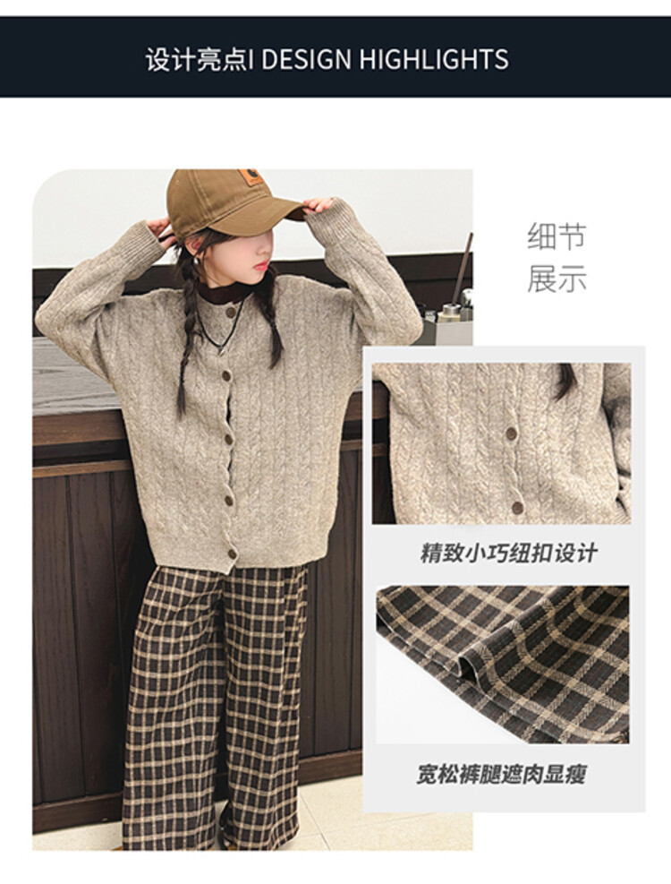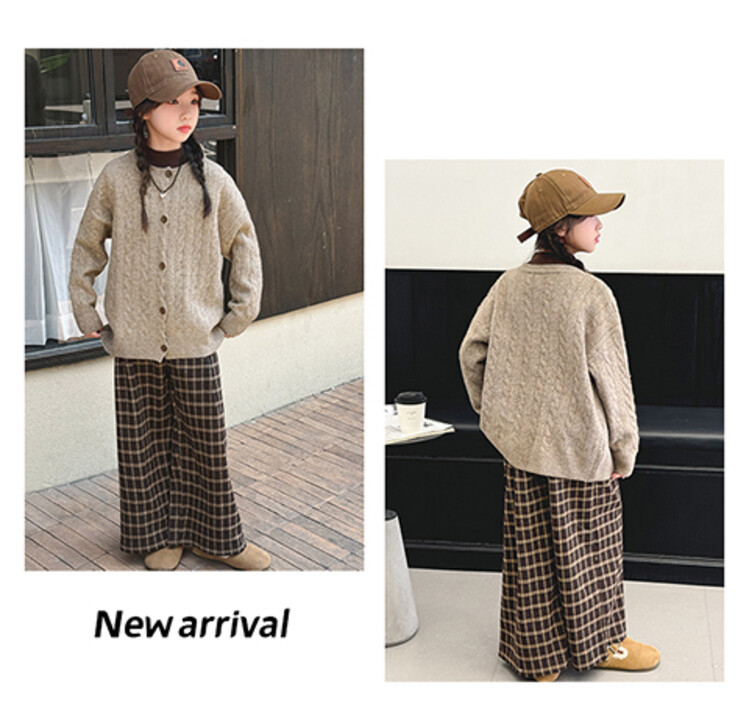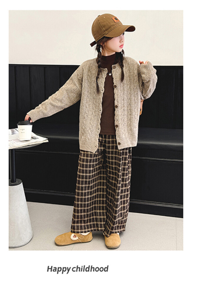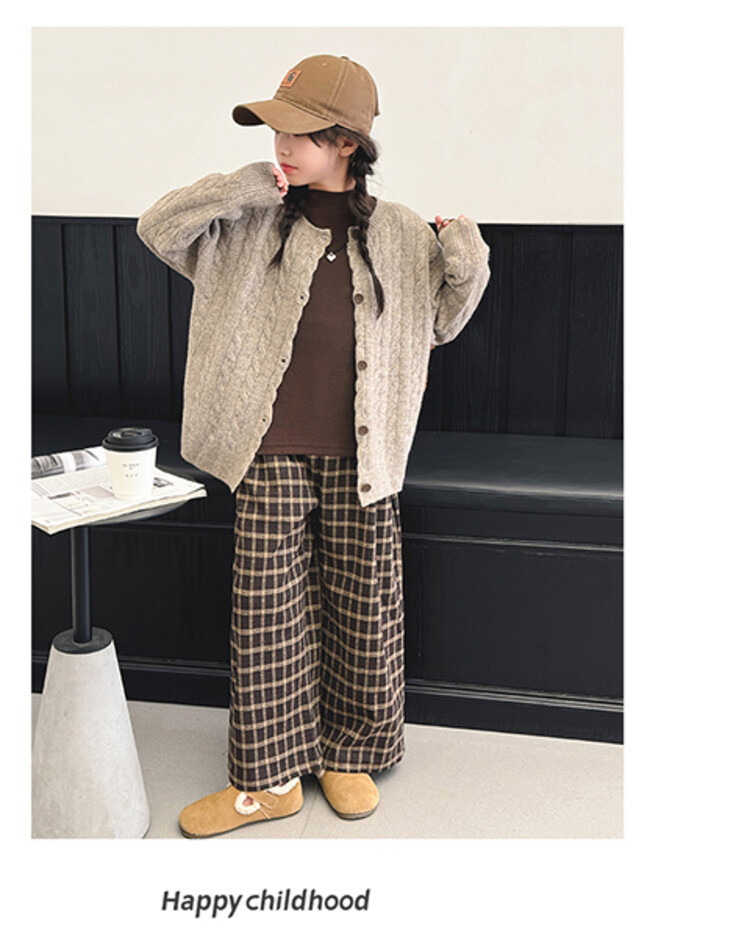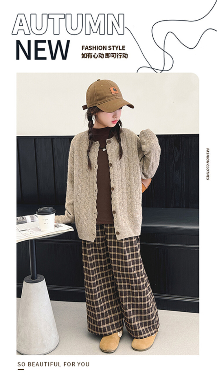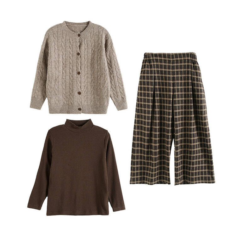 • 3종세트 [니트가디건+바텀셔츠+체크팬츠]