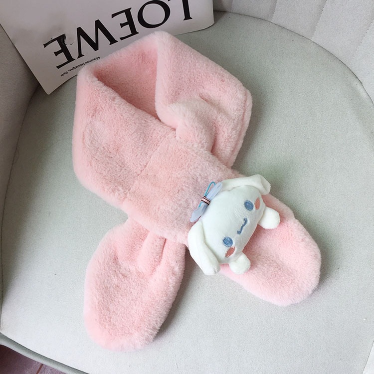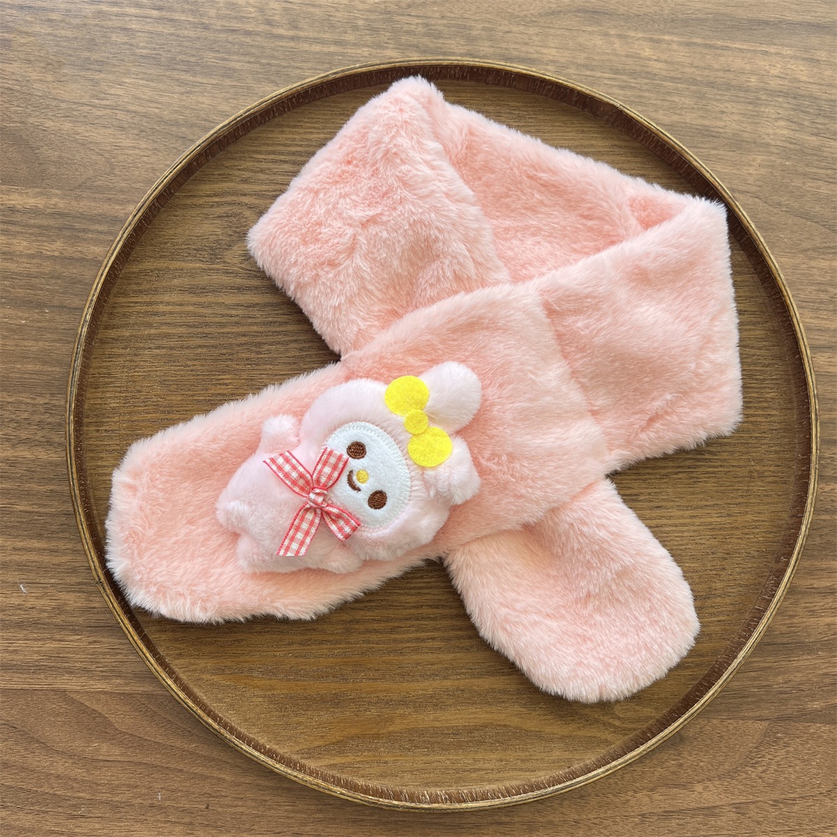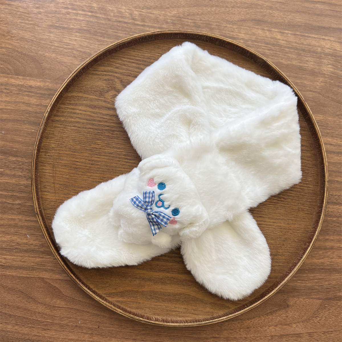 2024 모조 토끼 봉제 스카프 소녀 한국 겨울 소년 따뜻한 부모-자식 칼라 크로스 어린이 스카프 도매