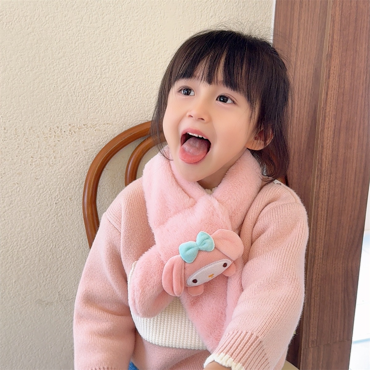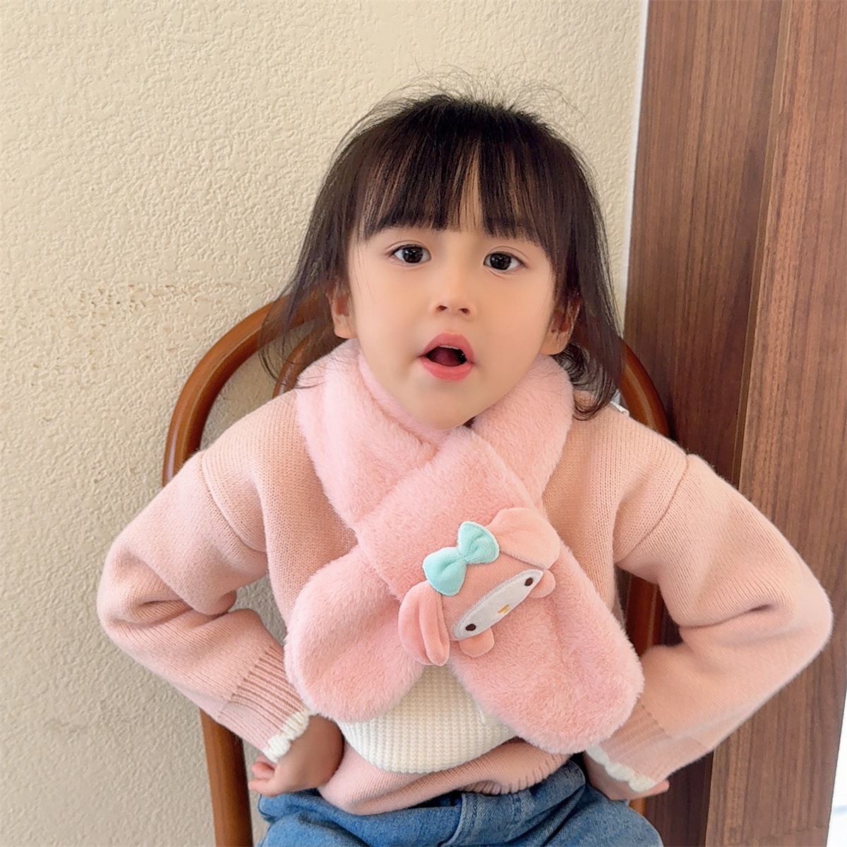 2024 모조 토끼 봉제 스카프 소녀 한국 겨울 소년 따뜻한 부모-자식 칼라 크로스 어린이 스카프 도매스토어 가기
