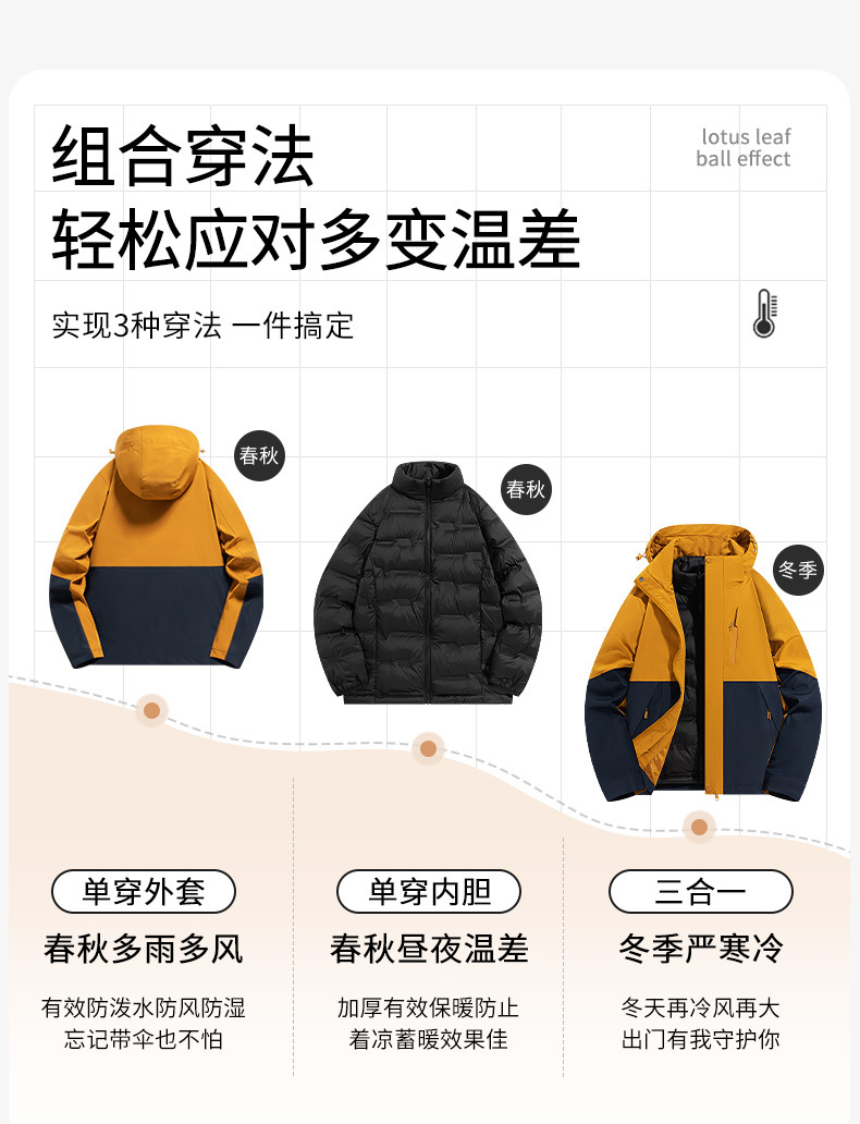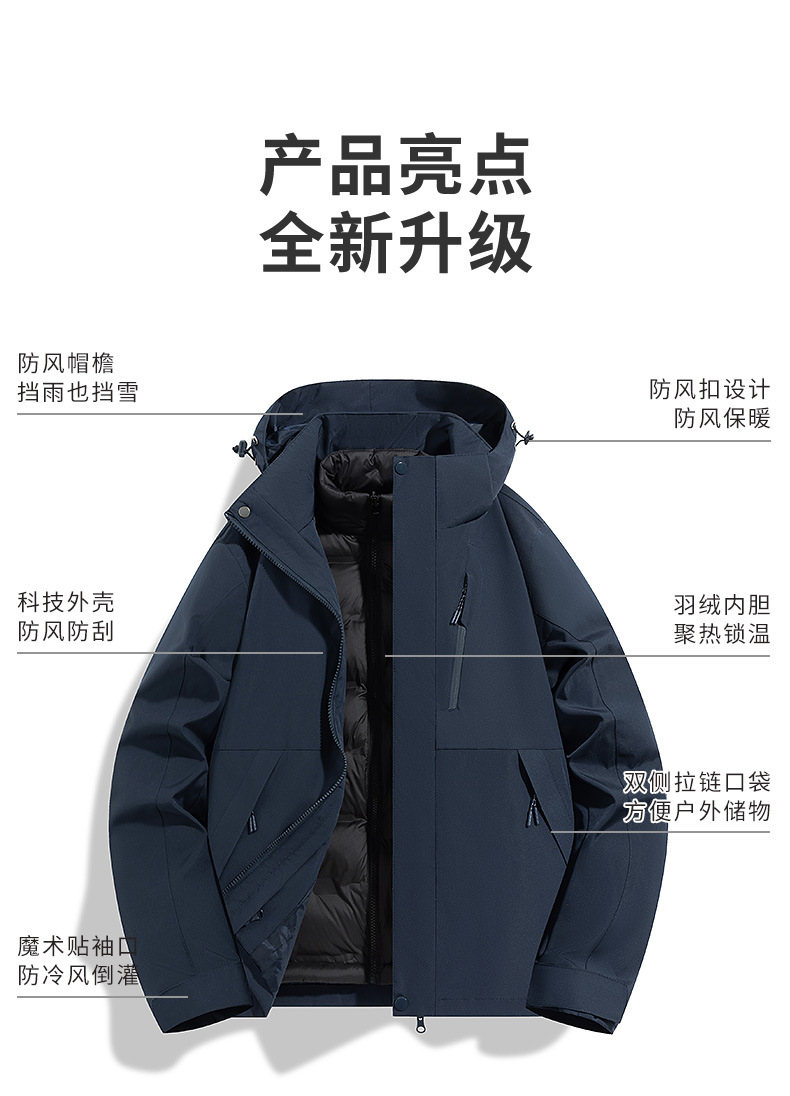 다운 재킷 아웃도어 3-in-1 남녀 공용 탈부착 가능 겨울 스키복 재킷 맞춤형 로고 인쇄스토어 가기