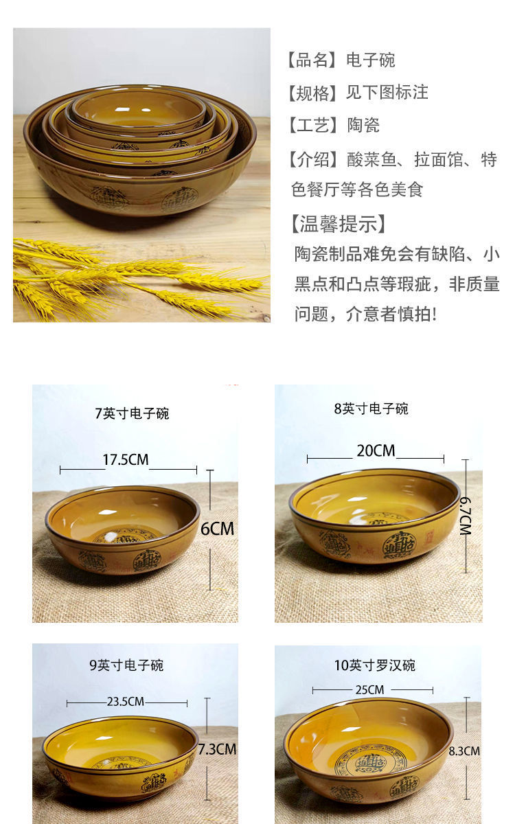 세라믹 수프 분지 상업적인 큰 그릇 절인 생선 매운 냄비 마오카이 스튜 식기 9 인치 10 인치 두께 사양스토어 가기
