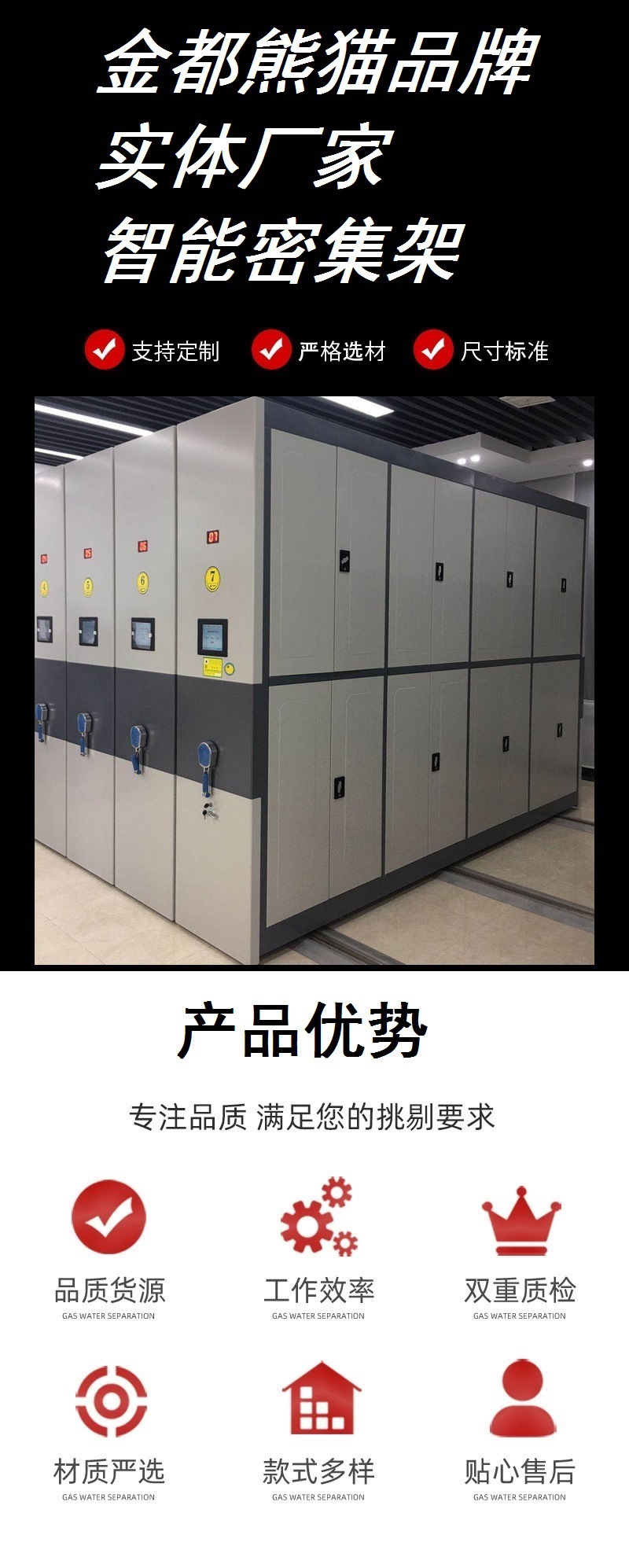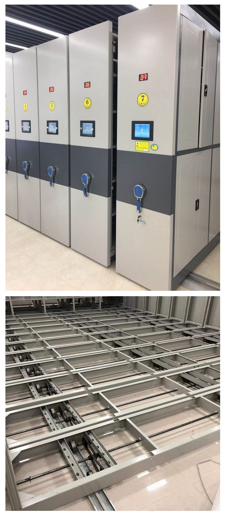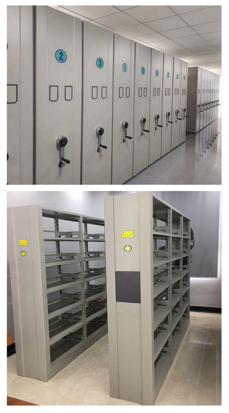 移动密集架主要用于档案资料、证券凭证等的存放,具保密封闭、空间利用率高、存取方便的优点。