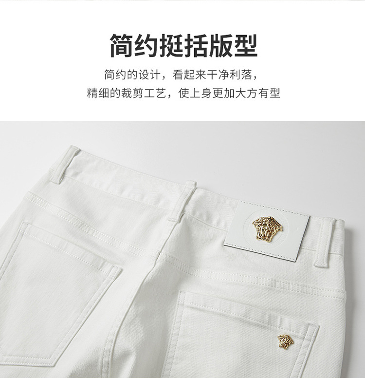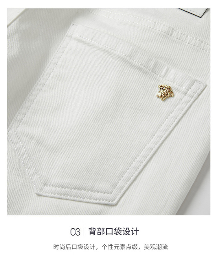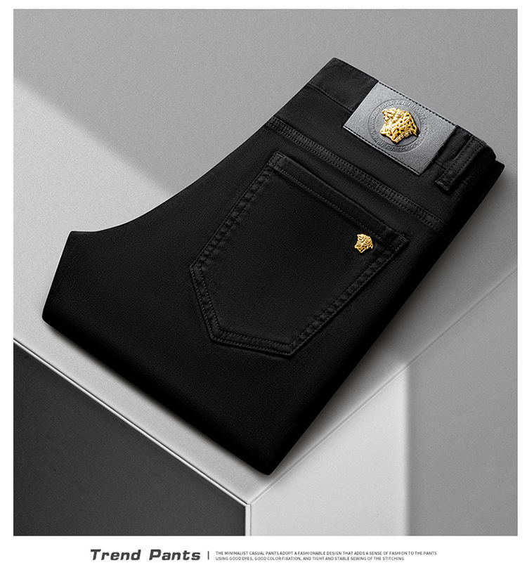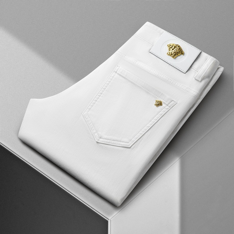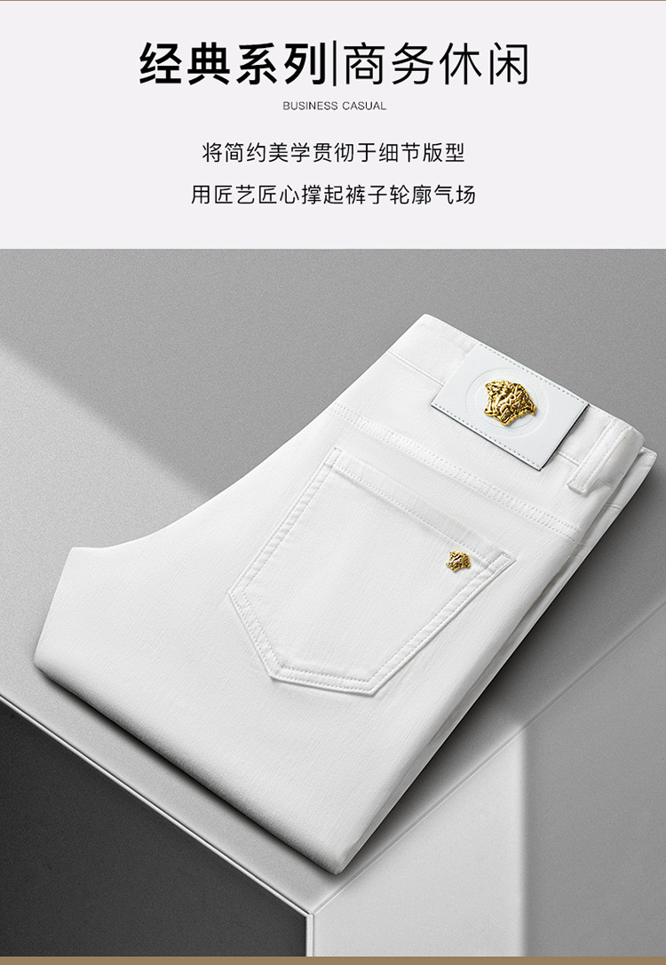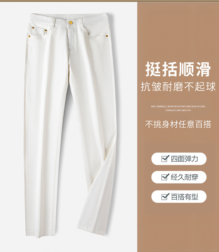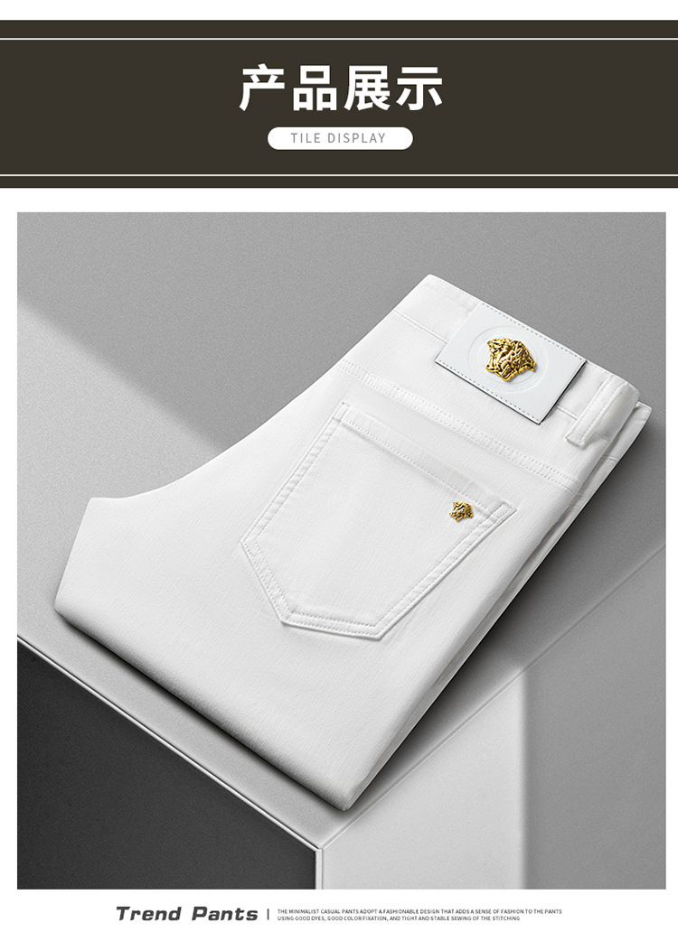 청바지 봄과 가을 순수한 흰색 남성 바지 가벼운 럭셔리 유럽 클래식 작은 검은 바지 탄성 슬림 중간 허리 스트레이트 단순