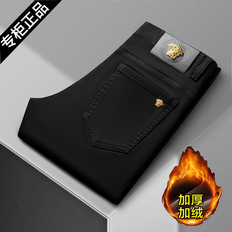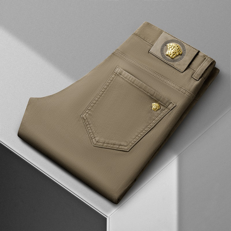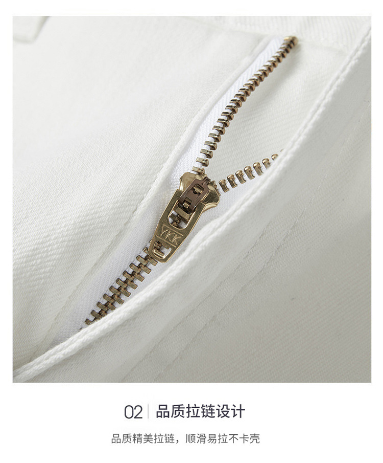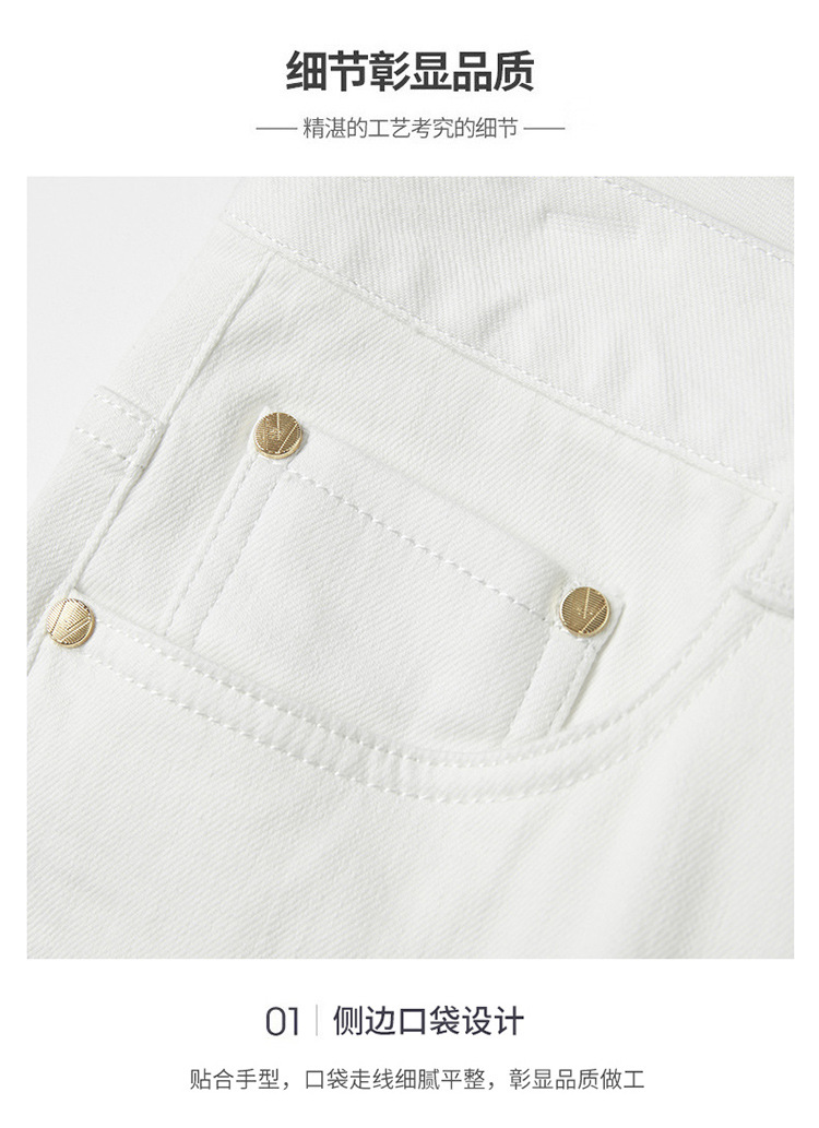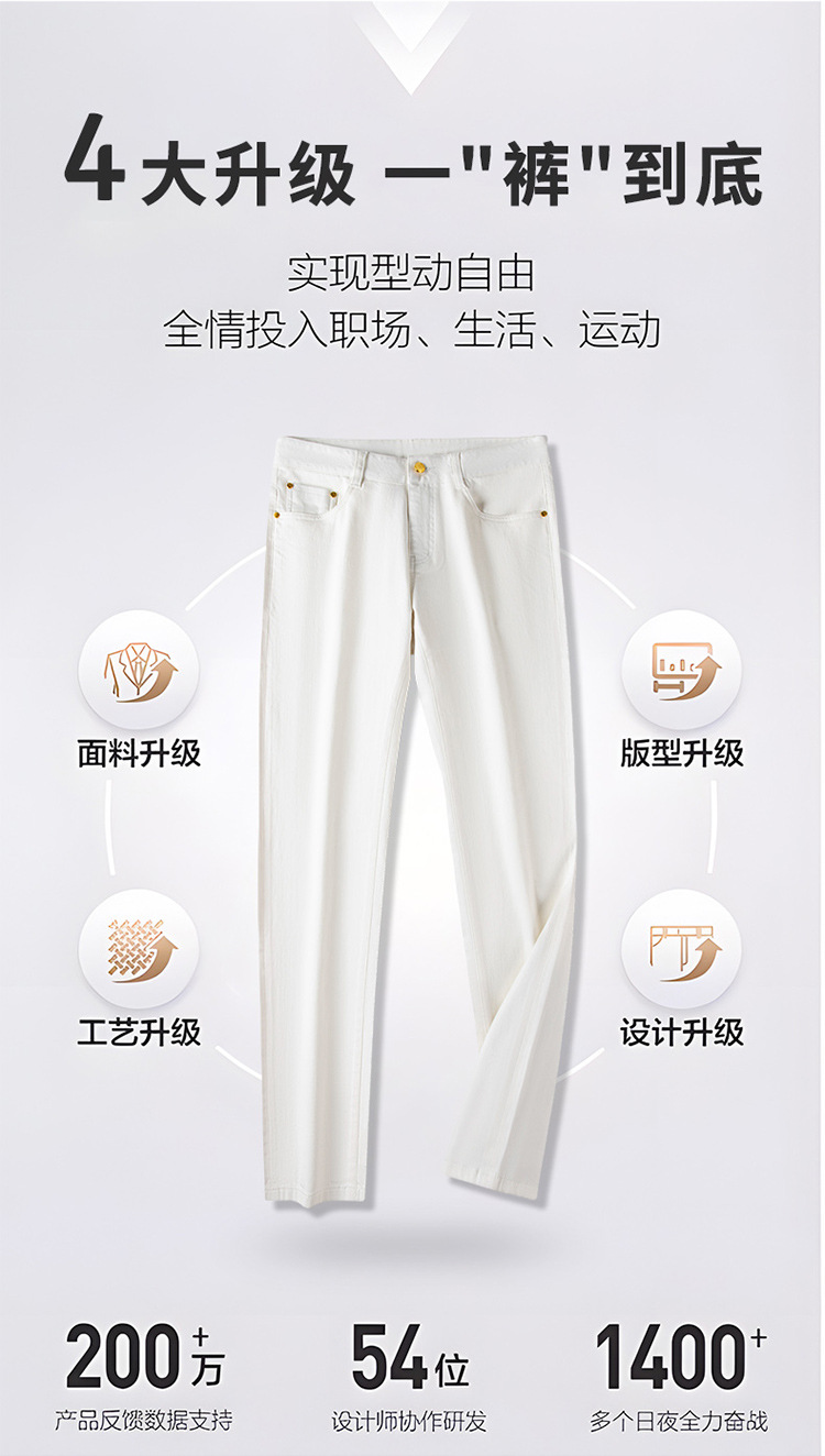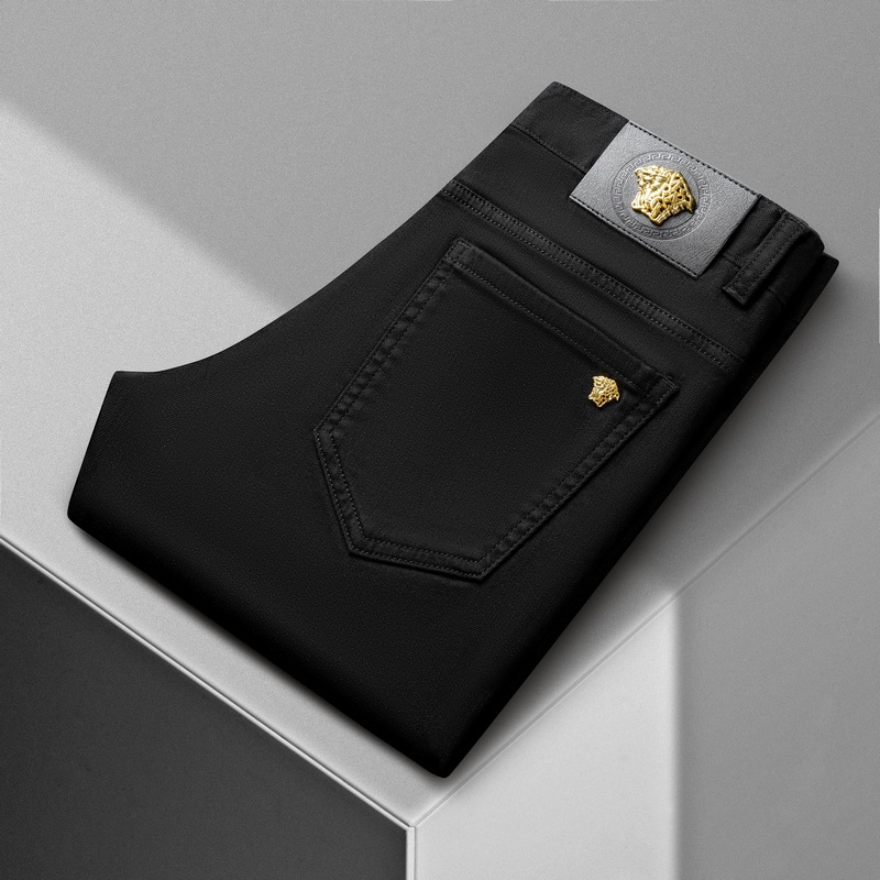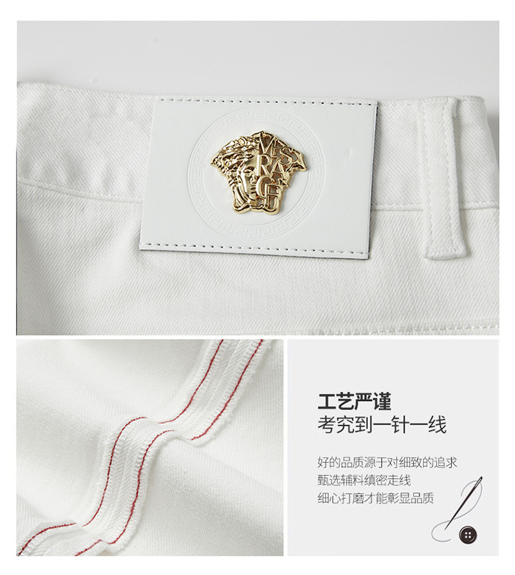 청바지 봄과 가을 순수한 흰색 남성 바지 가벼운 럭셔리 유럽 클래식 작은 검은 바지 탄성 슬림 중간 허리 스트레이트 단순