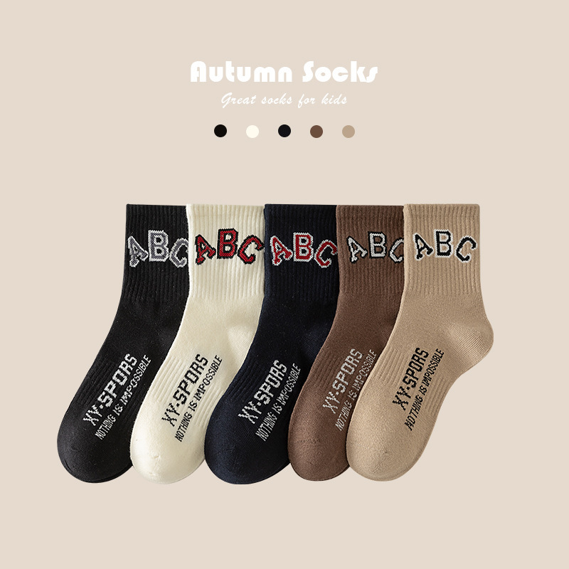 24754 가을과 겨울 새로운 어린이 양말 아기 영어 알파벳 양말 면 양말 스포츠 소년 소녀 유행 양말