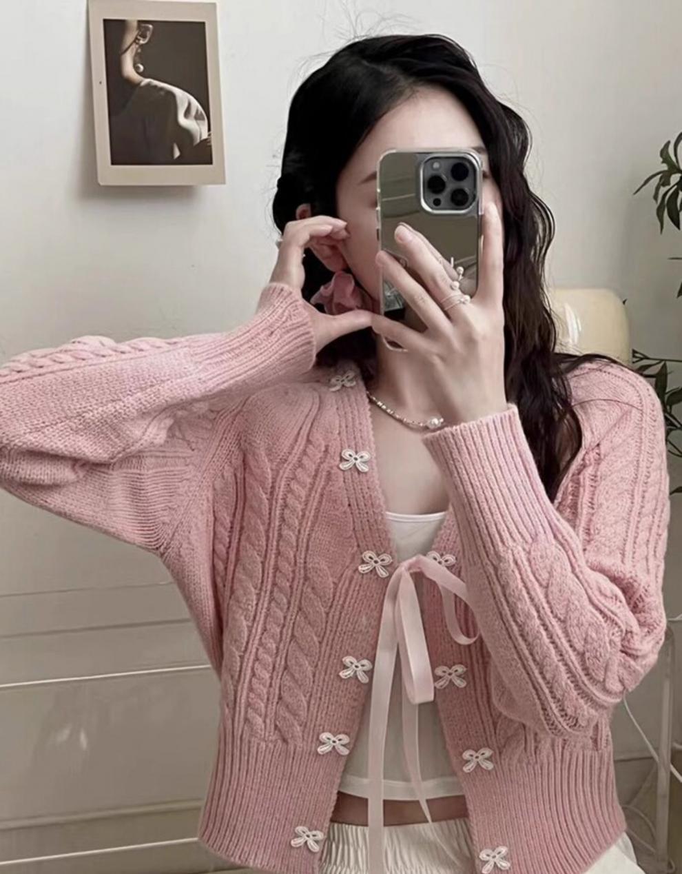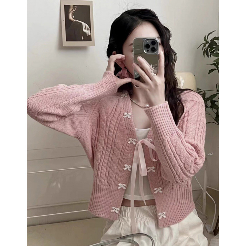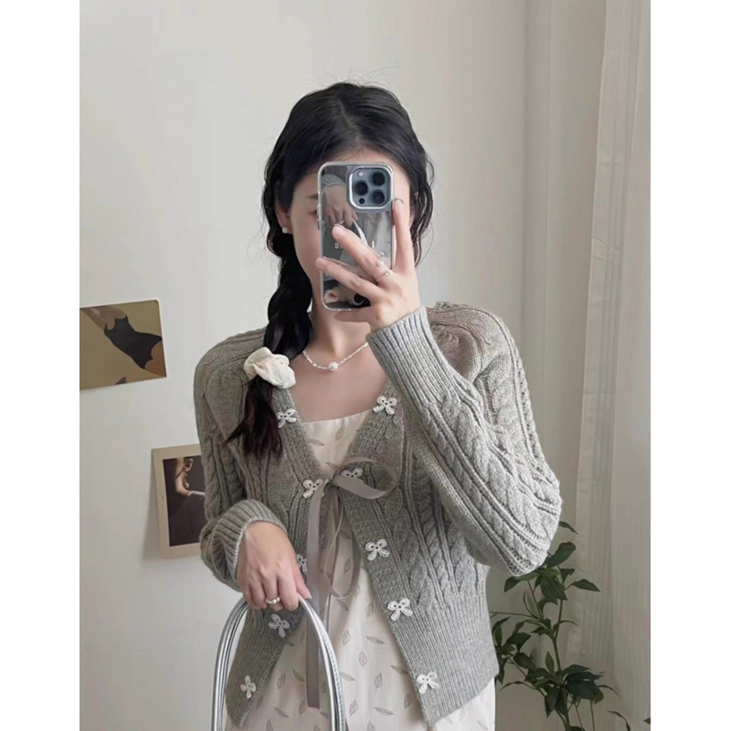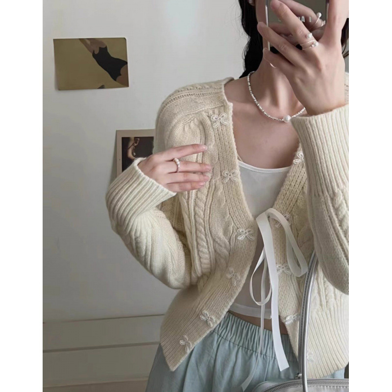 한국 스타일 신선한 스타일 활 니트 카디건 여성의 2024 가을 새로운 복고풍 디자인 센스 스웨터 코트 탑