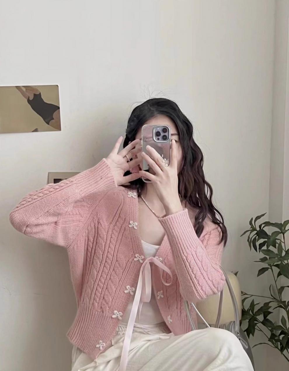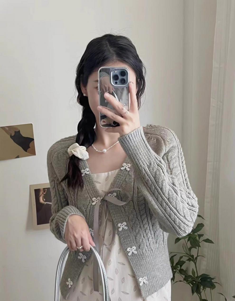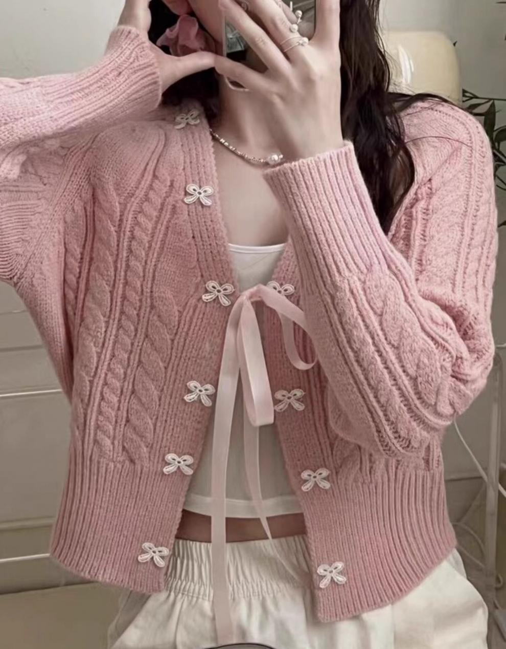 한국 스타일 신선한 스타일 활 니트 카디건 여성의 2024 가을 새로운 복고풍 디자인 센스 스웨터 코트 탑