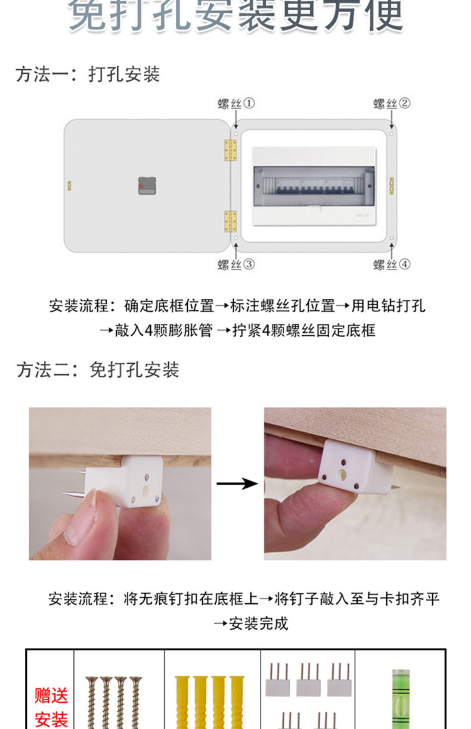 • 팁: 전기 상자는 차단 크기보다 클 수 없습니다. - 다이얼(점선 스타일) - 펀치 없는 설치 패키지와 함께 제공됩니다. - 세라믹 타일 비고