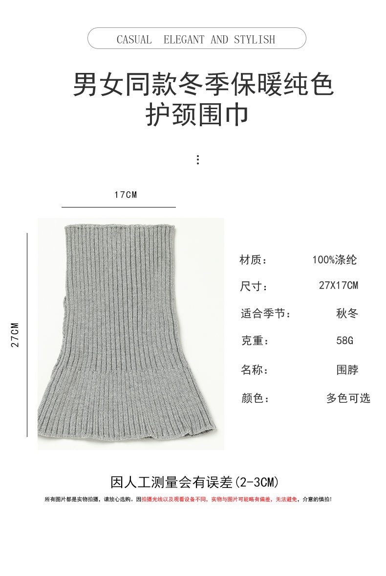 가을과 겨울 스카프 남성과 여성의 수직 패턴 따뜻한 방풍 경추 척추 풀오버 목 소매 올 매치 단색 스트레치 니트 스카프스토어 가기