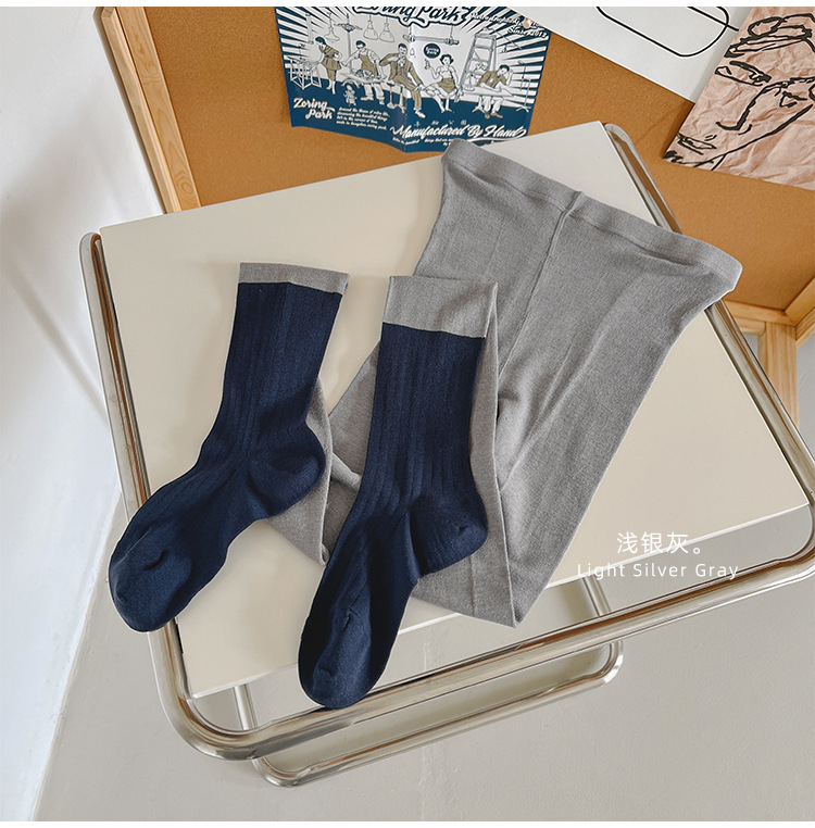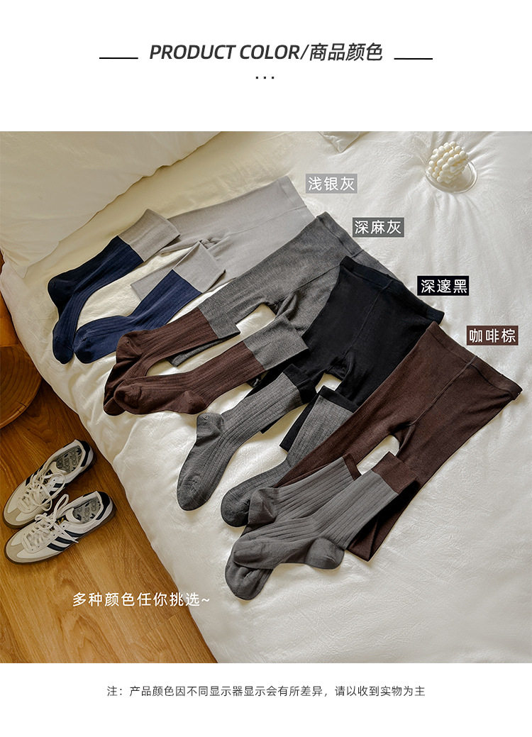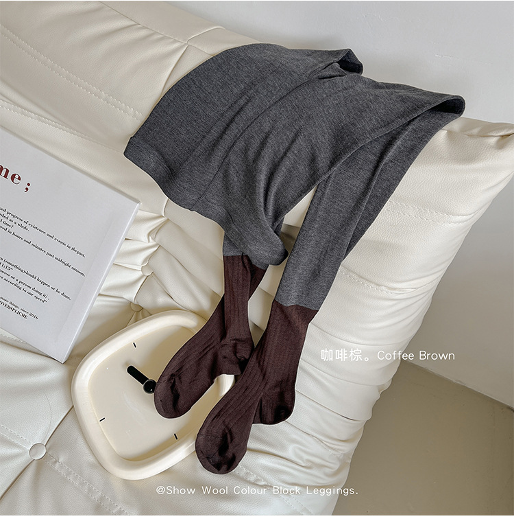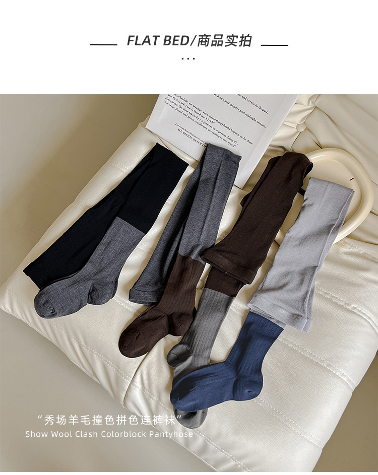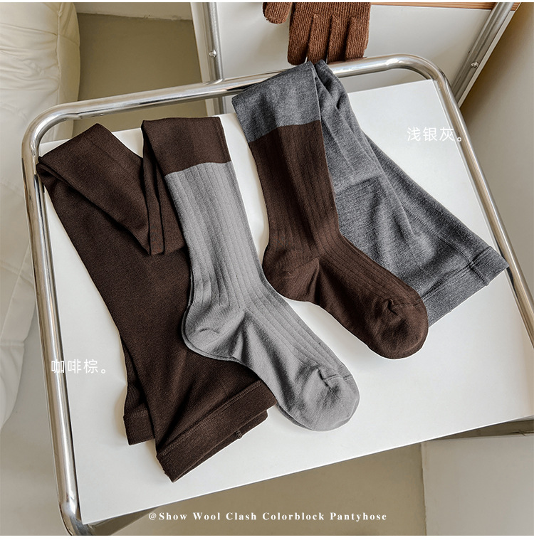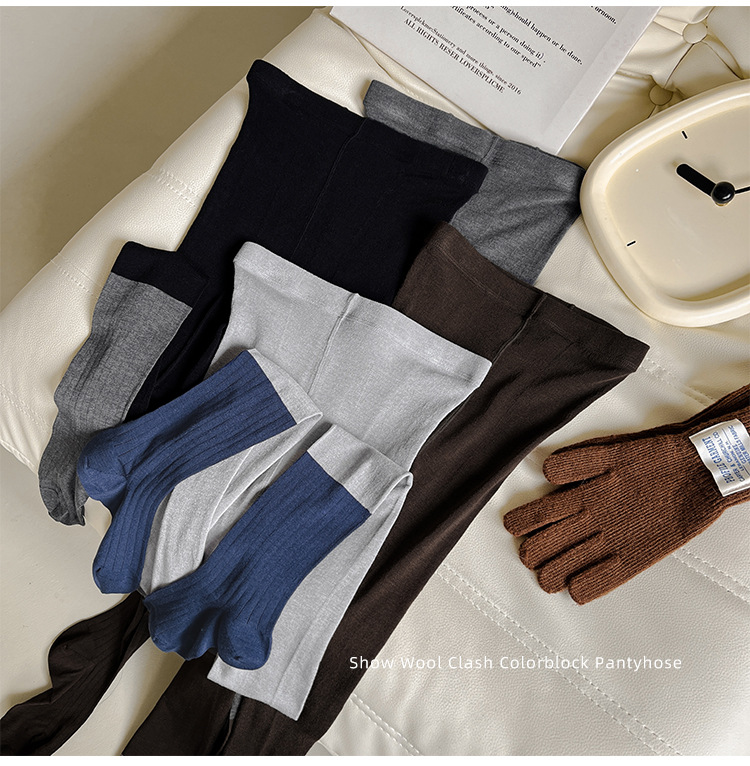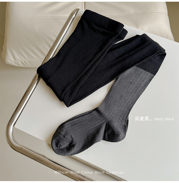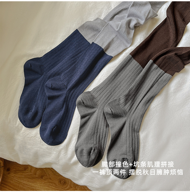 2025 가을 겨울 신상 여성용 레깅스 240니트 고밀도 쇼케이스용 정교한 울 혼방 컬러블록 디자인 명품 골지 팬티스타킹