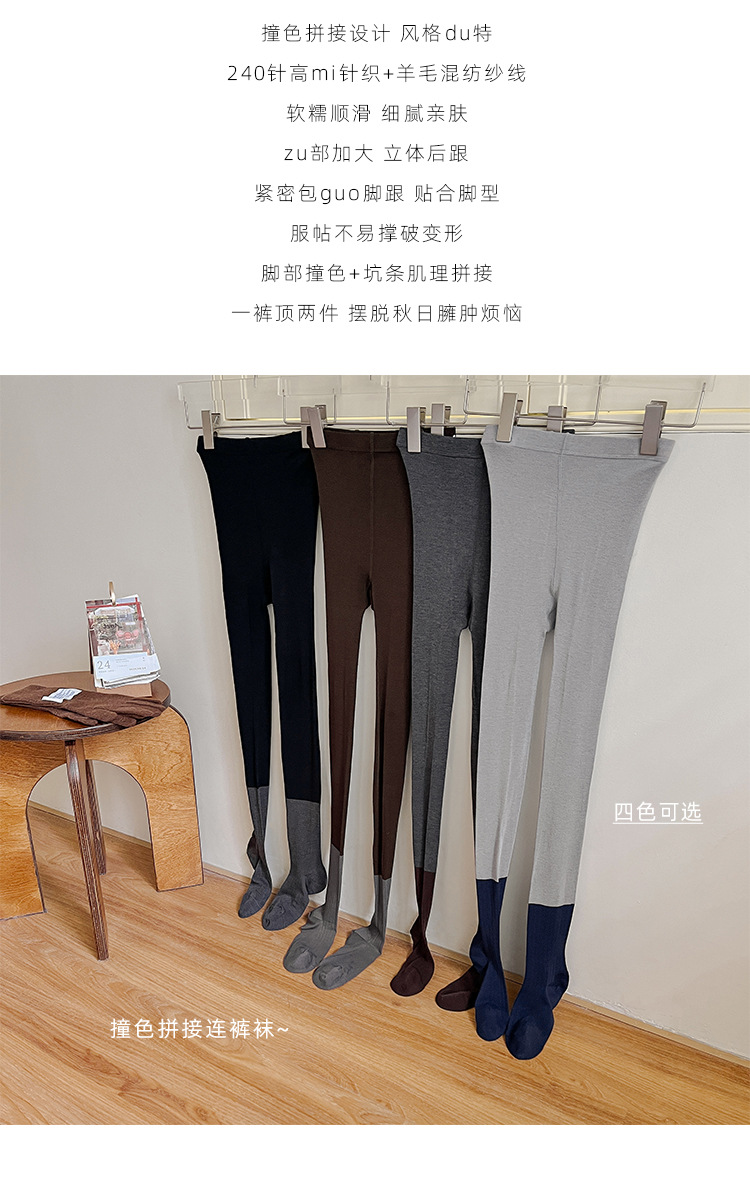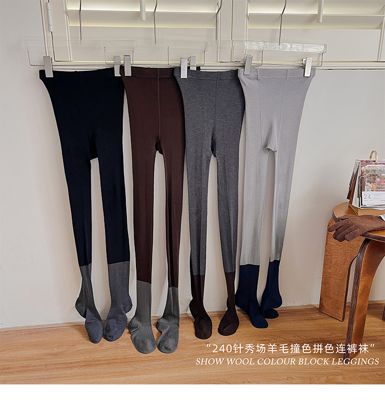 2025 가을 겨울 신상 여성용 레깅스 240니트 고밀도 쇼케이스용 정교한 울 혼방 컬러블록 디자인 명품 골지 팬티스타킹스토어 가기
