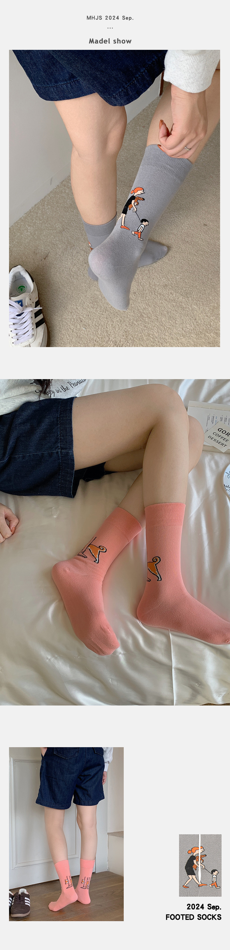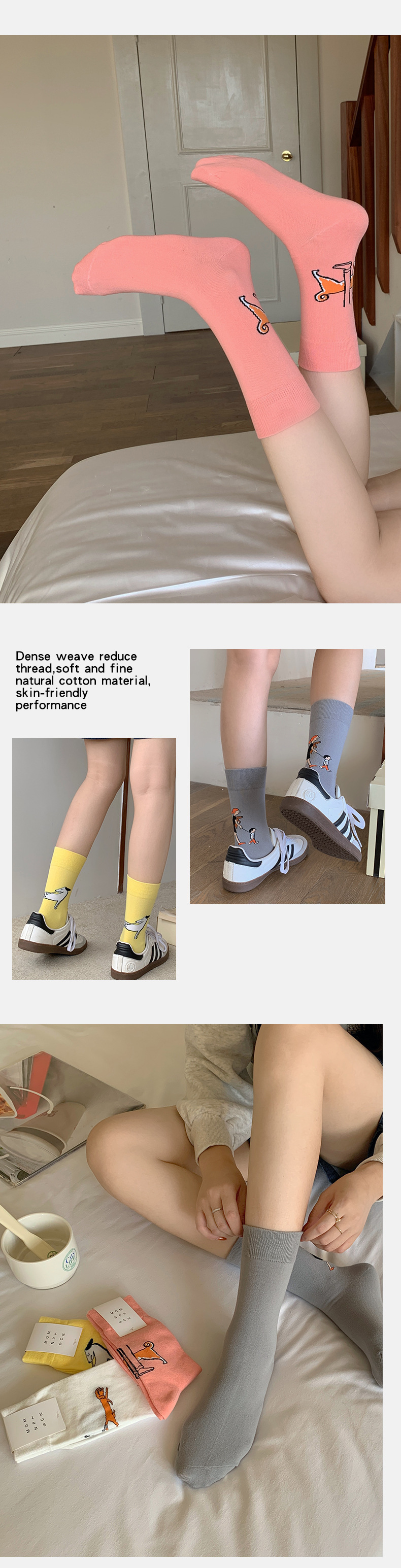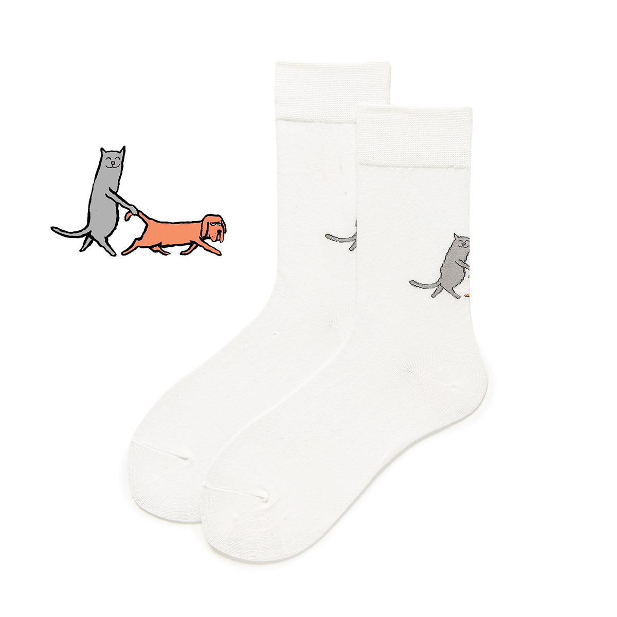 만화 양말 봄과 가을 흰 튜브 양말 남성과 여성을위한 스푸핑 그림 양말 강아지 양말스토어 가기