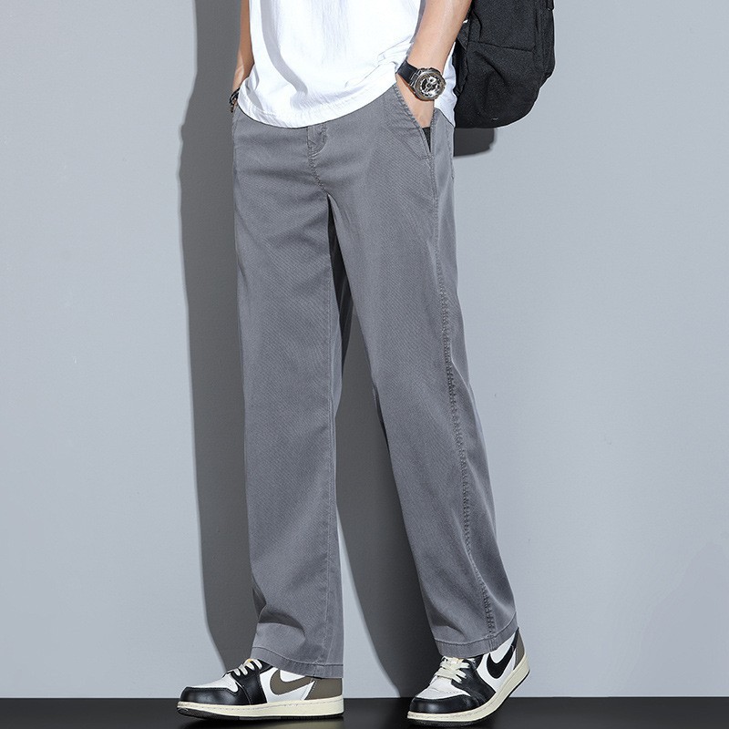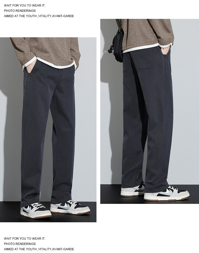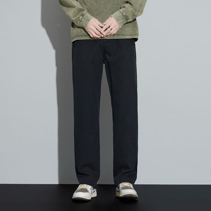 가을과 겨울 두꺼운 탄성 핏 스트레이트 캐주얼 바지 청소년 올 매치 캐주얼 와이드 레그 바지 남성용 슬림 핏 캐주얼 바지