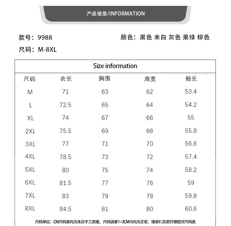 M-8XL 국경 간 플러스 사이즈 스탠드 칼라 코튼 패딩 코트 남성과 여성을위한 겨울 느슨한면 패딩 코트 커스텀 빵 단색면 패딩 재킷