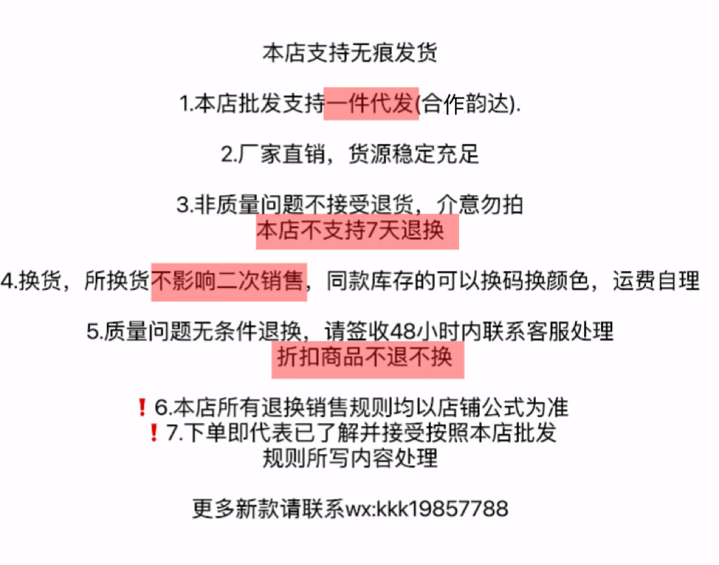店铺商品不支持七天无理由!