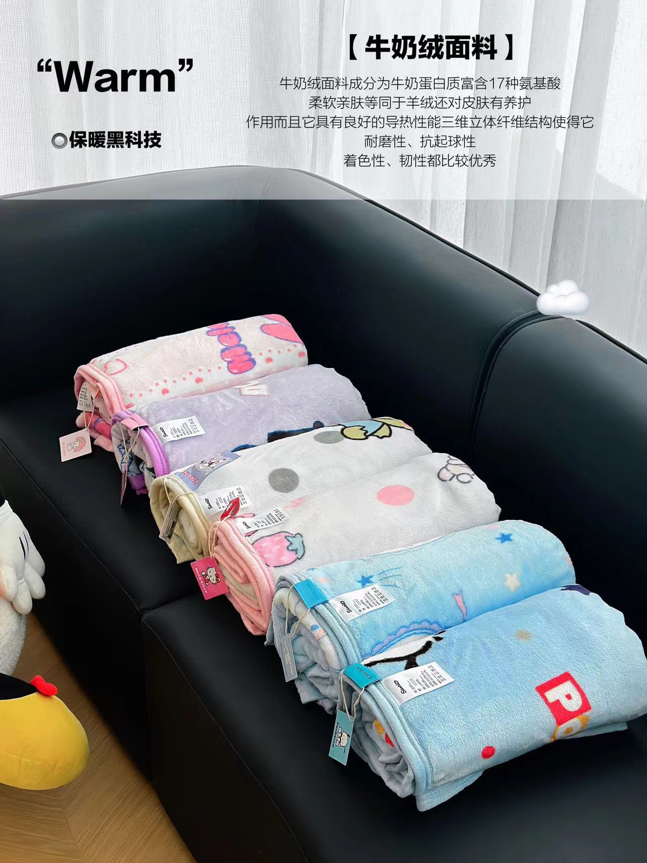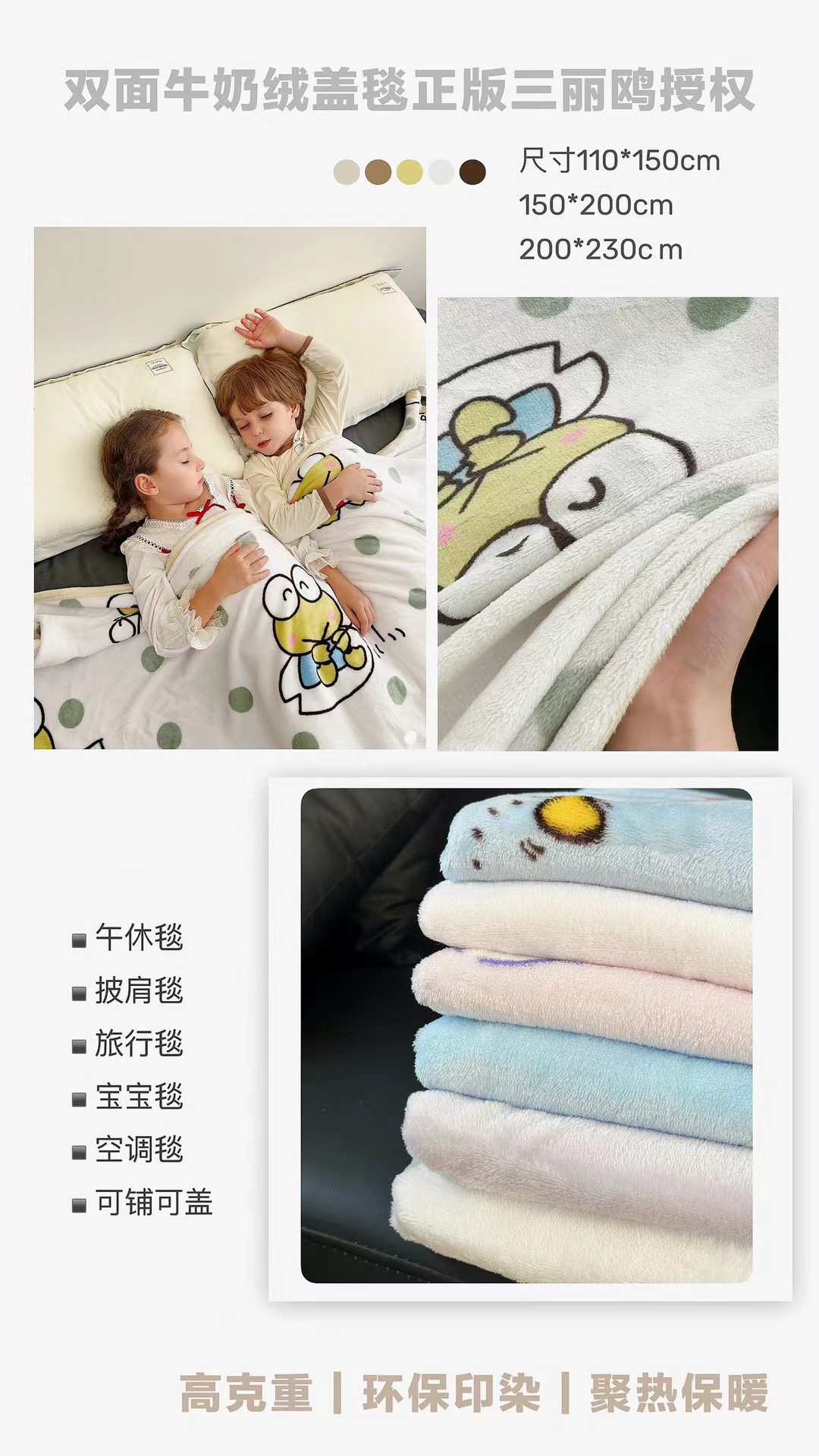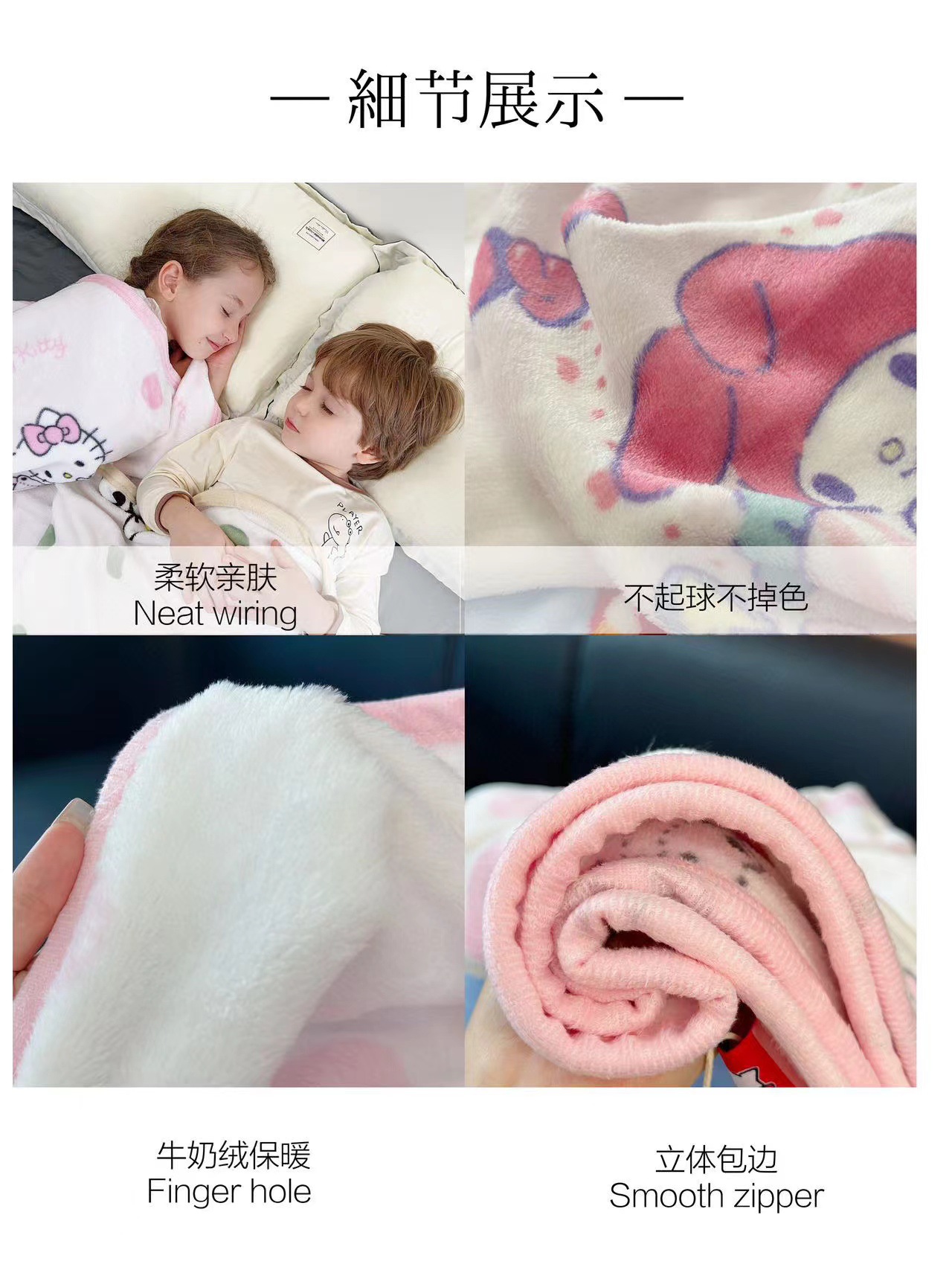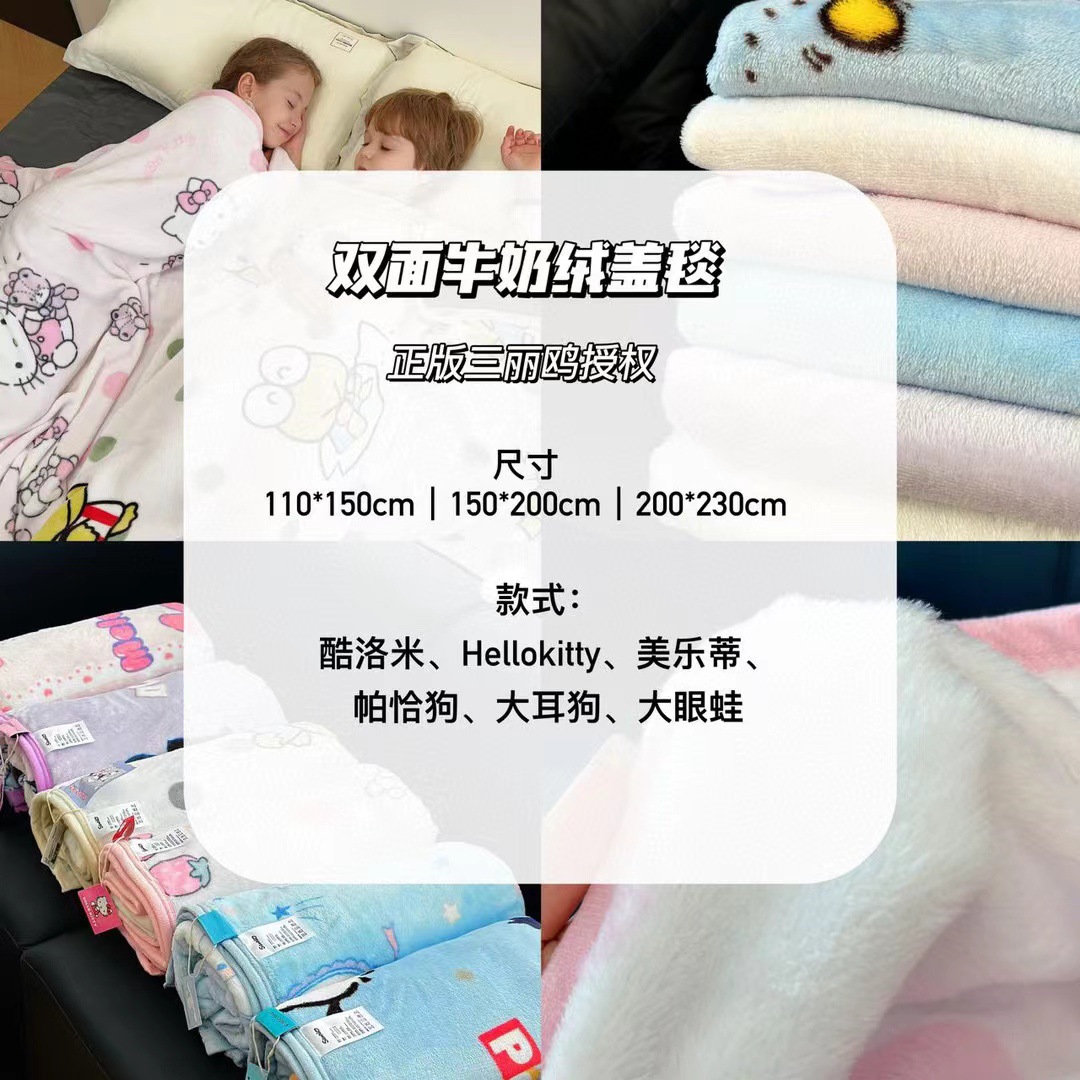 산리오 만화 인쇄 우유 벨벳 어린이 담요 국경 가을과 겨울 다기능 낮잠 소파 담요 라이브 세대스토어 가기