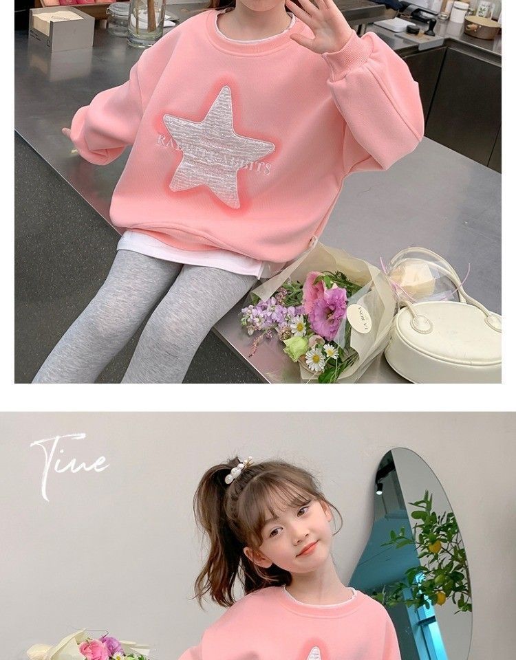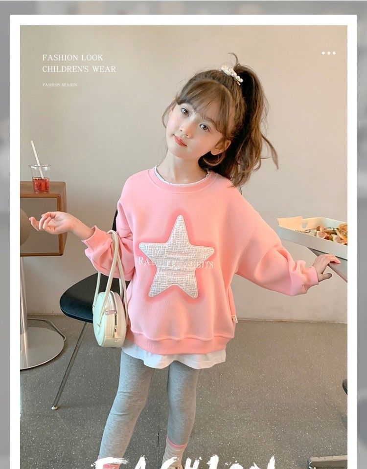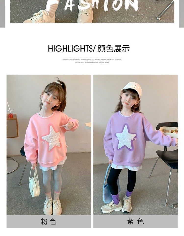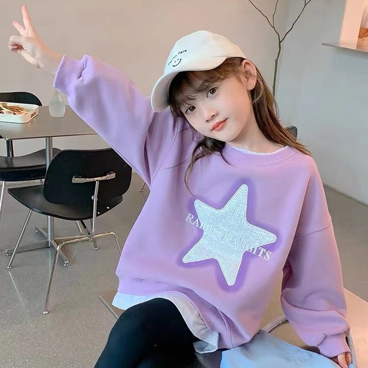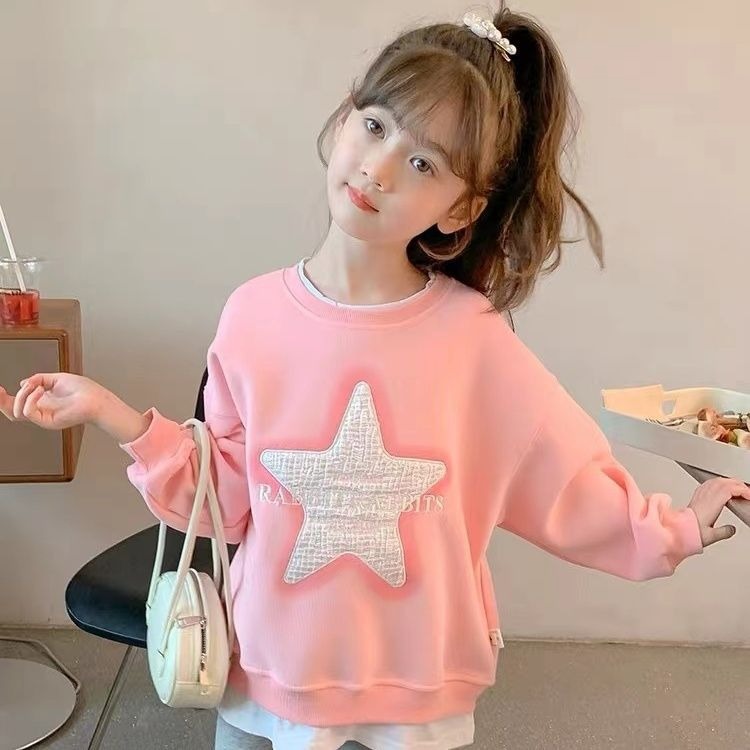 소녀 봄 가을 2024 새로운 스타일 서양식 어린이 가을 긴 소매 옷 어린 소녀의 가을 풀오버 탑스토어 가기