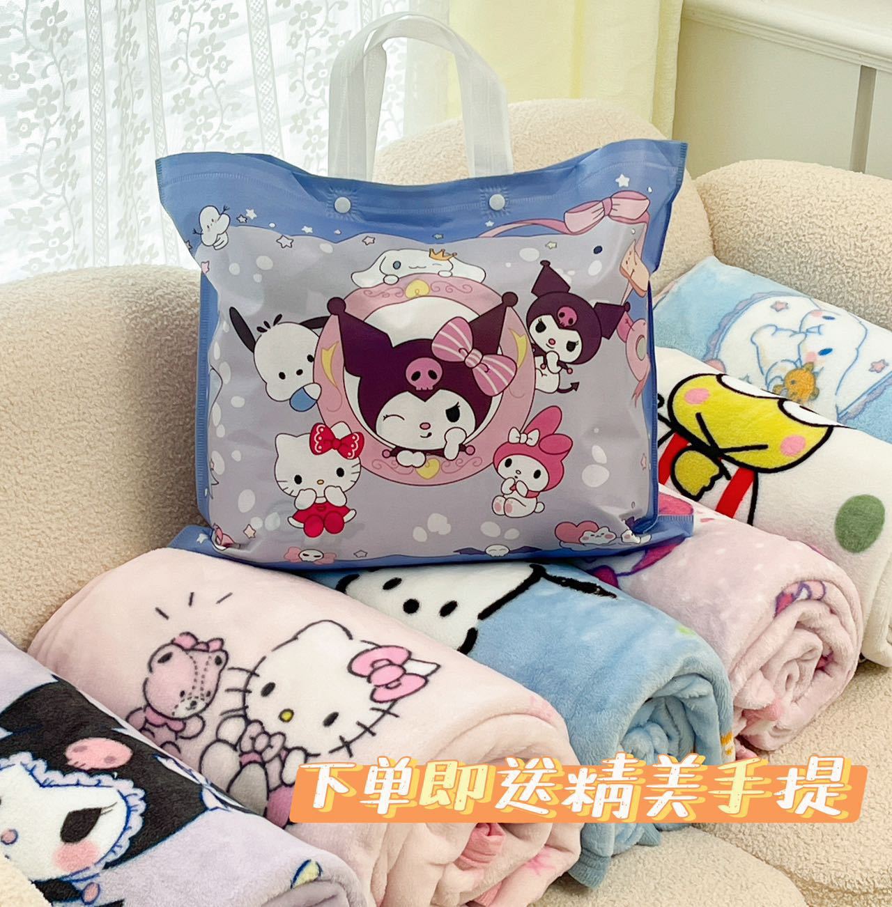 국경 간 산리오 밀크 벨벳 만화 선물 담요 클래스 어린이 에어컨 유치원 사무실 낮잠 담요스토어 가기
