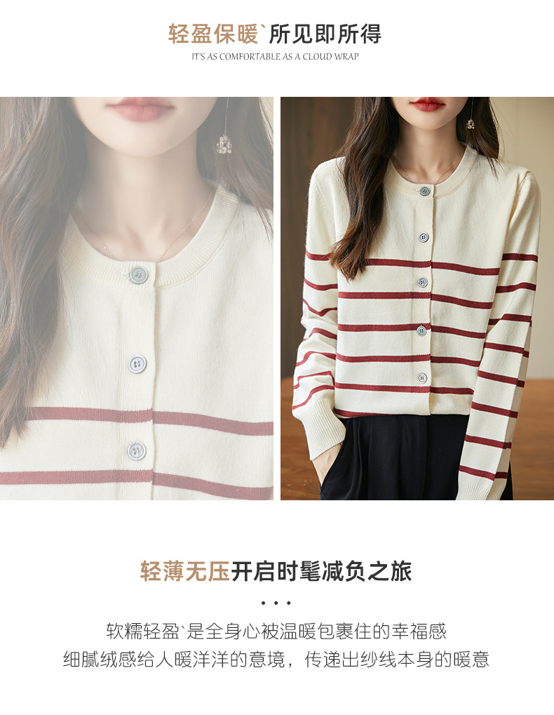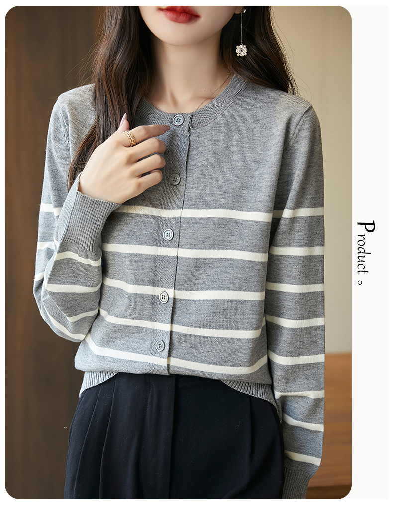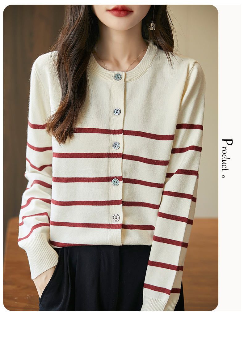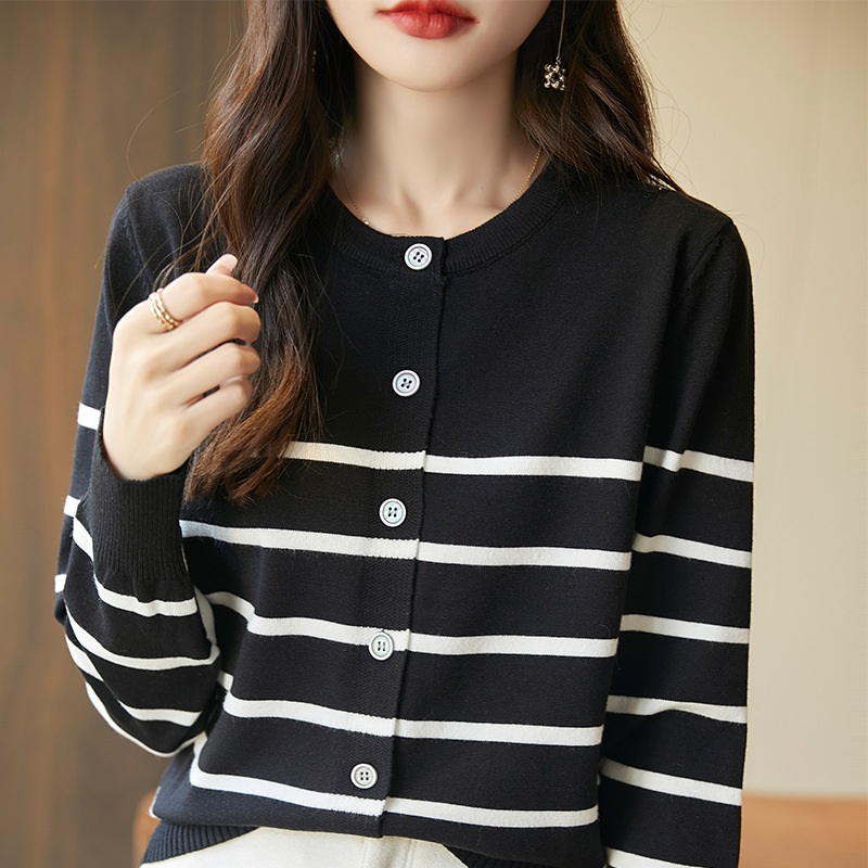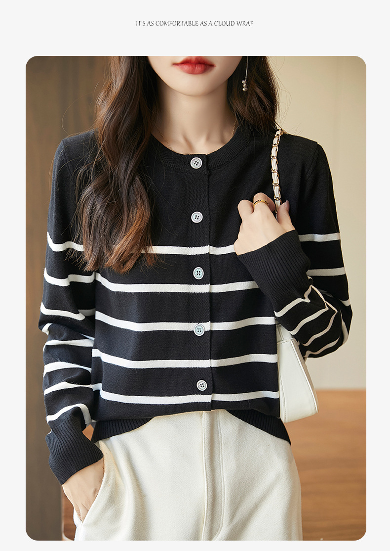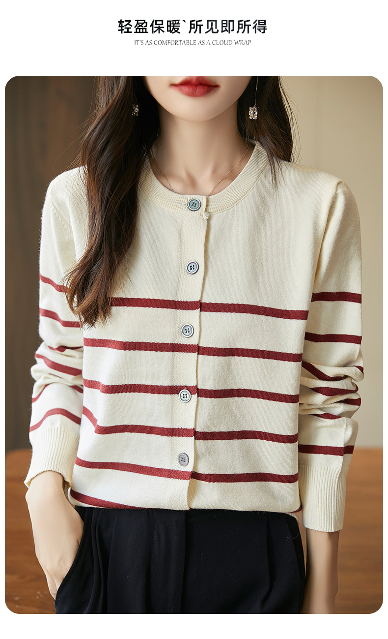 프렌치 롱 슬리브 스트라이프 크루 넥 니트 싱글 로우 멀티 버튼 카디건 여성용 초가을 통근 스웨터 여성용 코트 탑