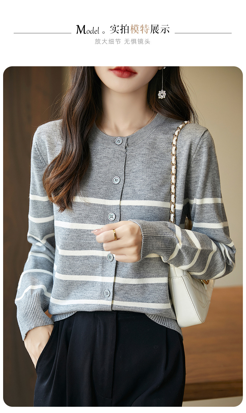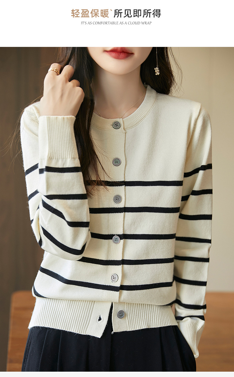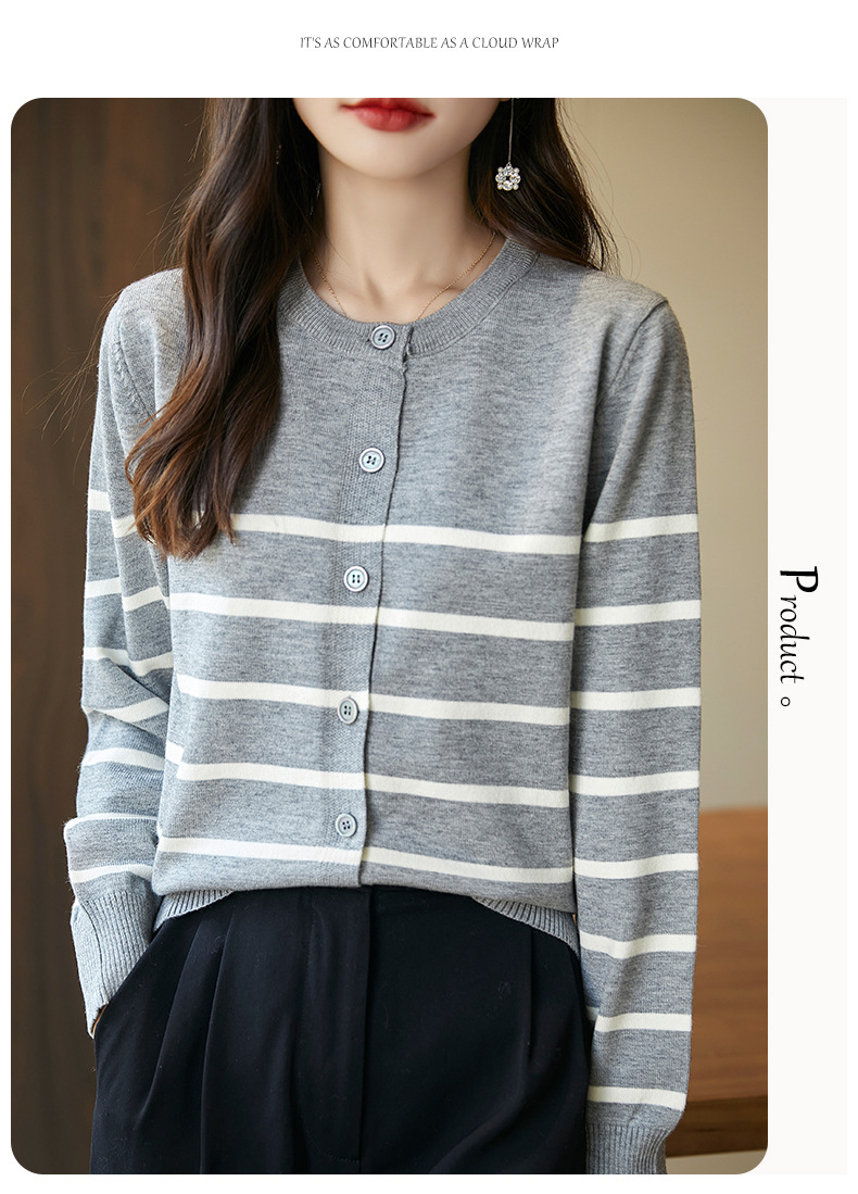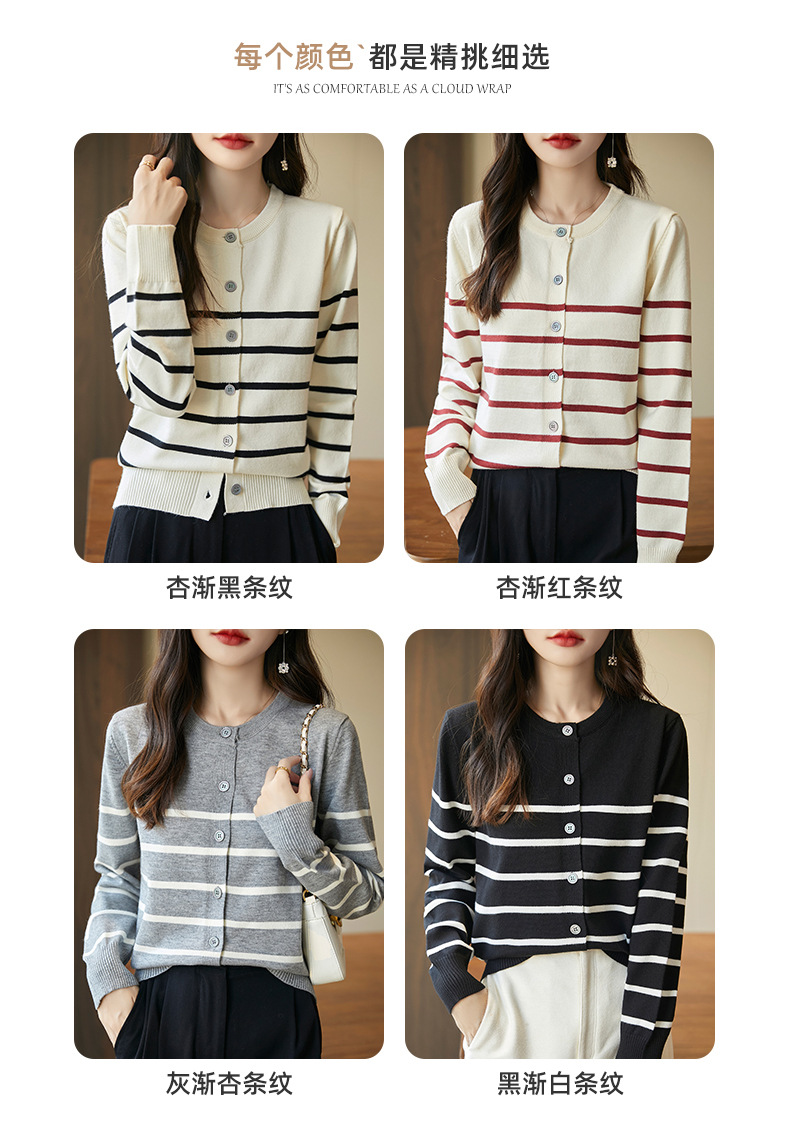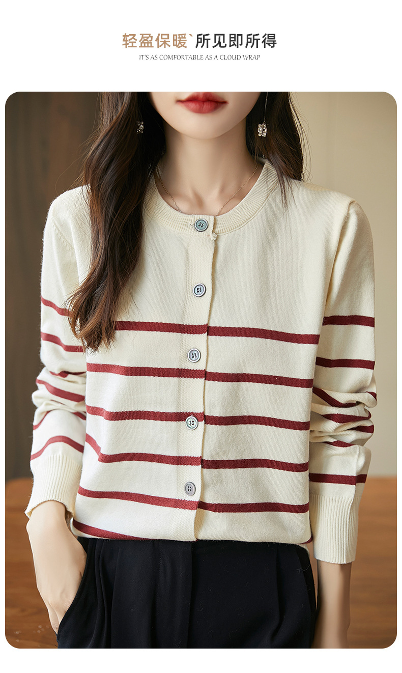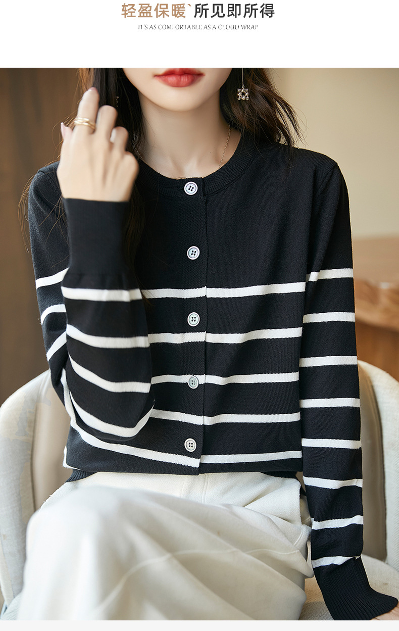 프렌치 롱 슬리브 스트라이프 크루 넥 니트 싱글 로우 멀티 버튼 카디건 여성용 초가을 통근 스웨터 여성용 코트 탑
