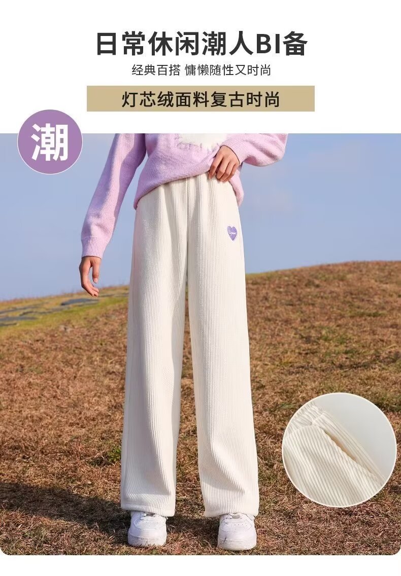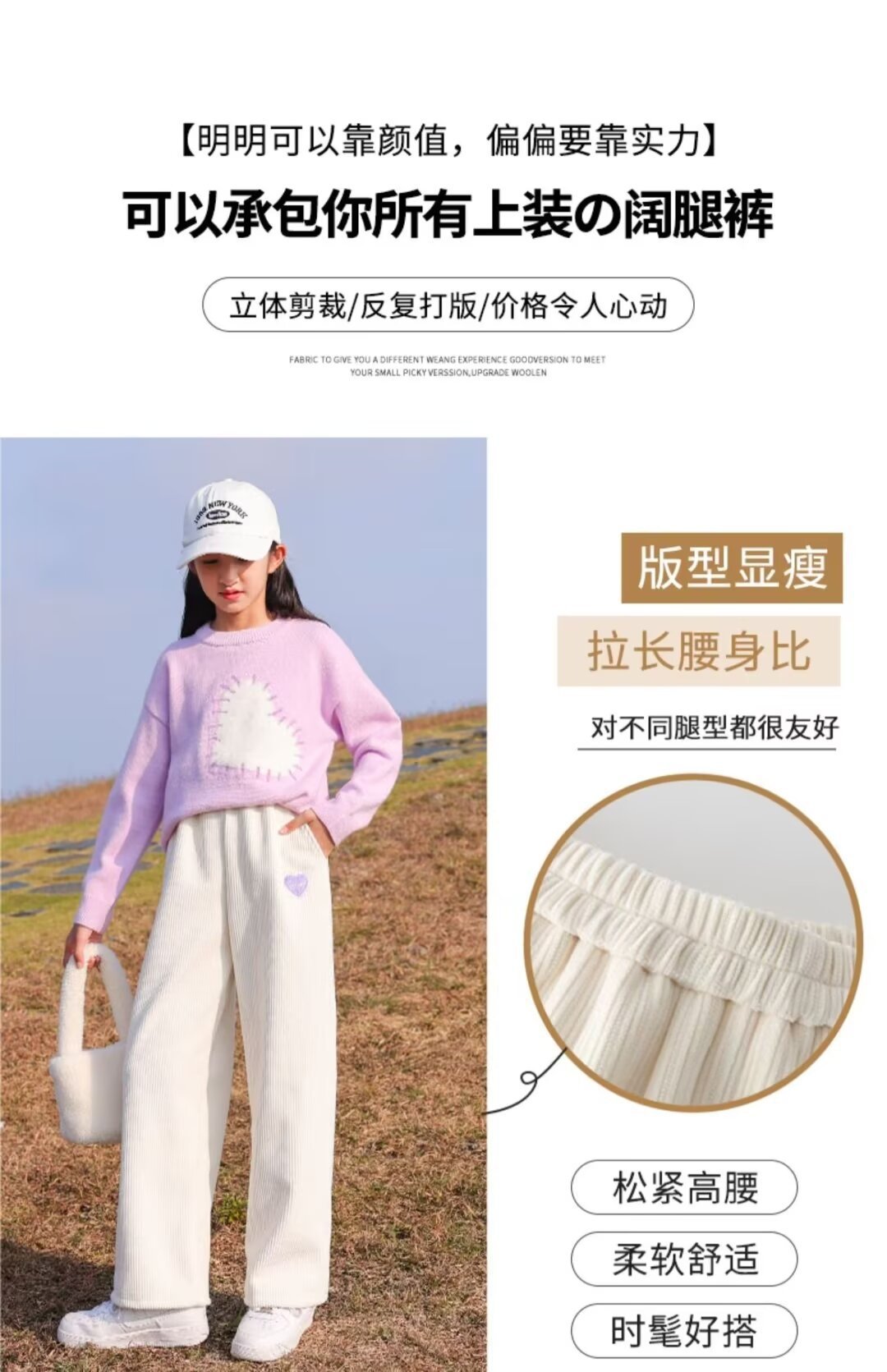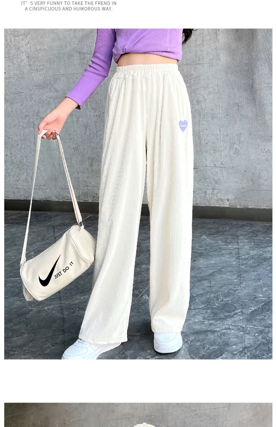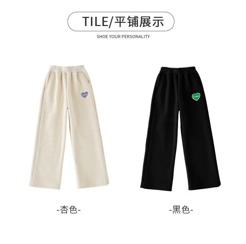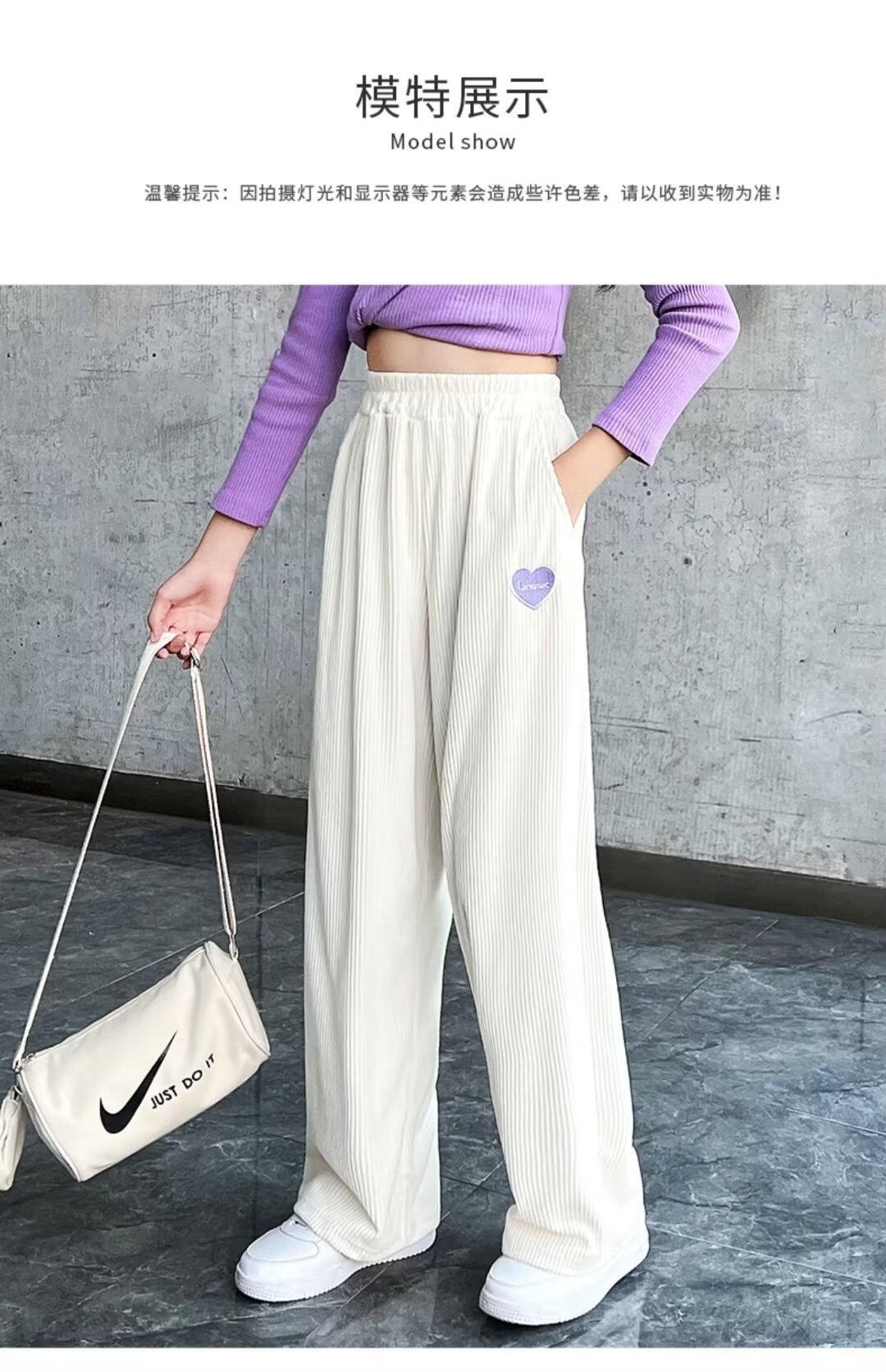 소녀 넓은 다리 바지 어린이 스트레이트 바지 2024 캐주얼 가을 소녀 바지 가을 새로운 봄과 가을 스타일