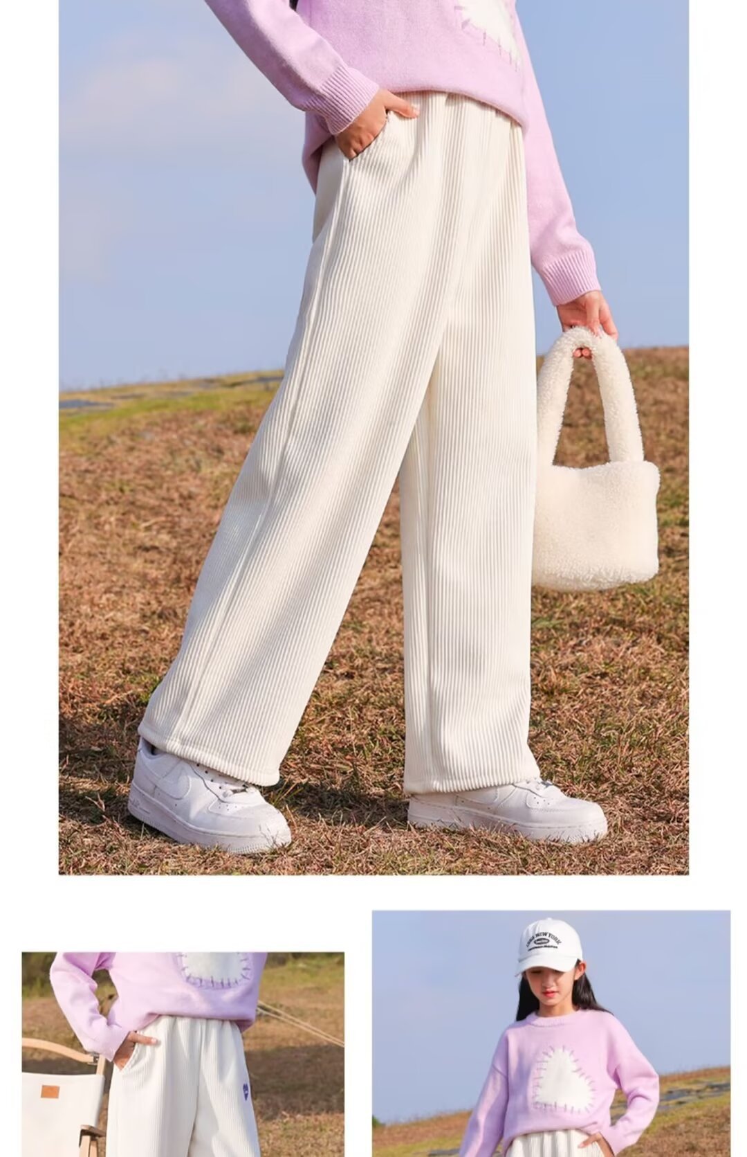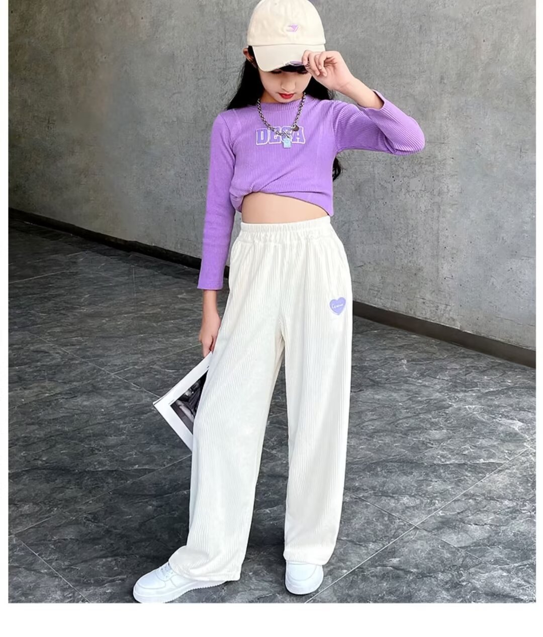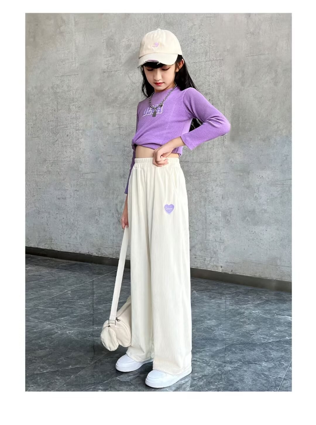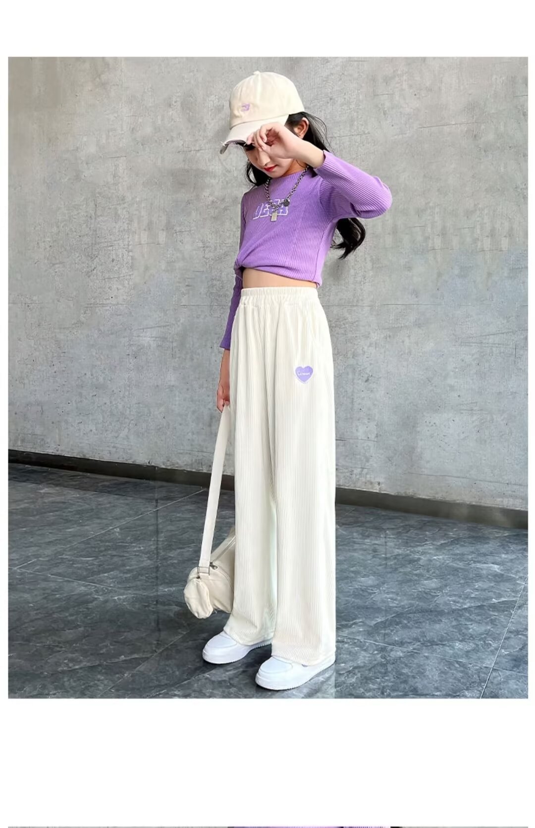 소녀 넓은 다리 바지 어린이 스트레이트 바지 2024 캐주얼 가을 소녀 바지 가을 새로운 봄과 가을 스타일스토어 가기