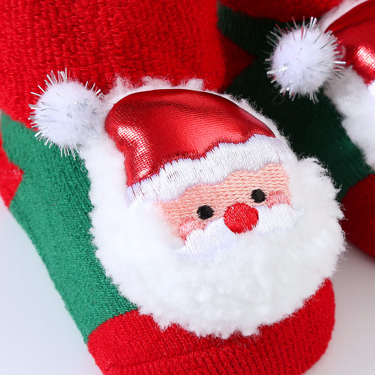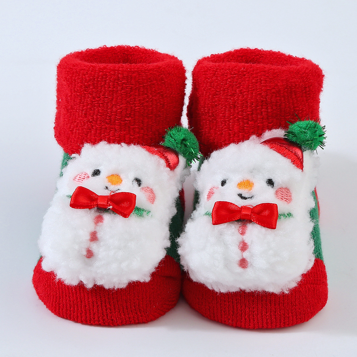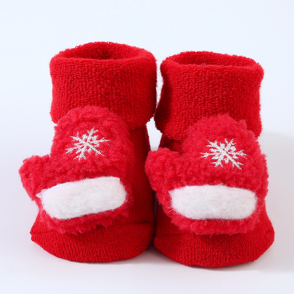 2024 새로운 테리 양말 두꺼운 따뜻한 아기 양말 가을과 겨울면 양말 아기 양말 0-1 년 된 빨간 크리스마스 양말