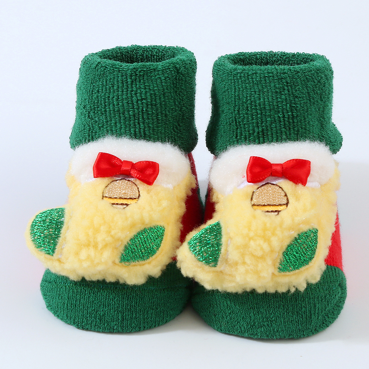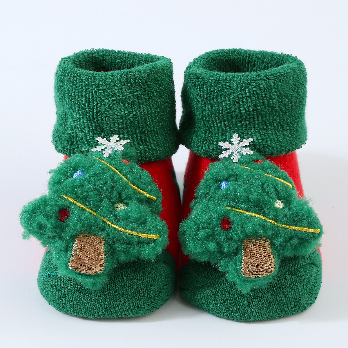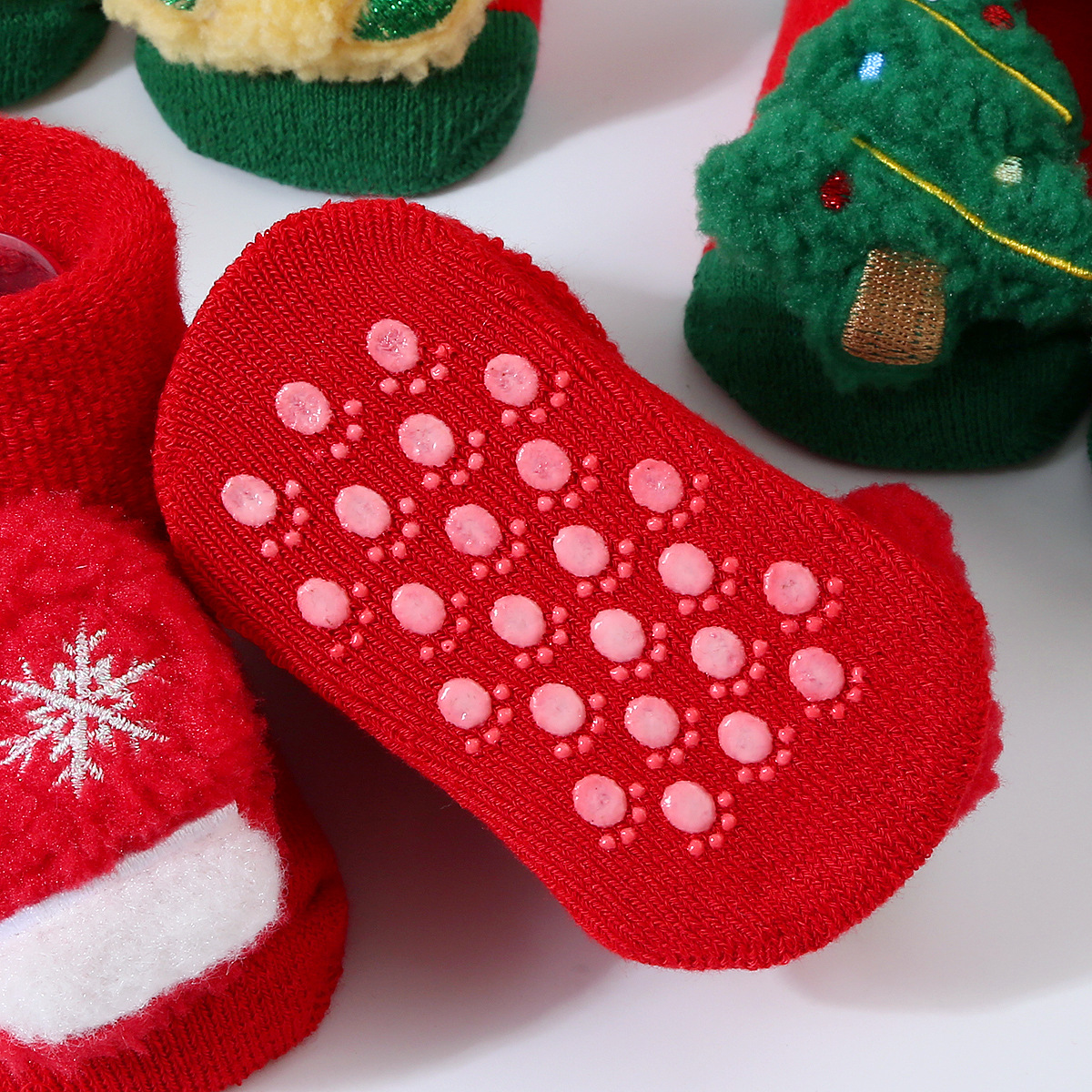 2024 새로운 테리 양말 두꺼운 따뜻한 아기 양말 가을과 겨울면 양말 아기 양말 0-1 년 된 빨간 크리스마스 양말