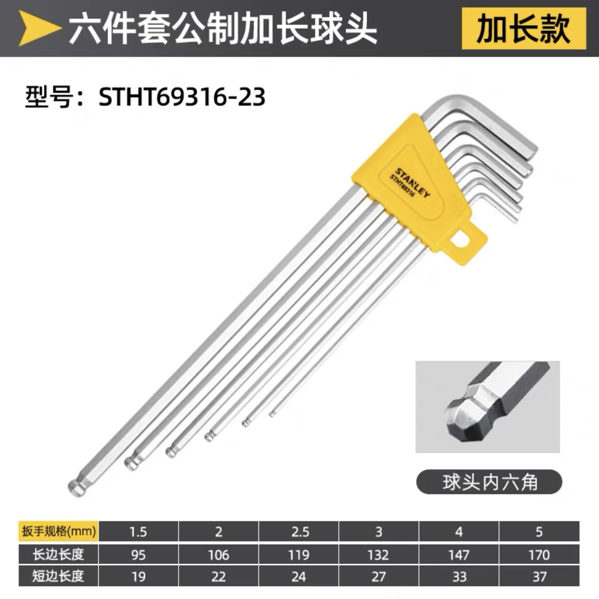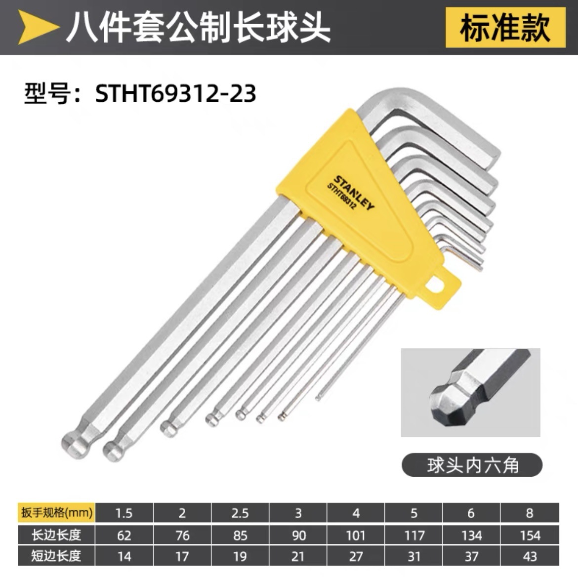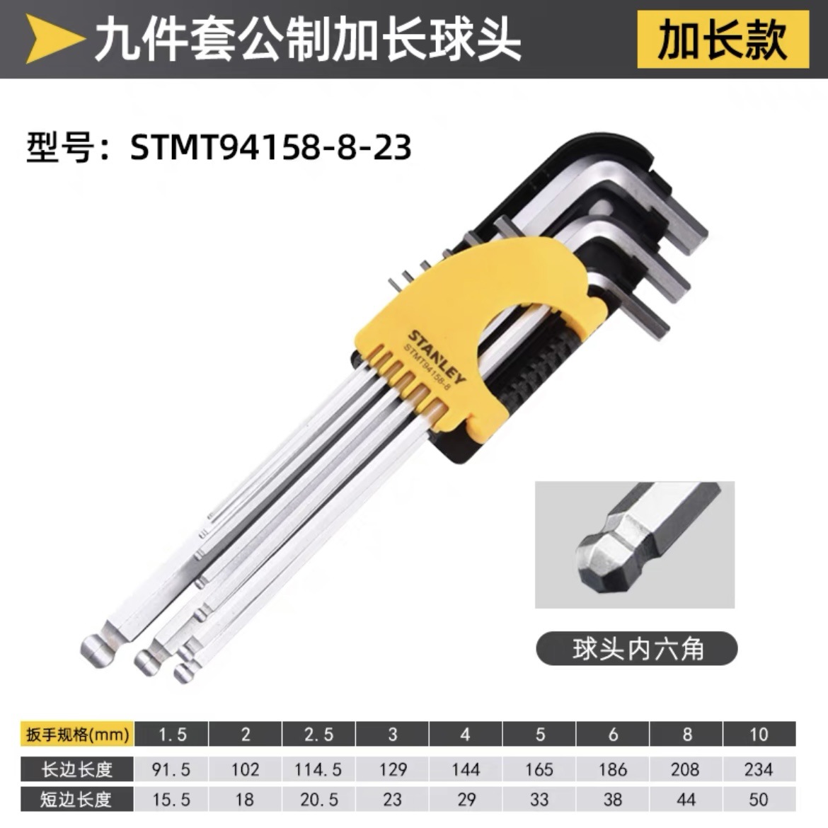 STANLEY 스탠리 육각 키 앨런 렌치 세트 메트릭 영어 5mm 플랫 헤드 렌치 볼 헤드 94162스토어 가기