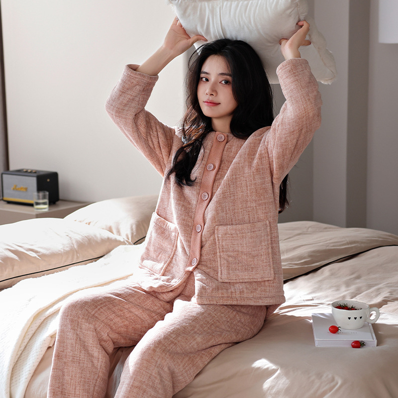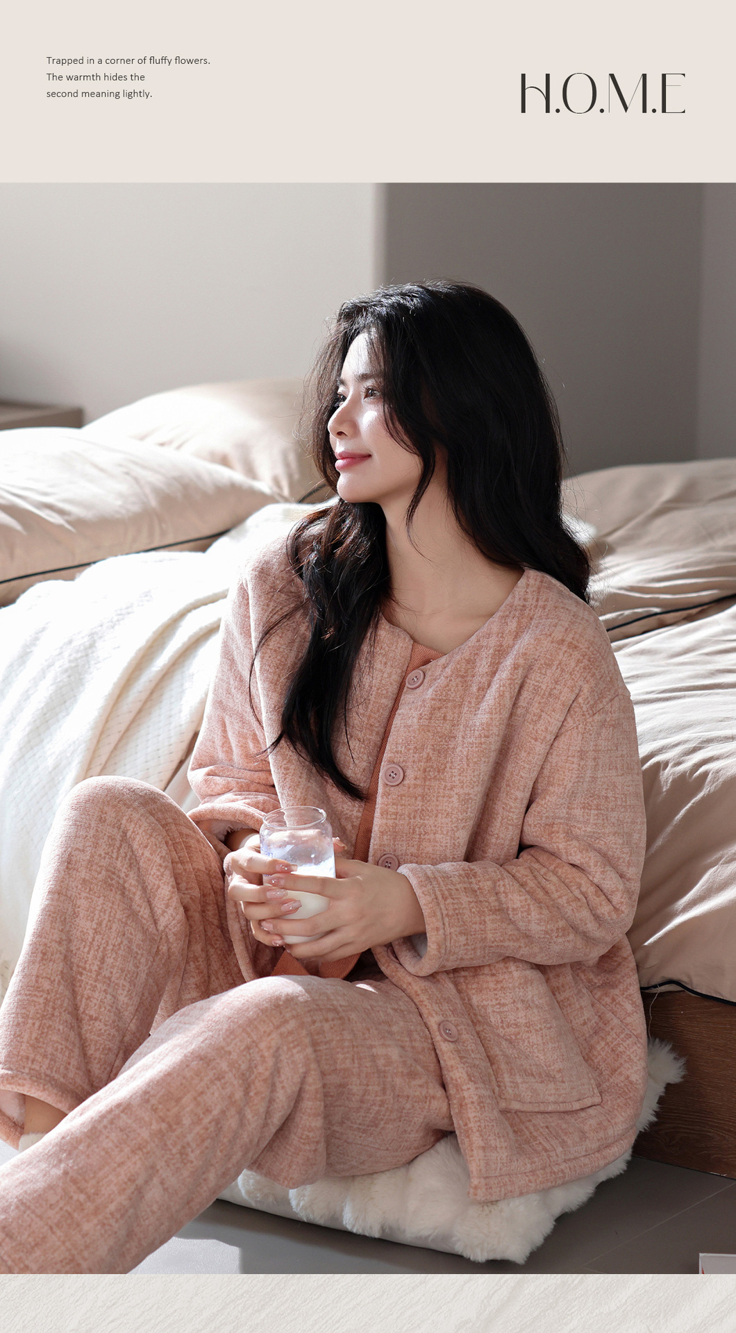 [따뜻한 산호 양털] 새 잠옷 여자 겨울 기모 두꺼운 카디건 달콤한 한국식 홈웨어 플란넬