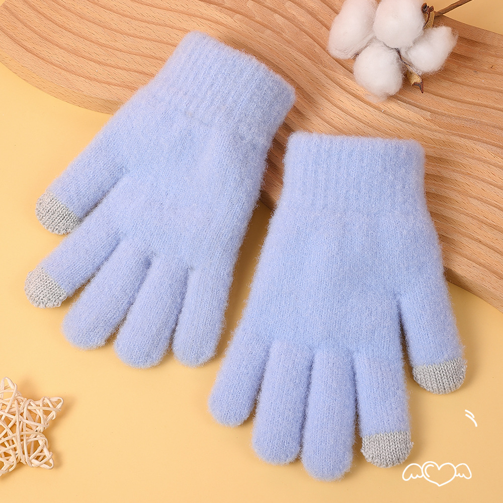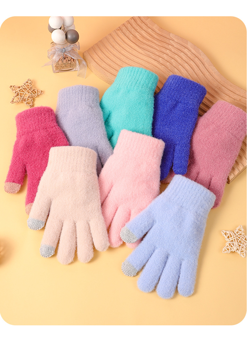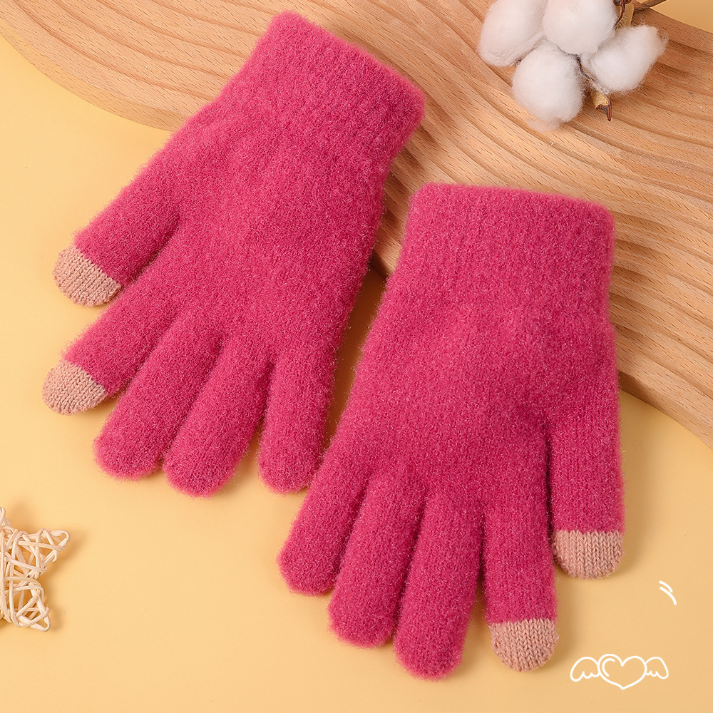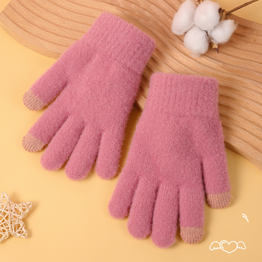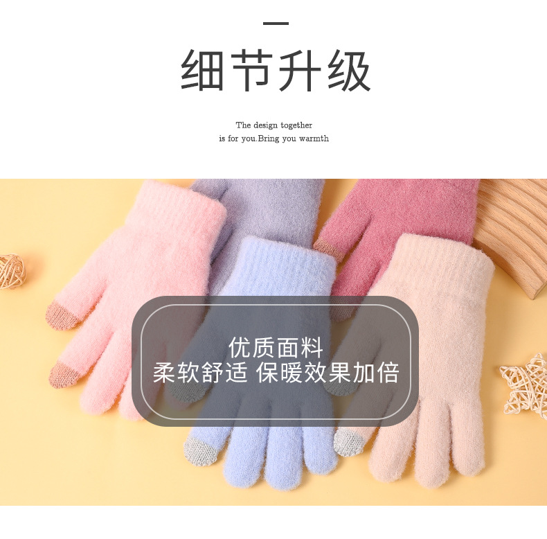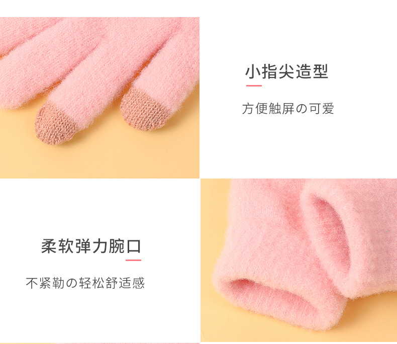 겨울 솔리드 컬러 봉제 장갑 여자 올매치 뉴 스타일 기모 양모 따뜻한 두꺼운 다섯 손가락 냉장 귀여운 한국 스타일
