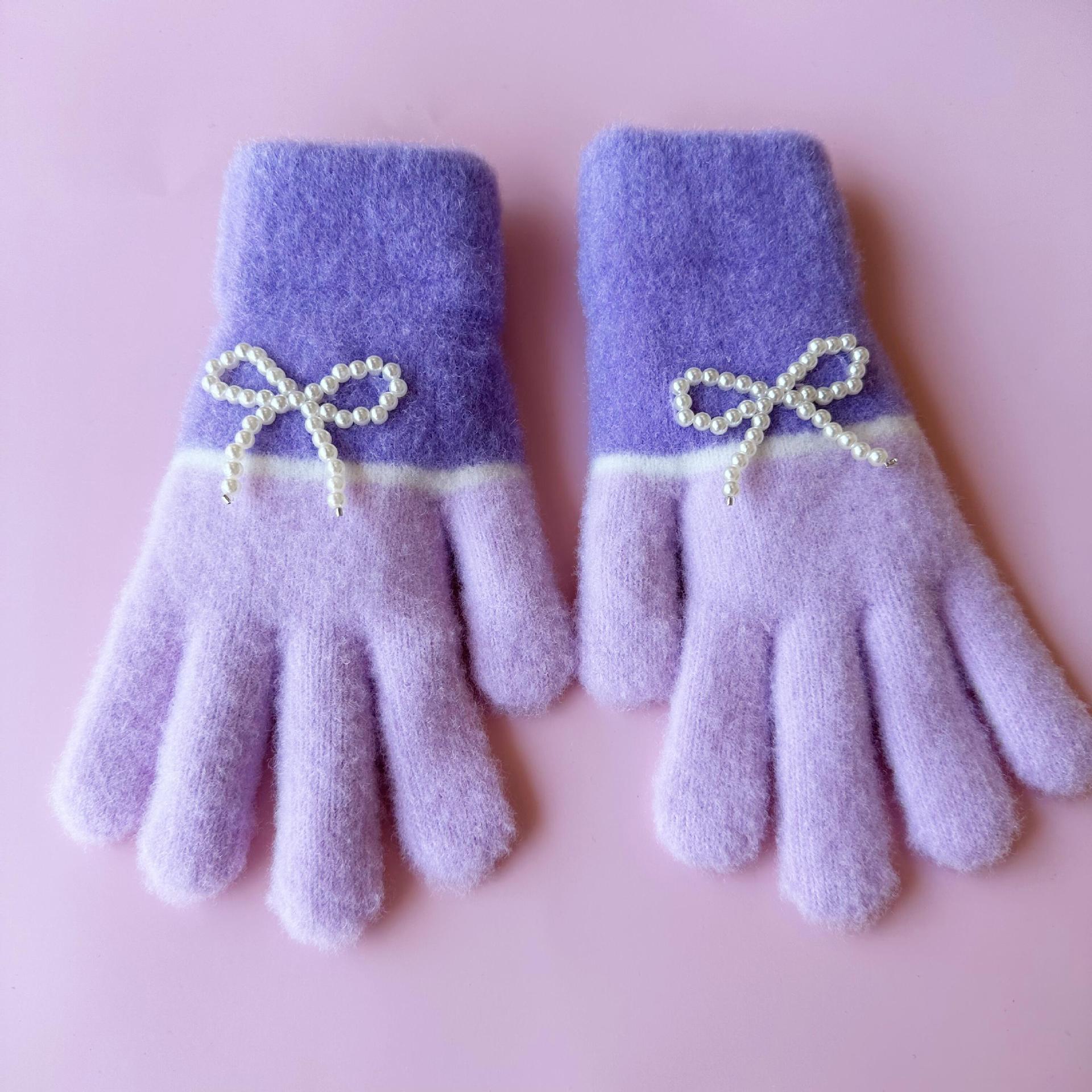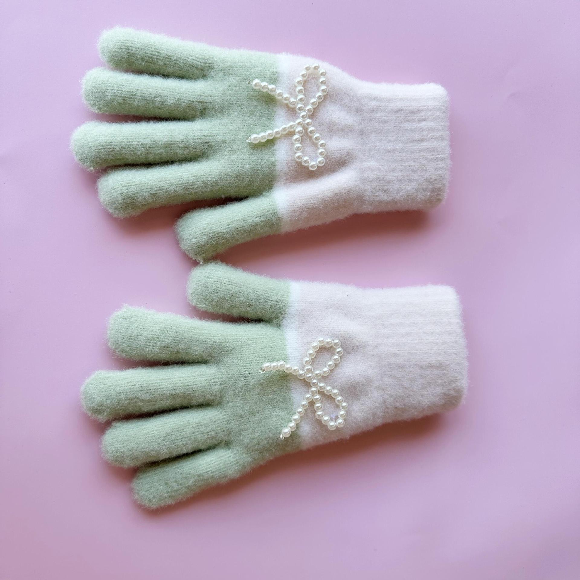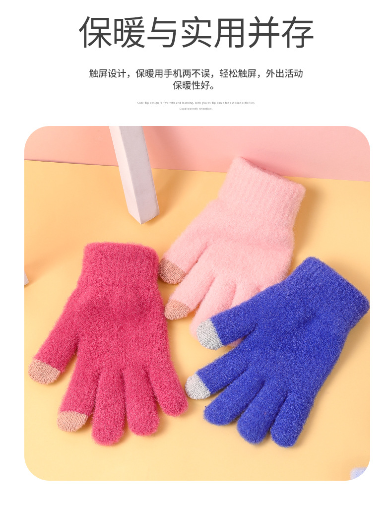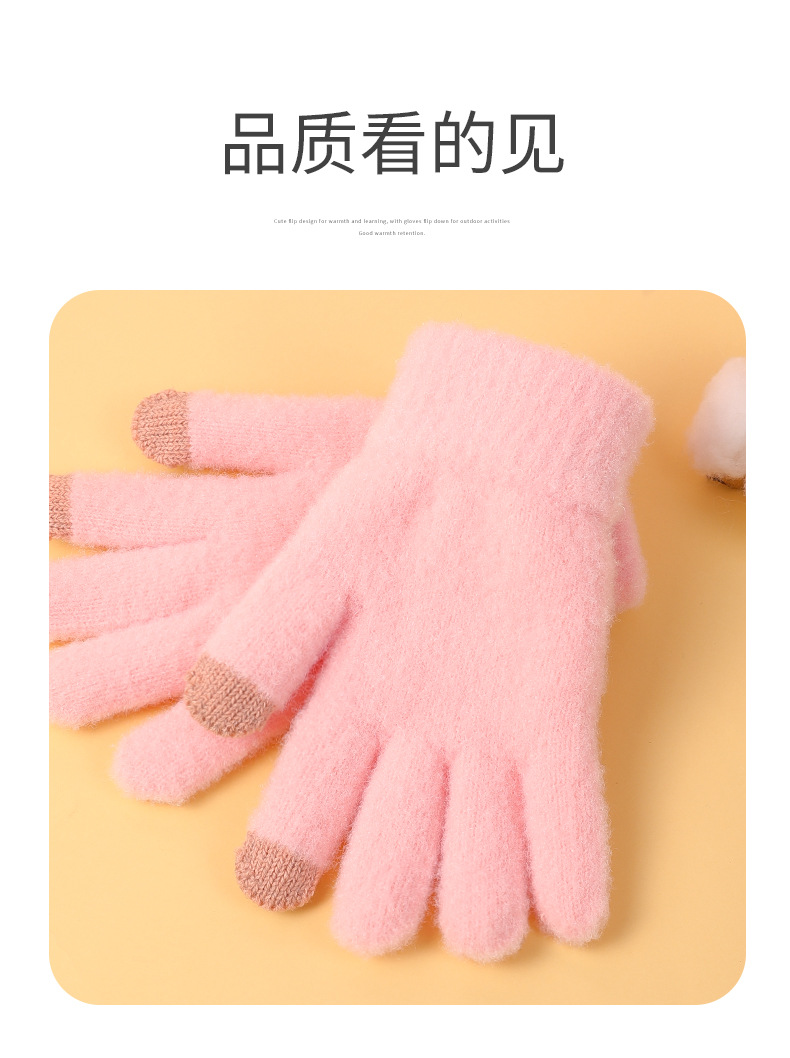 겨울 솔리드 컬러 봉제 장갑 여자 올매치 뉴 스타일 기모 양모 따뜻한 두꺼운 다섯 손가락 냉장 귀여운 한국 스타일
