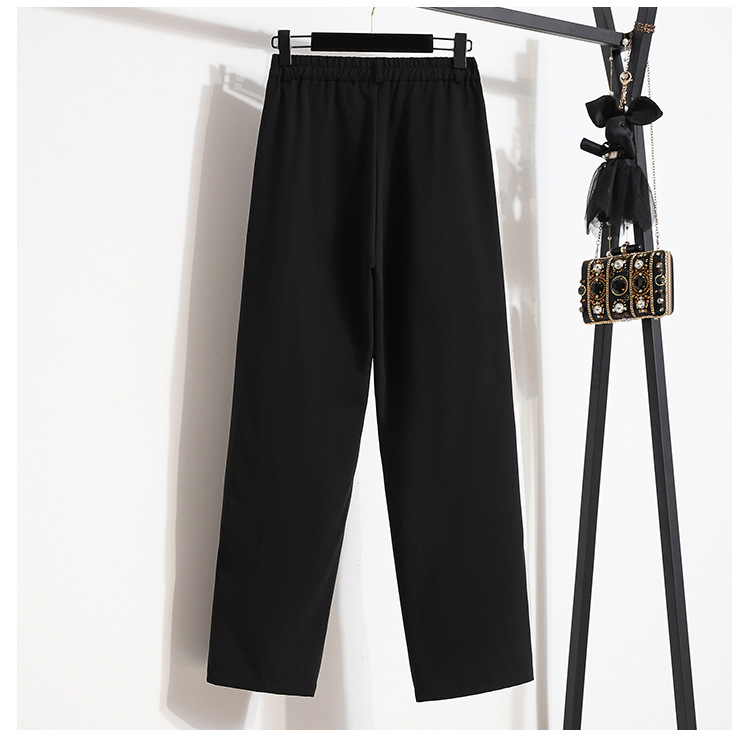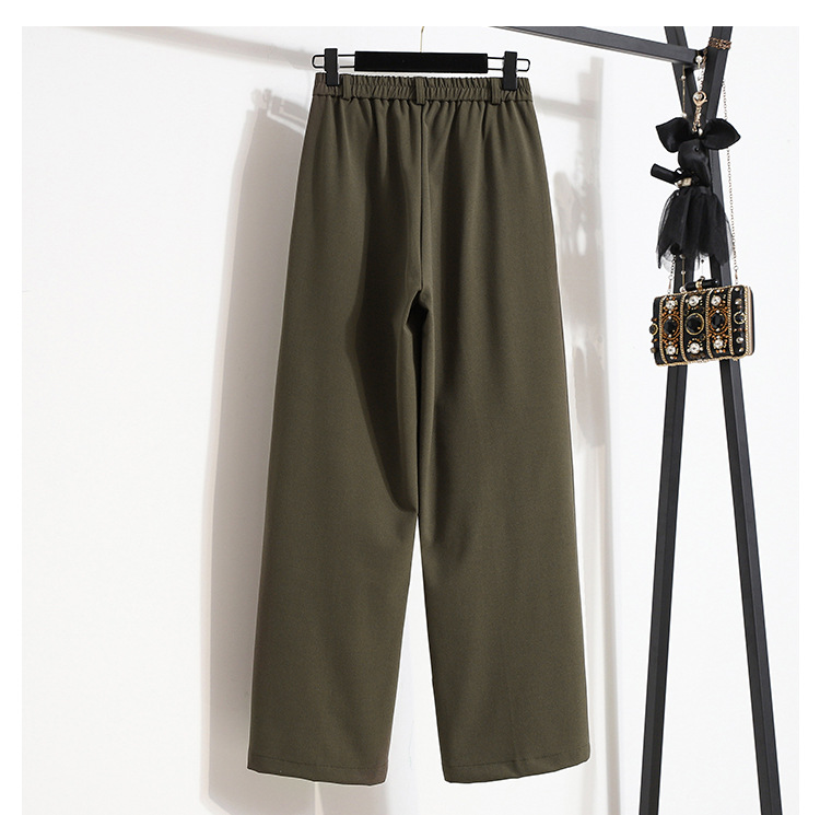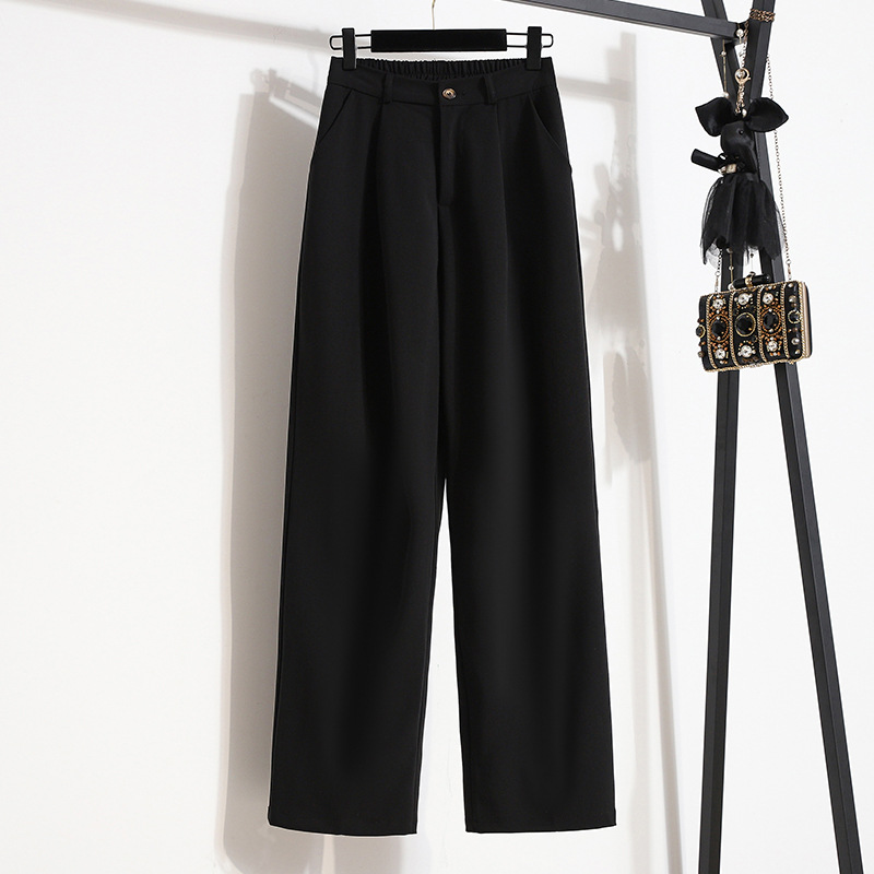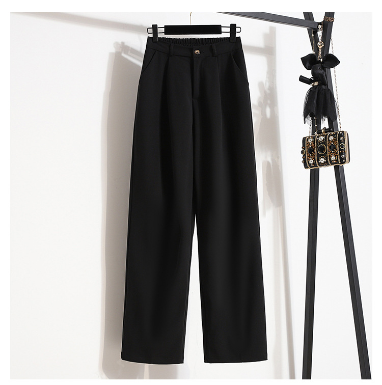 실제 샷 높은 허리 바지 세트 바지 여성용 스트레이트 바지 캐주얼 높은 허리 매달려 봄과 가을 작은 넓은 다리 바지