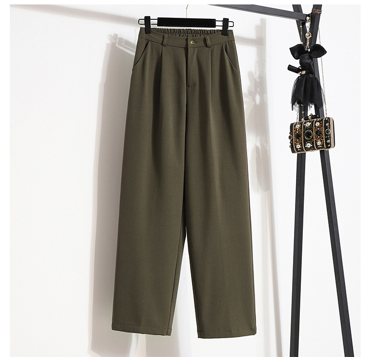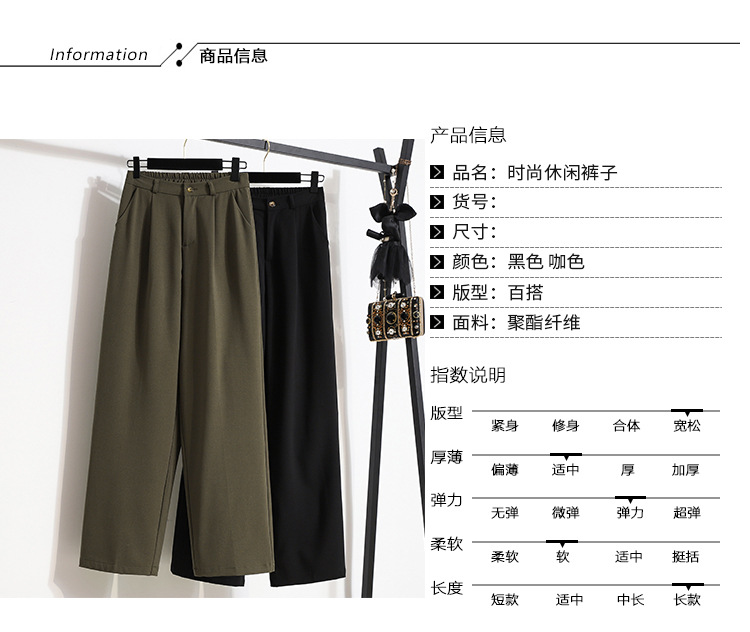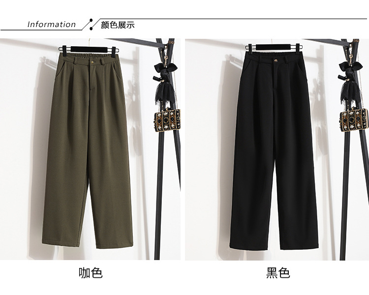 실제 샷 높은 허리 바지 세트 바지 여성용 스트레이트 바지 캐주얼 높은 허리 매달려 봄과 가을 작은 넓은 다리 바지스토어 가기