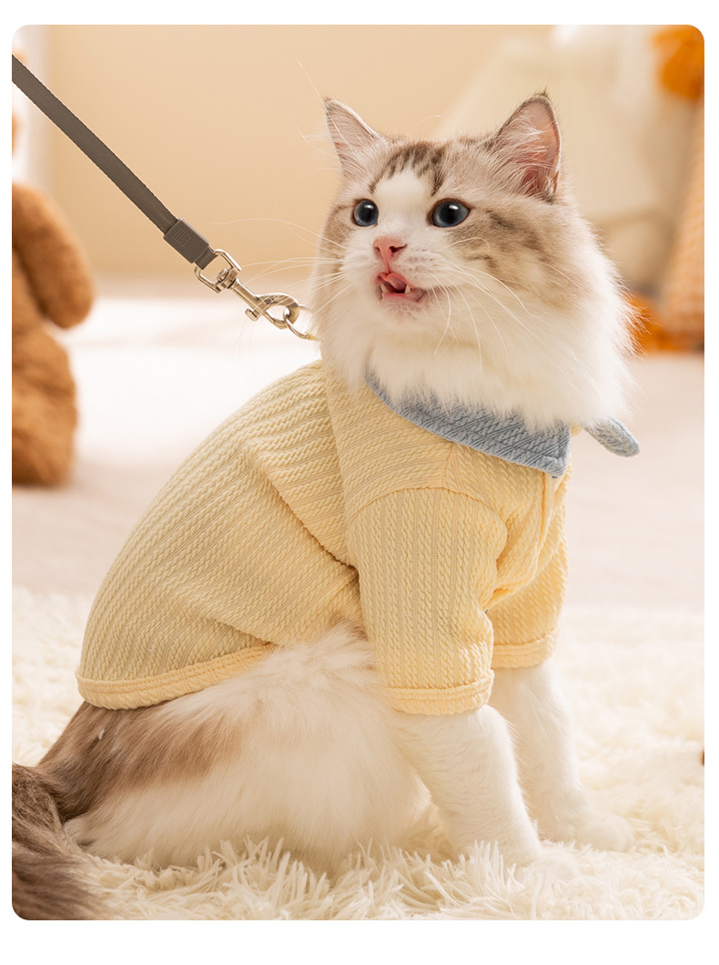 봄 가을 고양이 옷 배색 이너웨어 봄 얇은 가디건 블루캣 새끼 고양이 털이 없는 고양이 애완견 옷
