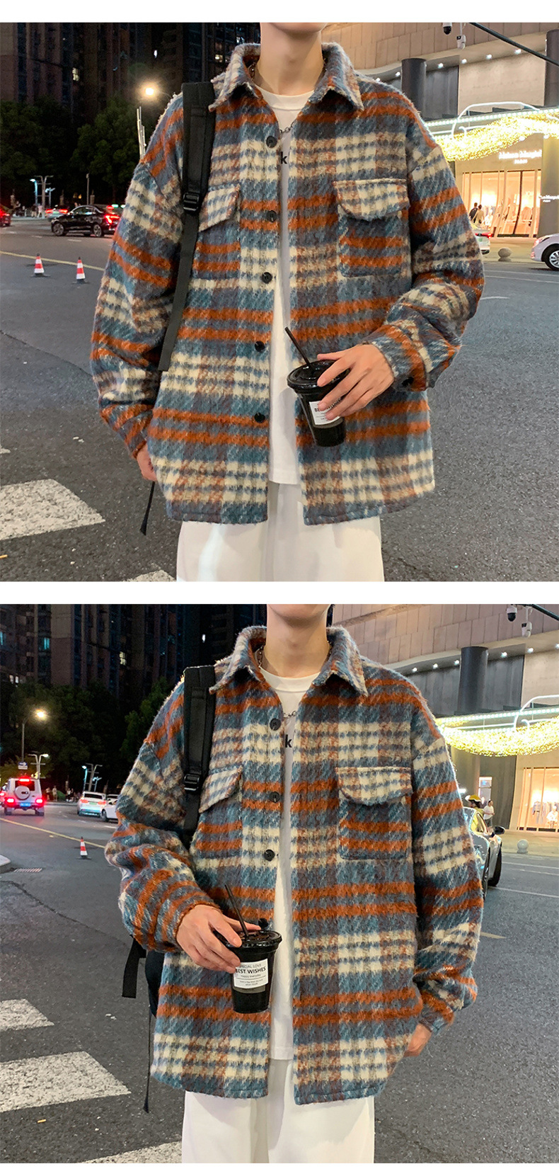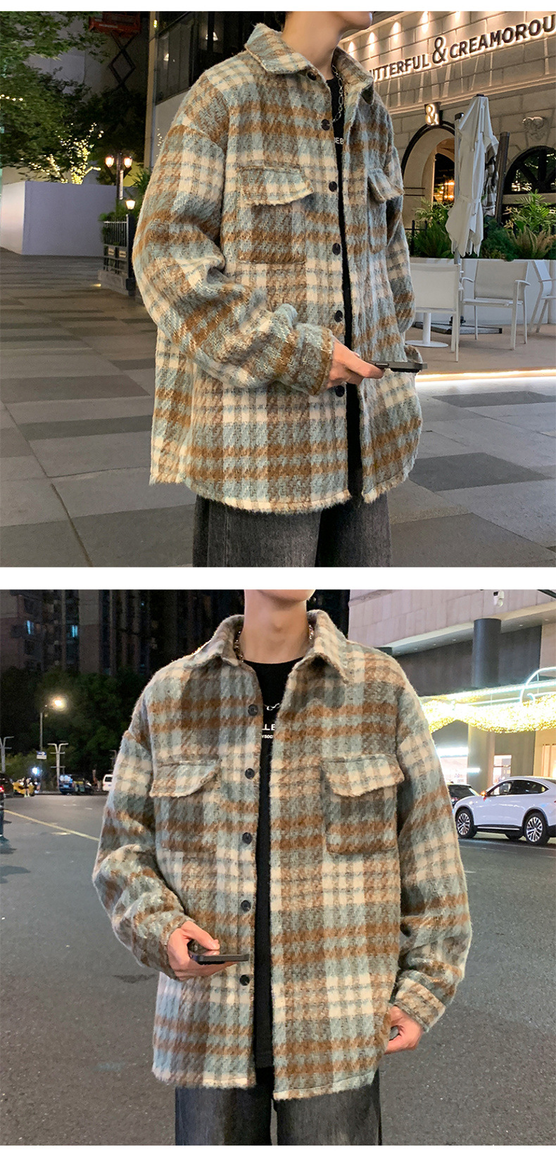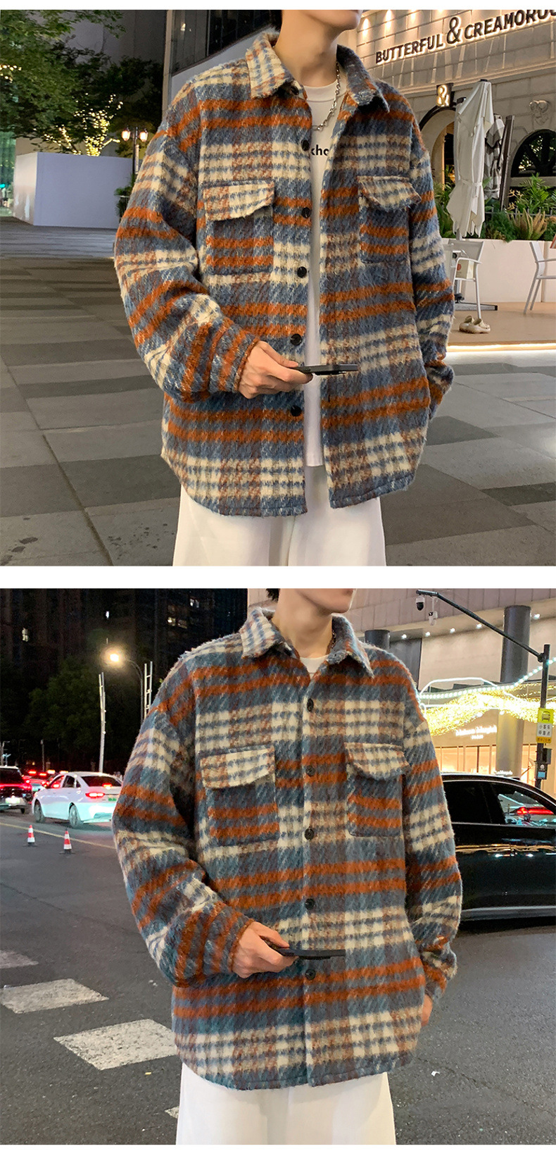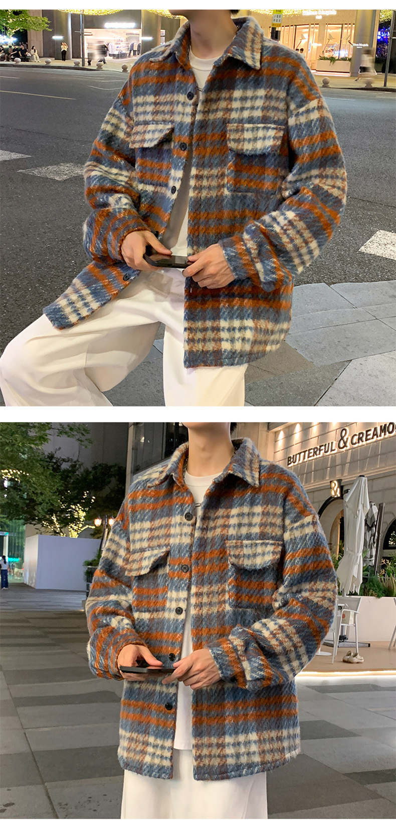 모직 코트 남성 가을 청소년 옷깃 남성 느슨한 긴팔 셔츠 트렌디 브랜드 남성 캐주얼 남성 자켓스토어 가기