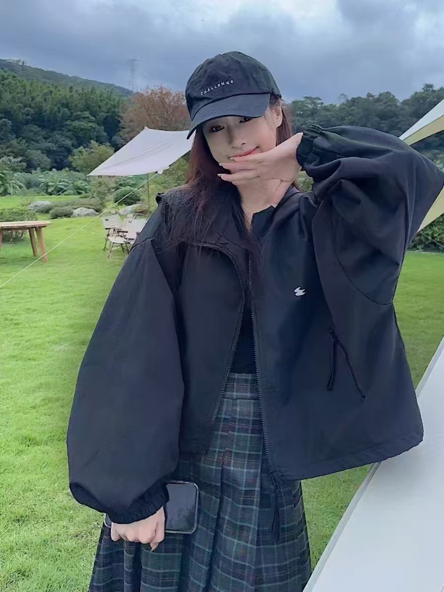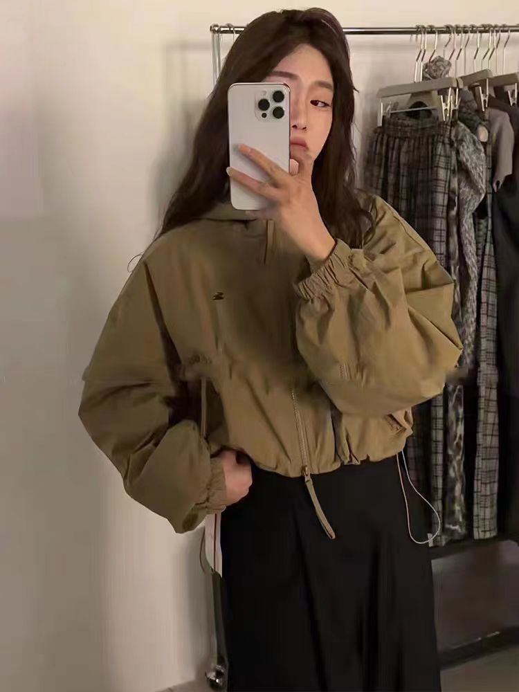 여성용 후드 재킷 짧은 스타일 2025 봄 가을 신상품 작은 사이즈 캐주얼 다용도 고급 재킷 코트 상의스토어 가기